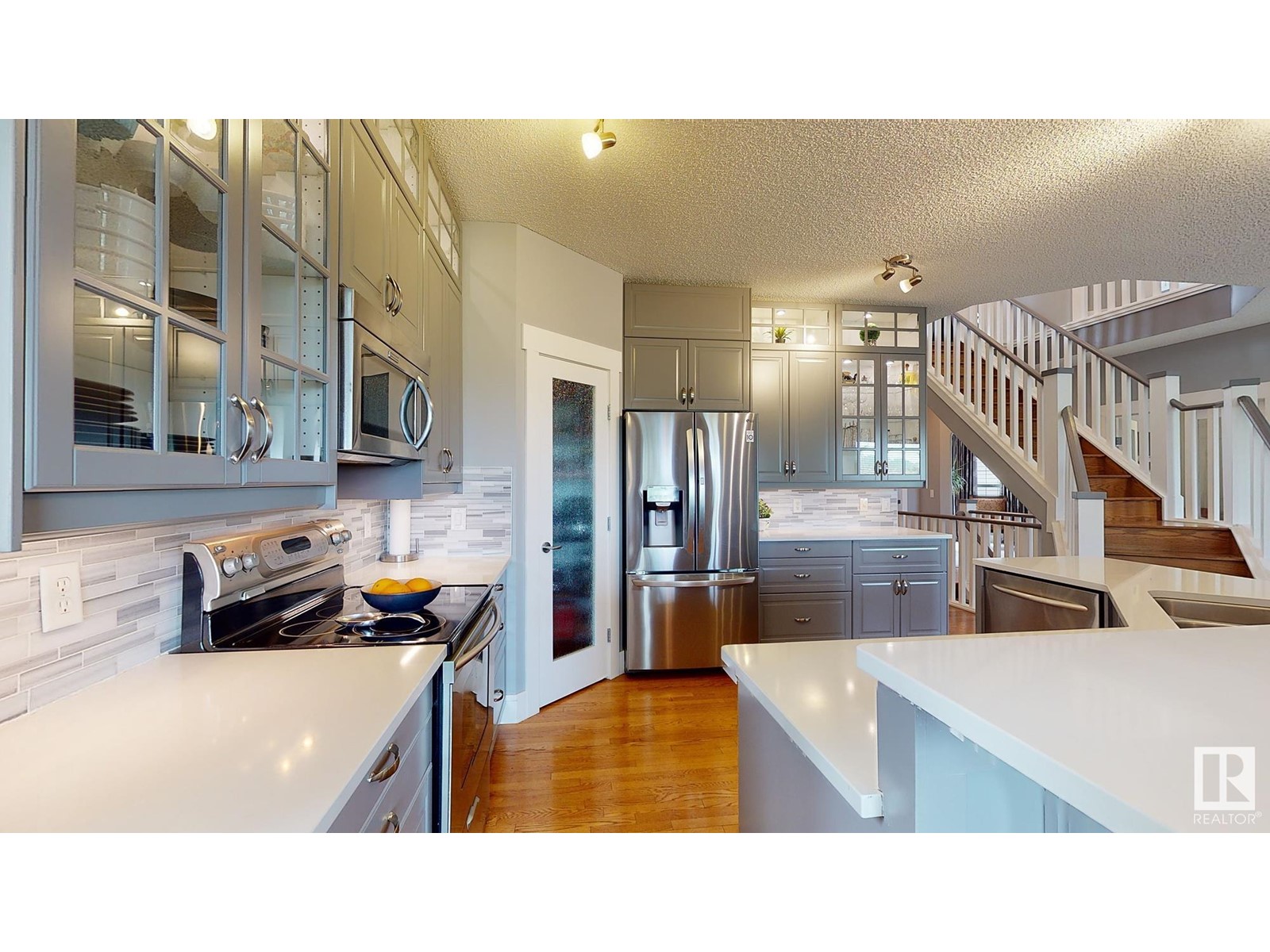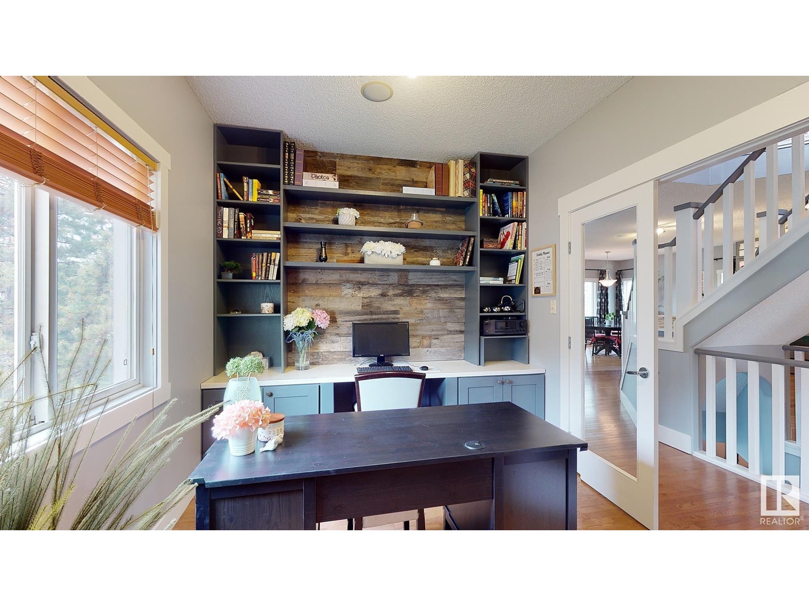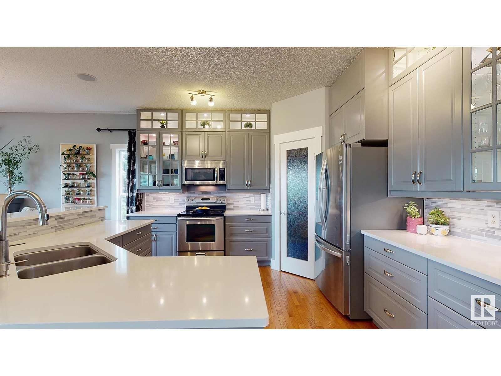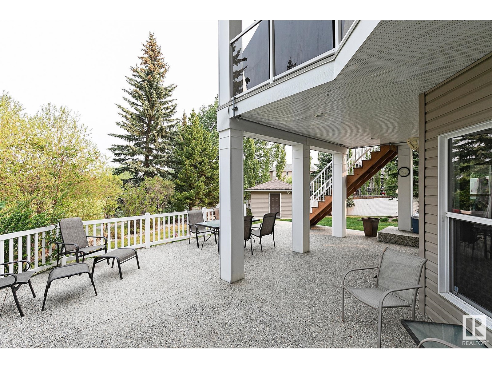 LUXURY ON THE LINKS in a CUL DE SAC! This STUNNING 2 story home embraces many STYLISH features with near 2600sf PLUS a FF walkout bsmt! MODERNIZED throughout with NEW kitchen /new paint /flooring /upgraded bathrooms etc. Located on an enviable PIE lot backing the 2nd hole on the LINKS Golf Course! 2 POND VIEWS! Custom designed kitchen boasts SS appl and modern to ceiling cabinetry. *Front verandah *M/Fl office *den *3+1 bdrms *mud room w/laundry, cabinets & sink *bonus rm *hot tub *2 FP. Unwind in the master suite w/ corner FP, sitting area +5-pce. Bsmt has 4th bdrm, FR, 4-pce bath & opens onto huge aggregate patio for ultimate outdoor entertaining! Enjoy the picture perfect setting from 2 levels of spacious patio & low-maint decking, 300+plants /shrubs /trees lining the perimeter of the EXPANSIVE yard offering privacy & tranquility! *fire pit *14x14' garden shed *brick walkway with retaining walls *Underground sprinkler *AIR CON *TRIPLE garage *Security sys *B/I Stereo *2 decks. VIEWS are OUTSTANDING! (id:22211)