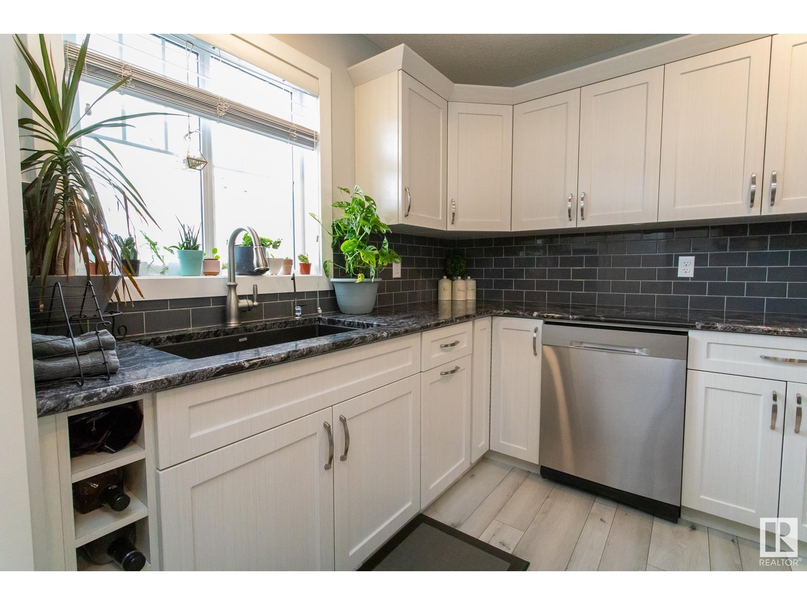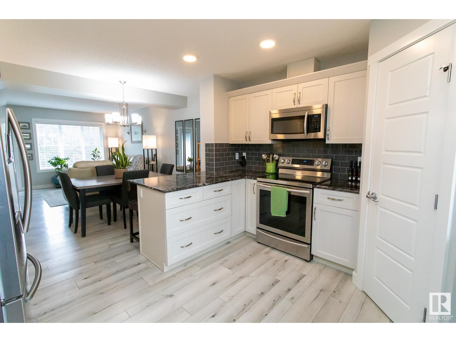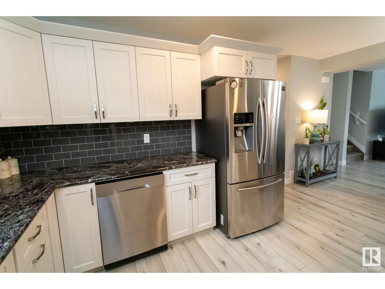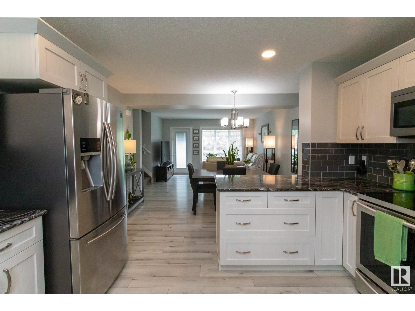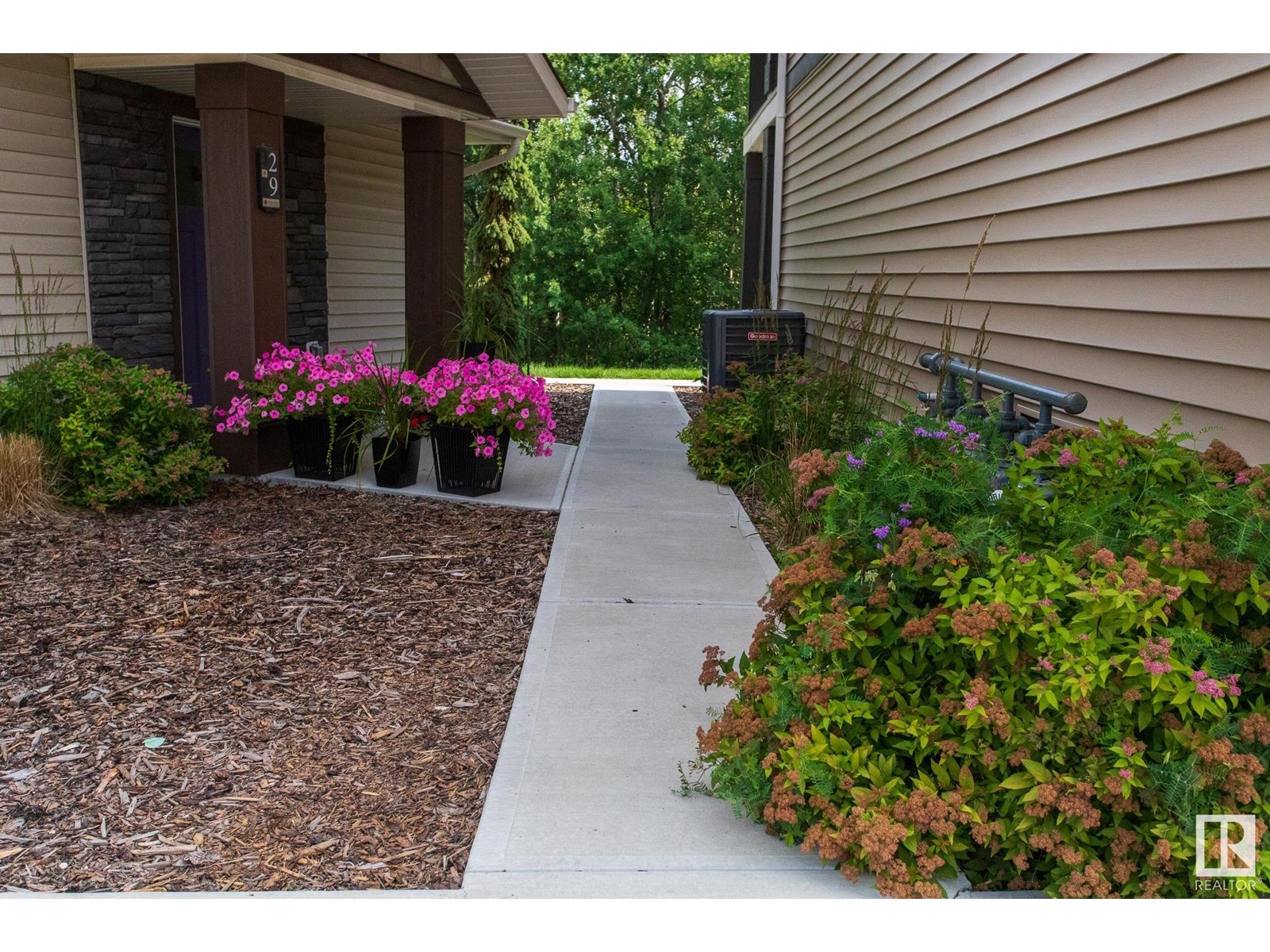 IMMACULATE End Unit Townhome in a Prime Location BACKING GREENSPACE and Walking Trails! Spacious 3 Bedroom Plus Den, Two Storey Home Shows Modern City Living with a Generous Touch of Nature. Front Door Access with Patio to Enjoy the Green Space. Huge Foyer w/Sitting Area, Coat Closet, & Access to Oversized Double Garage w/Storage Room. Open Concept Kitchen, Dining, & Living Room Show Beautiful Views & Plenty of Natural Light. Wrap Around Balcony w/Tranquil View. Kitchen Boasts Custom Cabinets w/Pot Drawers & Pullout Drawers for Refuse/Recycle. Reverse Osmosis Water System, Thick Granite Counters, Wine Rack & Walk-In Corner Pantry. Completing this Level is a Den (easily a 4th Bedroom) & 2PC Bath. Upper Level Shows Owners Suite w/Large Windows Backing Green Space. Suite Features Large Walk-In Closet & 4PC En-suite. Completing the Upper Level are Two Great Sized Bedrooms, 4PC Bath, Convenient Laundry Room w/Built-in Shelving. Amazing Walk Score to Shopping, Restaurants, & Tri-Leisure Center. Welcome Home! (id:22211)