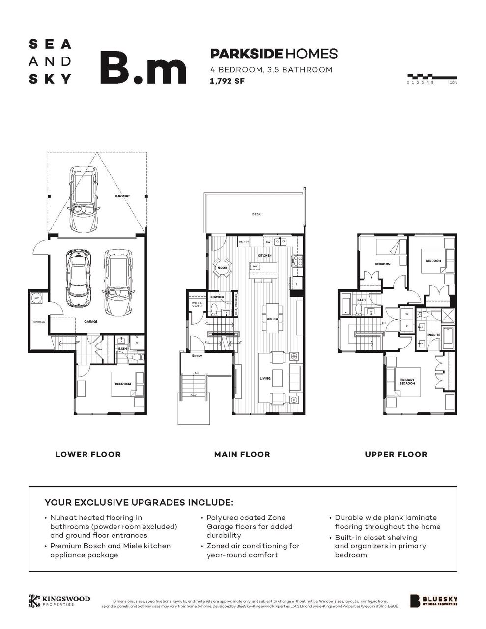 Introducing Parkside Homes - the most sought-after location in the desirable SEAandSKY community by Bosa Properties & Kingswood Properties. This corner WATER VIEW home is now complete and ready for move in and is the final corner home available in the Parkside collection. Located along the shoreline community park, all homes have incredible views of Howe Sound on one side and the Chief on the other. Premium upgrades include - air conditioning, Bosch & Miele appliances, heated entryways and washrooms, Zone Garage flooring, closet organizers in primary bedrooms, laminate flooring throughout and more. Steps away from the future 17,000 sq ft Activity Centre and pedestrian bridge to downtown. The bridge is now under construction!