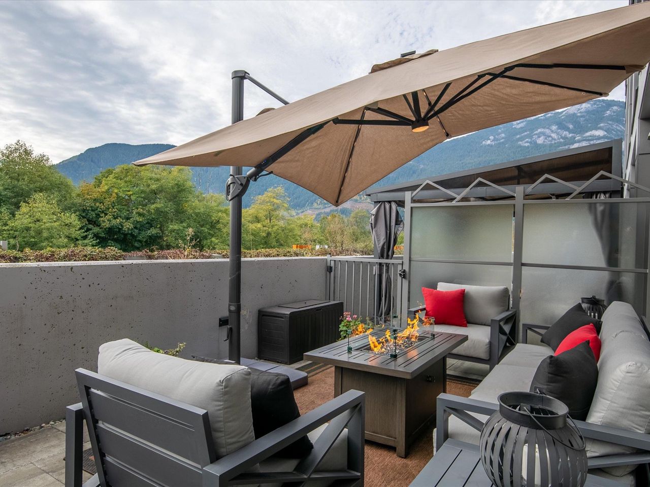 Stunning 270° views from this 2 bedroom condo in the sought-after Jumar!! Enjoy your breathtaking views from your almost 500 sq ft of private SOUTH facing patio space. This property boasts a beautiful modern style, abundant natural light, secure parking stall, and TWO storage lockers! Centrally located, steps from shopping, weekly farmer's market, restaurants, hiking/biking trails, and all other amenities the ever-growing Squamish has to offer Listing price includes approx 25k worth of built-in's. Inquire for more details!
