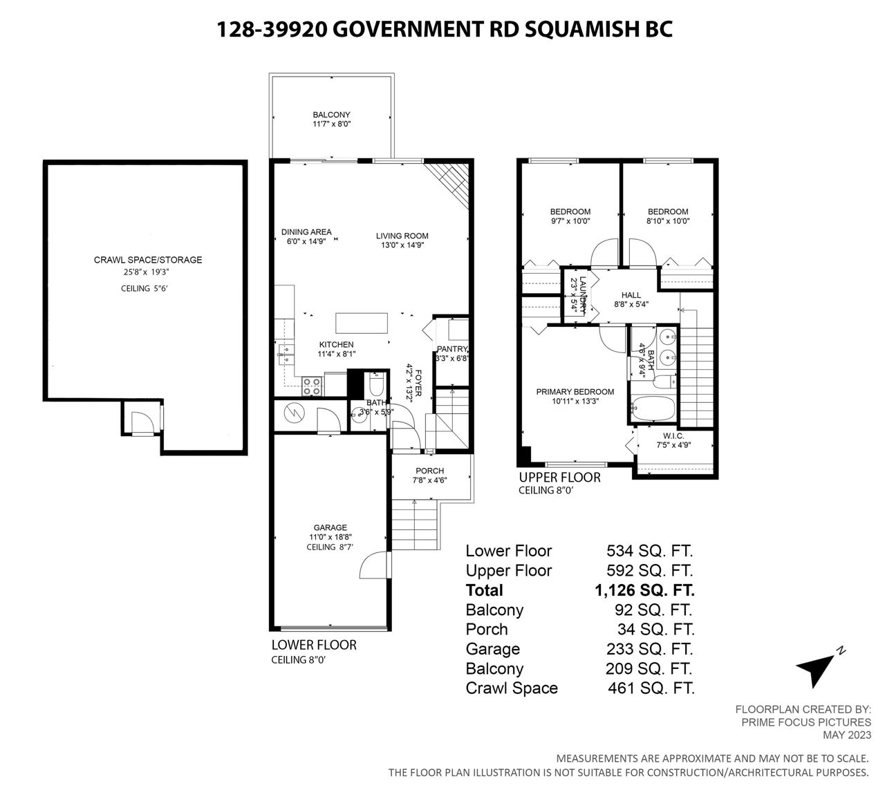 Welcome home to SHANNON ESTATES conveniently located in GARIBALDI ESTATES of Squamish! Rarely available, this 1,126 SQ FT, 3 Bedroom, 2 Bathroom, 2 Level TOWNHOUSE features attached garage & driveway, open concept layout, kitchen island for entertaining, laminate floors, cozy fireplace, walk-in closet for primary bedroom plus linen closet, double vanity in bathroom, full size laundry, pantry, & west facing balcony with MOUNTAIN VIEWS for all of your SUNNY BBQ’s! TONS OF STORAGE in your 461 SQ FT crawl space. Complex includes playground & lots of green space, & easy access to schools, cafes, trails, & restaurants!