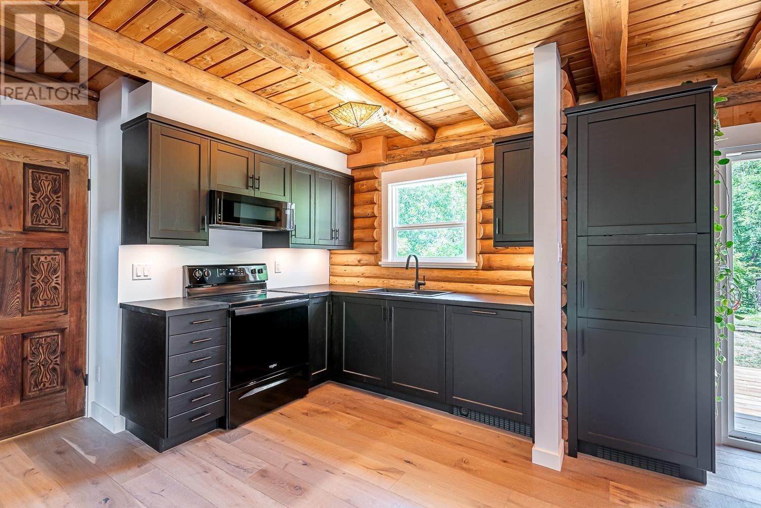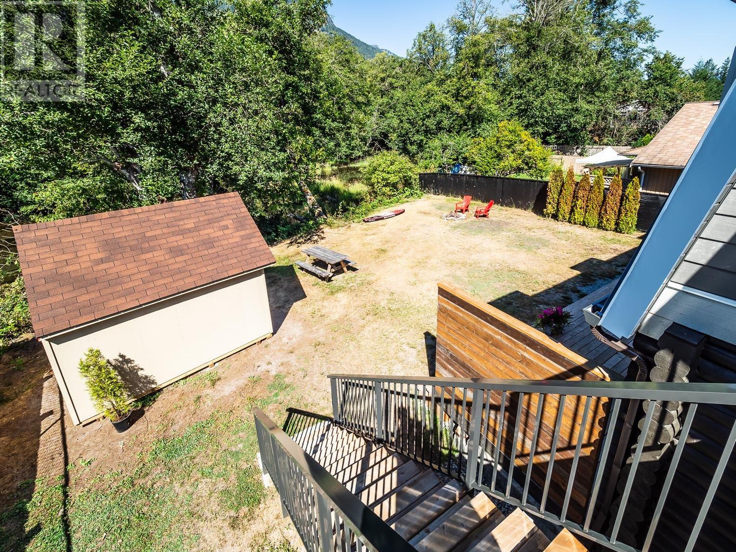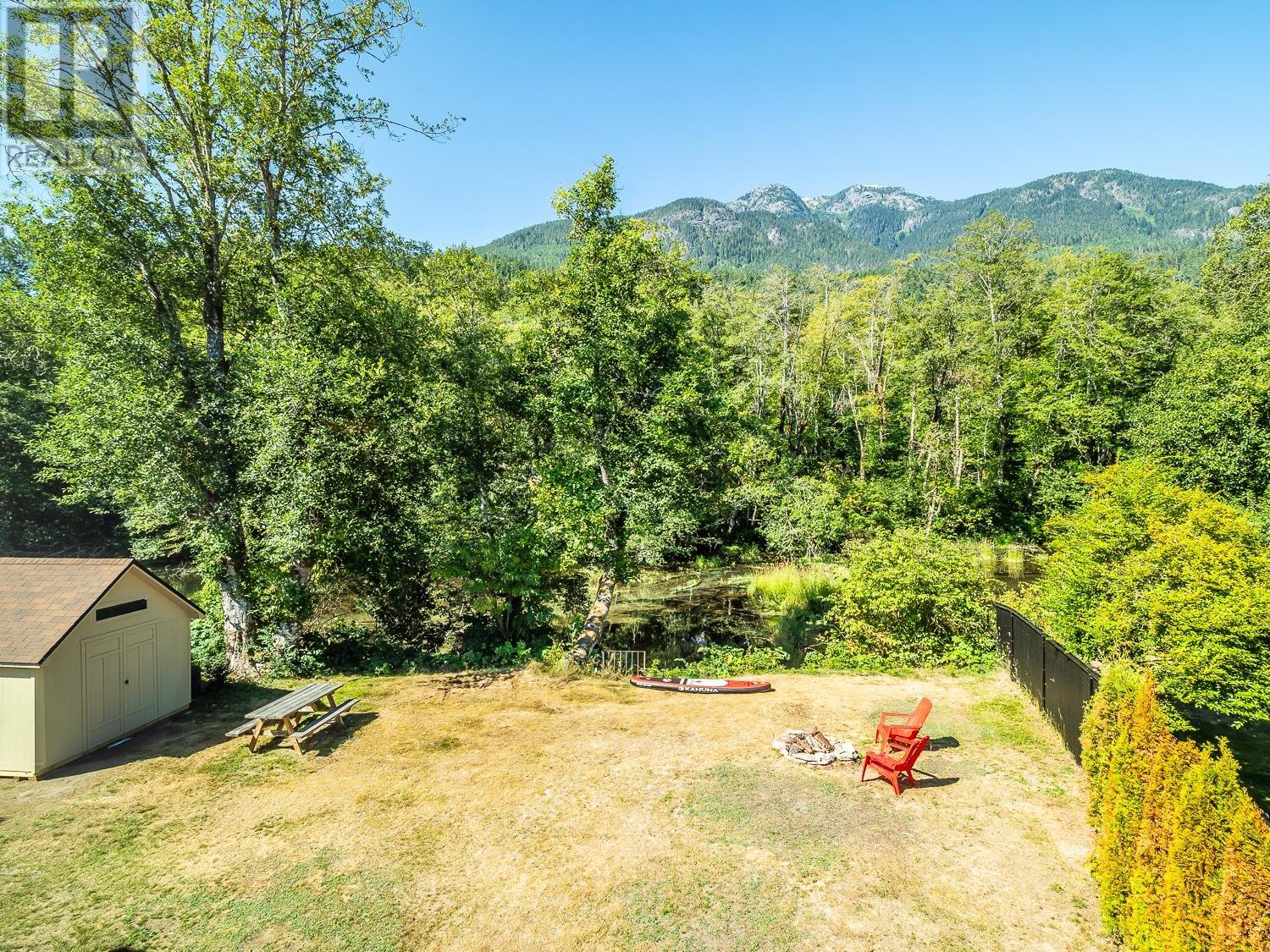 Beautifully renovated home with suite, just a moment's walk to Fisherman's Park & Judd Beach. Renovated (2022/2023) - interior, windows, doors, decks & metal roof! Kitchen - under cabinet lighting, new cabinets with black butcher block counters, integrated fridge and dishwasher, built in microwave & views to the backyard from kitchen sink and updated bathrooms. Level sunny lot backs onto Squamish River Tributary & green belt with incredible views of the Tantalus Mountain Range Lot slopes gently for easy access to enjoy a paddle in the waterscape, or perfect for viewing families of ducks and birds of prey that frequent the back landscape. Studio suite. Fenced yard. Large custom 10x12 over height shed for all your toys. More photos on Agent´s website. (id:22211)