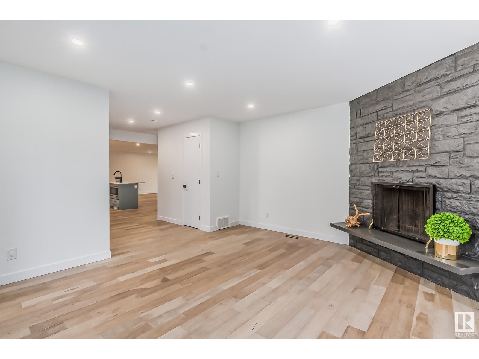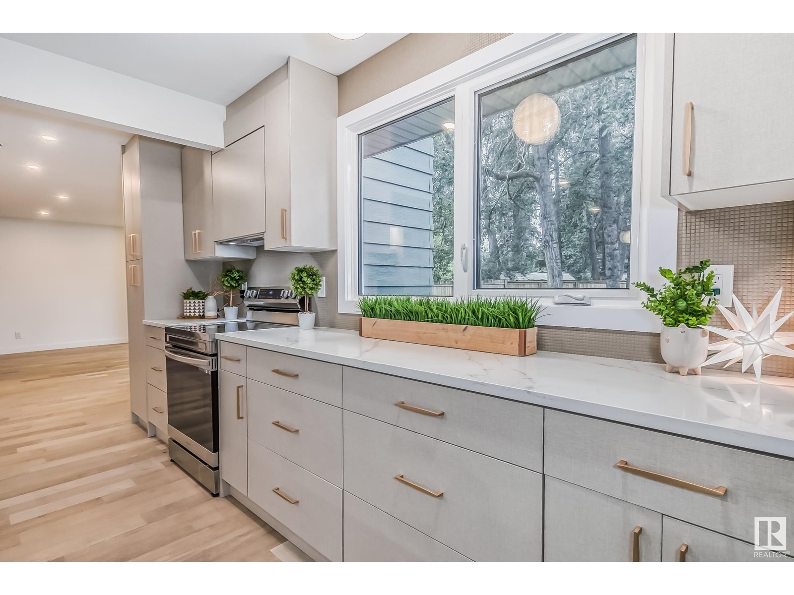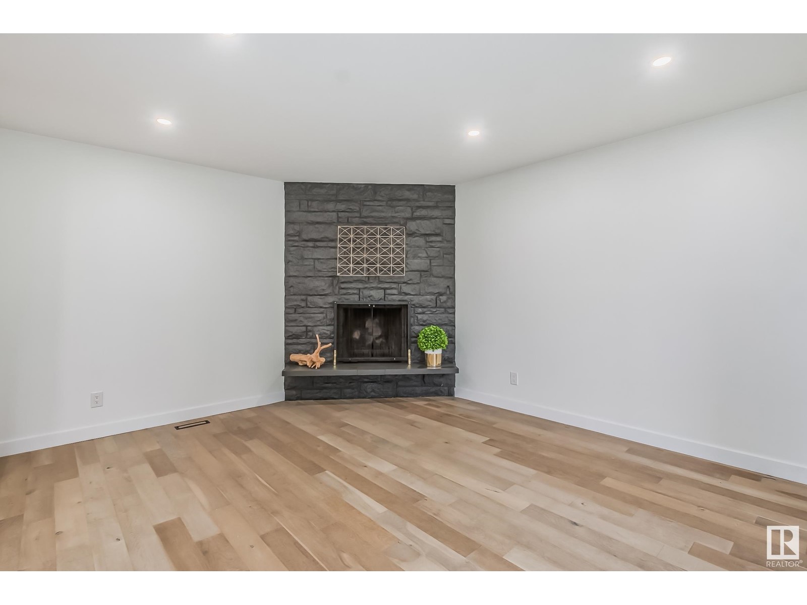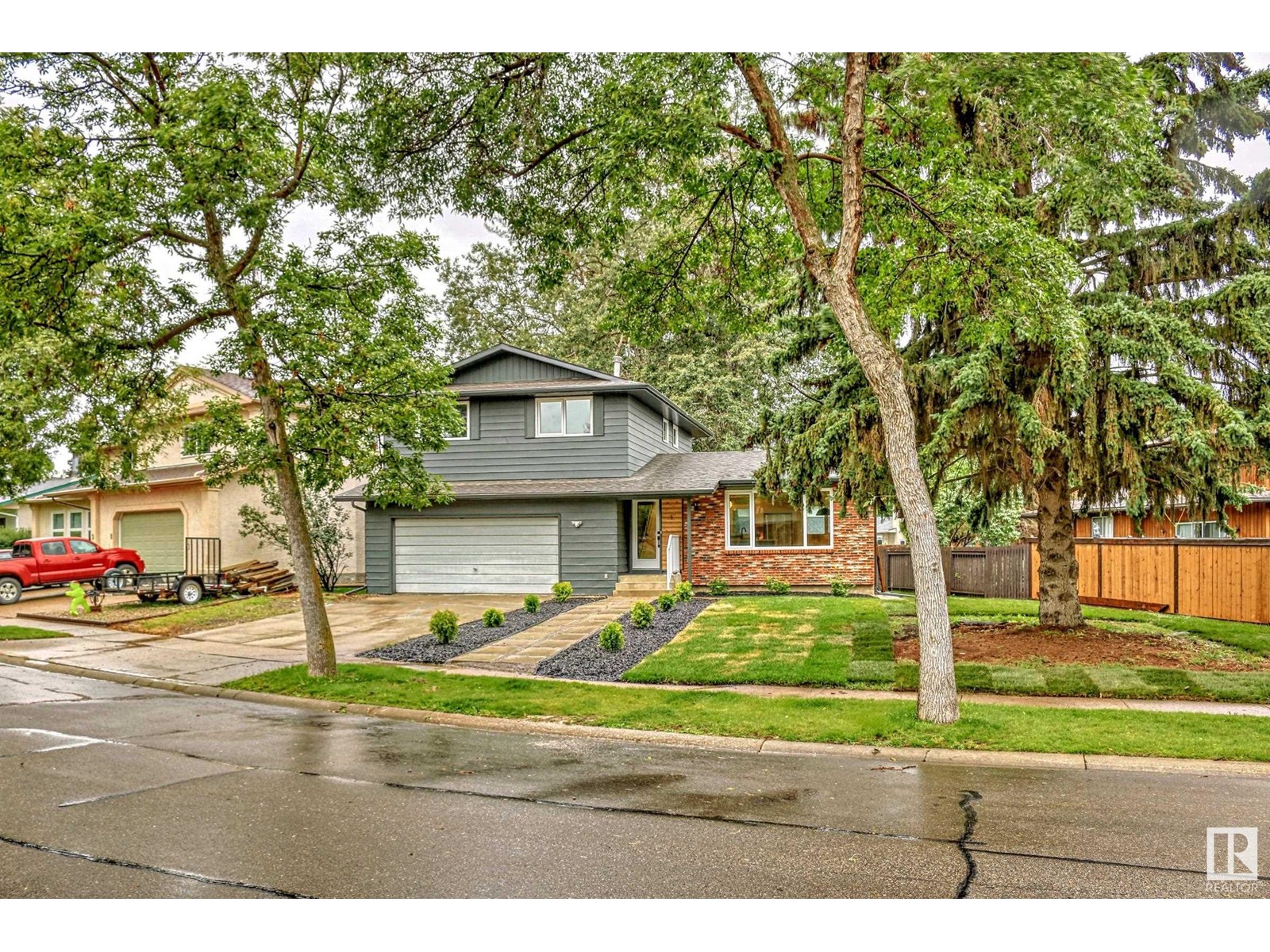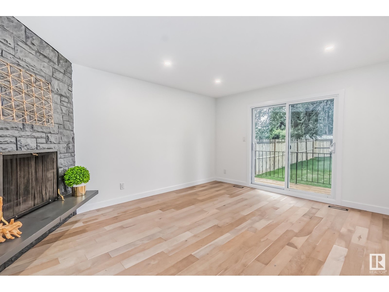 Welcome to Akinsdale! Spacious 1948 sq.ft. two-storey home, with 4 bedrooms, 2.5 bathrooms and situated on a massive pie-lot. The floor plan is open and bright, with engineered hardwood throughout the main level. The living room, kitchen and dining areas blend seamlessly together with updated lighting fixtures, level 5 ceiling and warm tones. The kitchen has new cabinetry with large island, s/s appliances, quartz counters and coffee/wine bar area. There is a fabulous flex room off the kitchen with a wood-burning fireplace and sliding doors out to the deck and yard. The upper level boasts new high-quality 60 oz. carpet, 4 bedrooms and a 4-piece bath complete with tiled tub/shower and sliding glass doors. The primary bedroom is spacious with a large closet and a 3-piece ensuite with tiled shower and glass. Other notable upgrades include: professionally installed triple-pane casement windows; new shingles; soffit; fascia and eavestrough. Finish the package with a freshly landscaped yard and double garage! (id:22211)