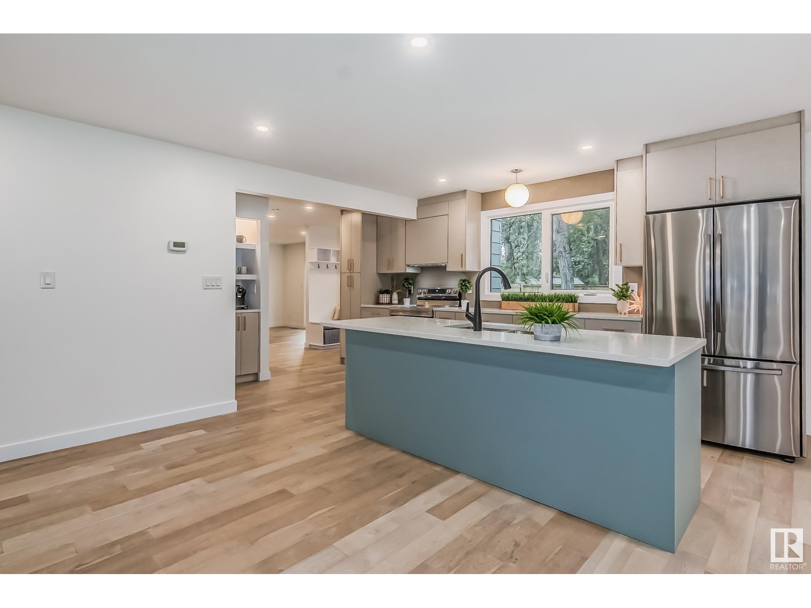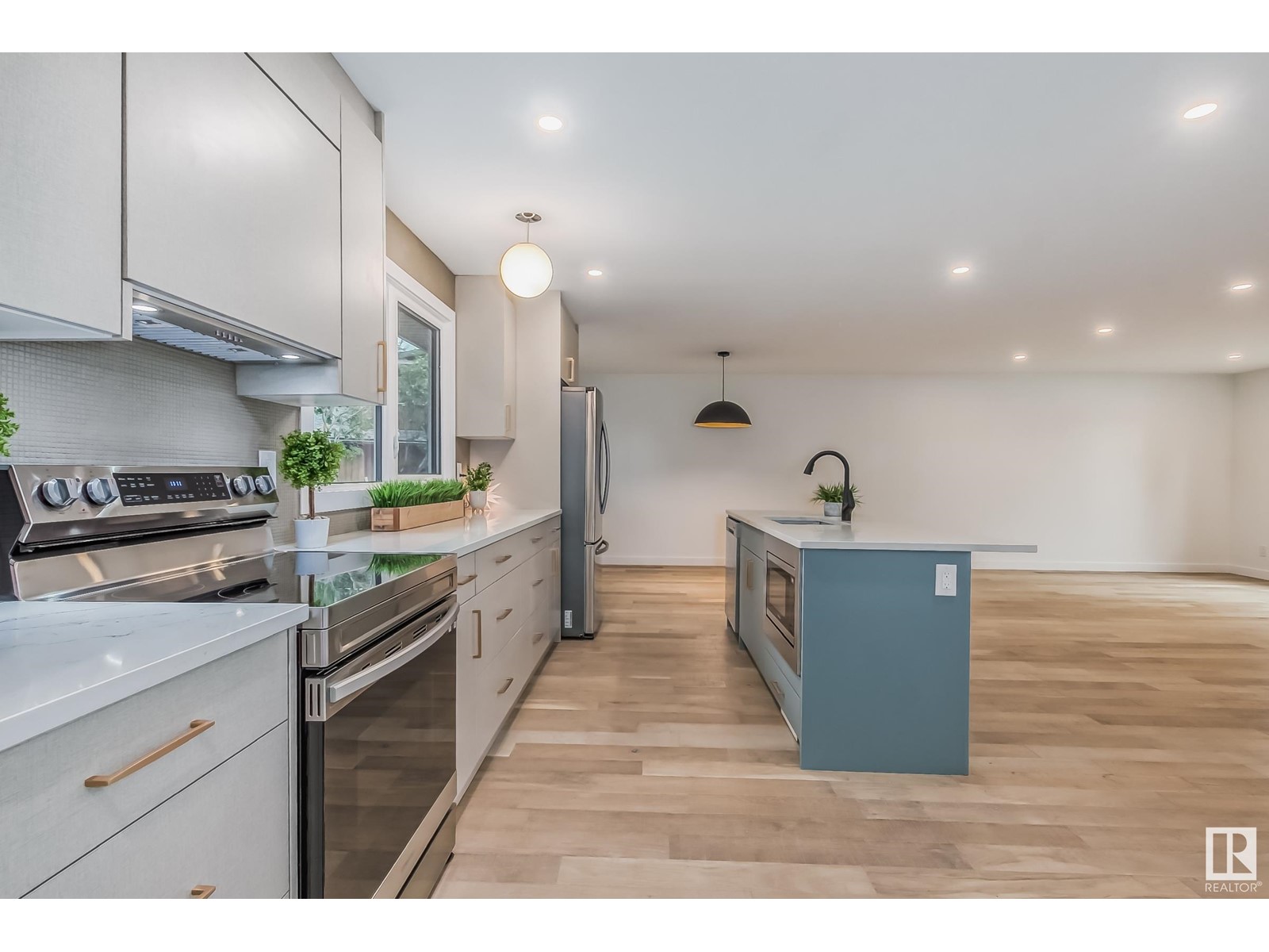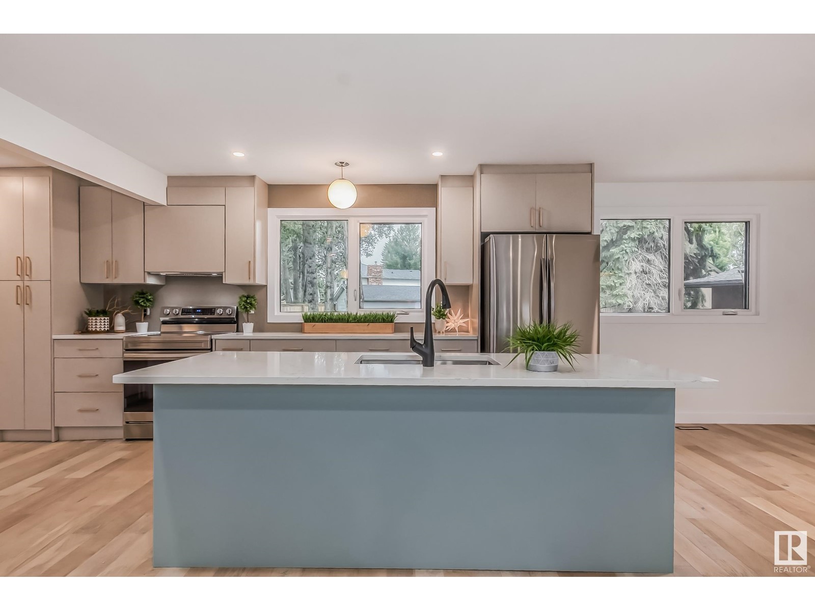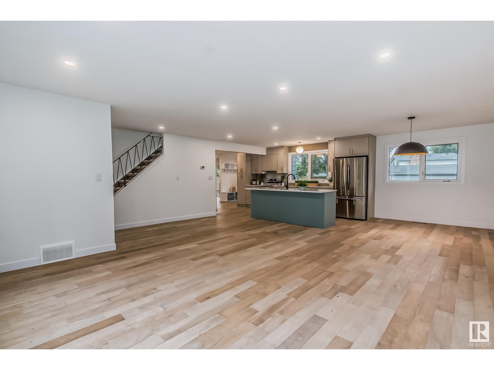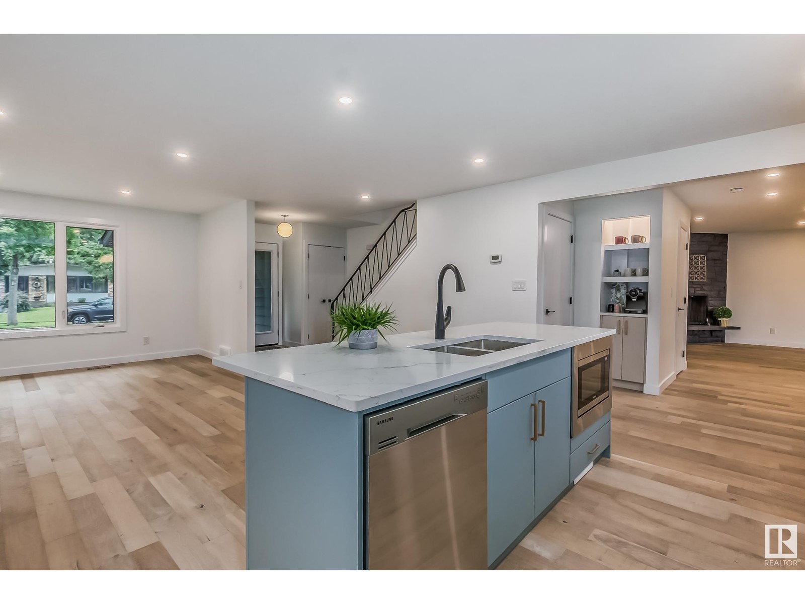 Welcome to Akinsdale! Spacious 1948 sq.ft. two-storey home, with 4 bedrooms, 2.5 bathrooms and situated on a massive pie-lot. The floor plan is open and bright, with engineered hardwood throughout the main level. The living room, kitchen and dining areas blend seamlessly together with updated lighting fixtures, level 5 ceiling and warm tones. The kitchen has new cabinetry with large island, s/s appliances, quartz counters and coffee/wine bar area. There is a fabulous flex room off the kitchen with a wood-burning fireplace and sliding doors out to the deck and yard. The upper level boasts new high-quality 60 oz. carpet, 4 bedrooms and a 4-piece bath complete with tiled tub/shower and sliding glass doors. The primary bedroom is spacious with a large closet and a 3-piece ensuite with tiled shower and glass. Other notable upgrades include: professionally installed triple-pane casement windows; new shingles; soffit; fascia and eavestrough. Finish the package with a freshly landscaped yard and double garage! (id:22211)
