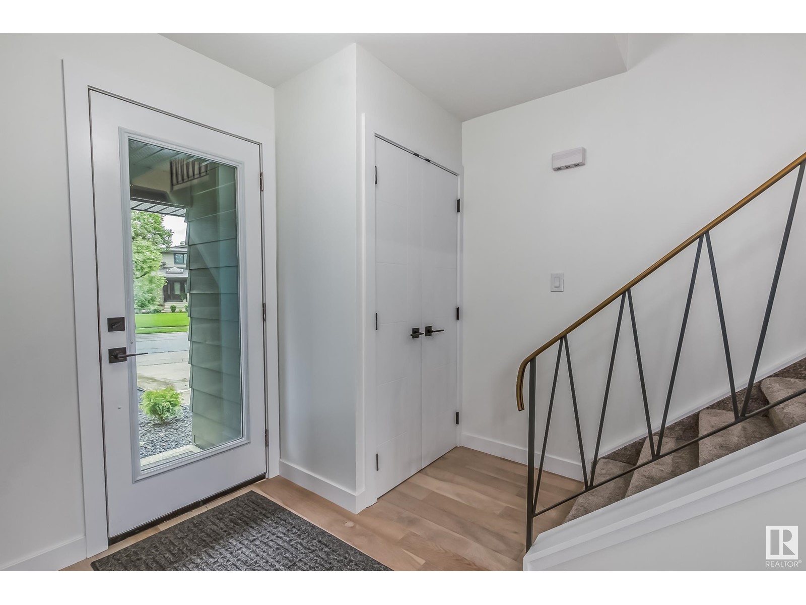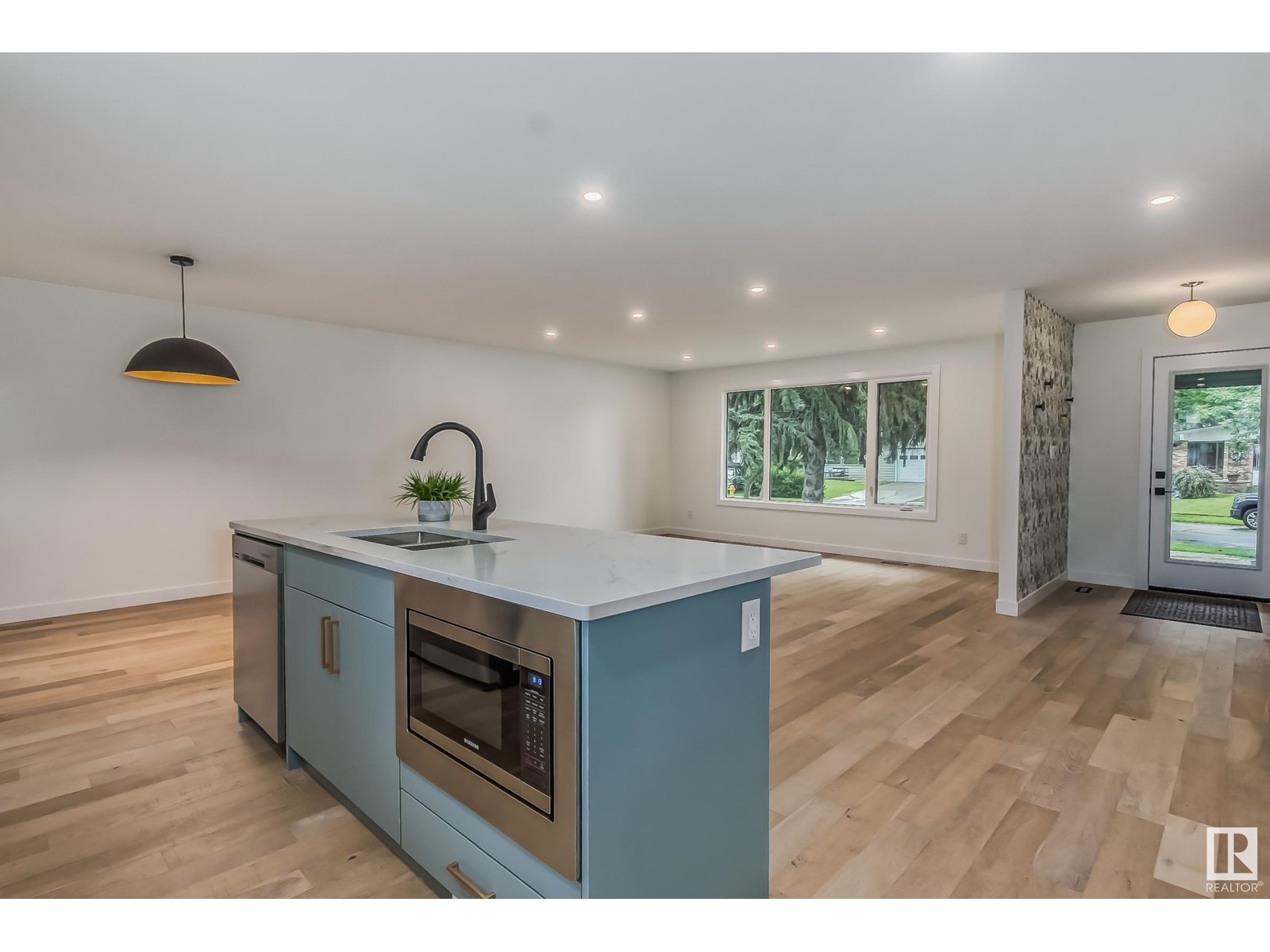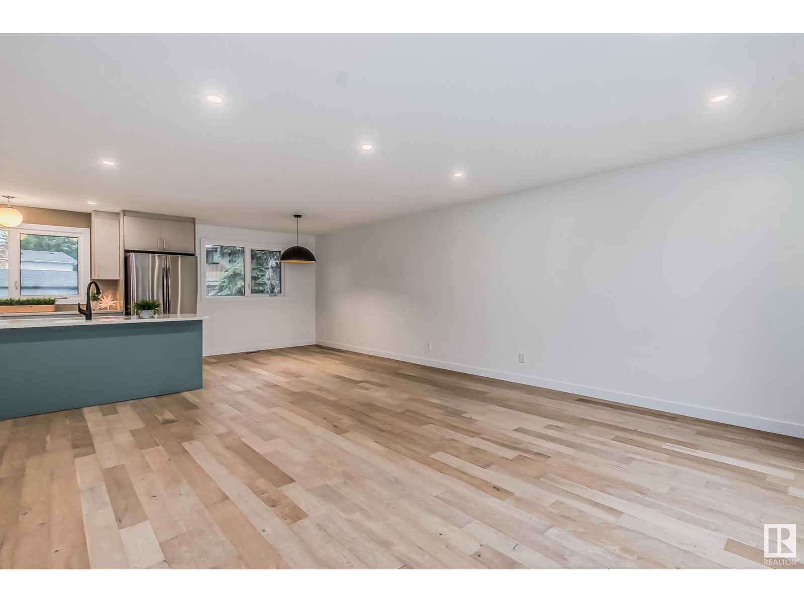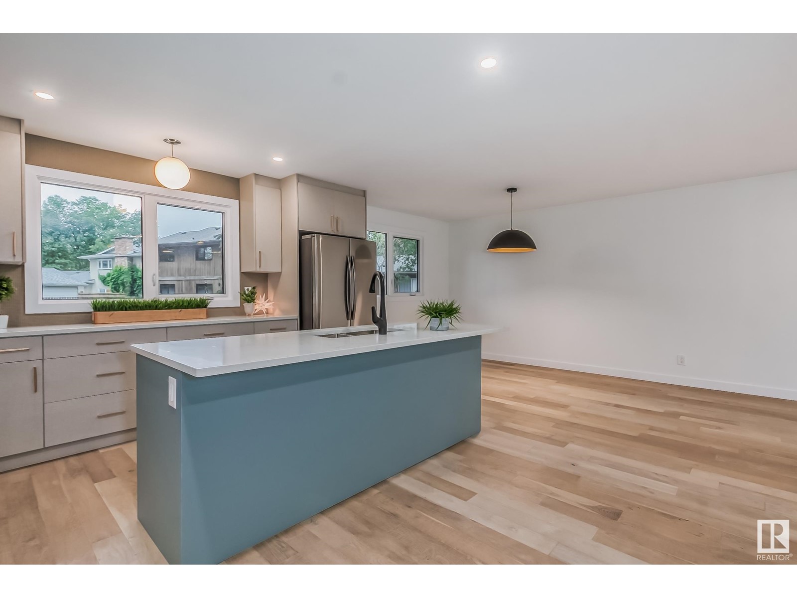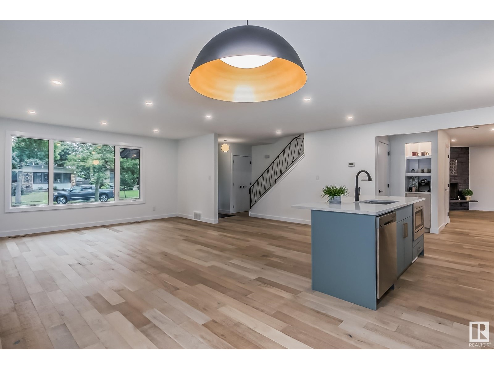 Welcome to Akinsdale! Spacious 1948 sq.ft. two-storey home, with 4 bedrooms, 2.5 bathrooms and situated on a massive pie-lot. The floor plan is open and bright, with engineered hardwood throughout the main level. The living room, kitchen and dining areas blend seamlessly together with updated lighting fixtures, level 5 ceiling and warm tones. The kitchen has new cabinetry with large island, s/s appliances, quartz counters and coffee/wine bar area. There is a fabulous flex room off the kitchen with a wood-burning fireplace and sliding doors out to the deck and yard. The upper level boasts new high-quality 60 oz. carpet, 4 bedrooms and a 4-piece bath complete with tiled tub/shower and sliding glass doors. The primary bedroom is spacious with a large closet and a 3-piece ensuite with tiled shower and glass. Other notable upgrades include: professionally installed triple-pane casement windows; new shingles; soffit; fascia and eavestrough. Finish the package with a freshly landscaped yard and double garage! (id:22211)