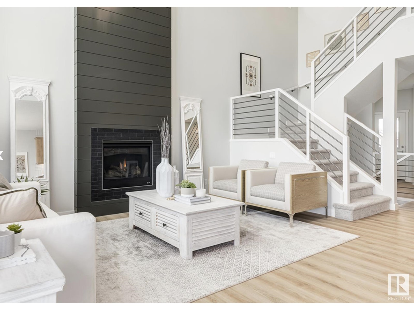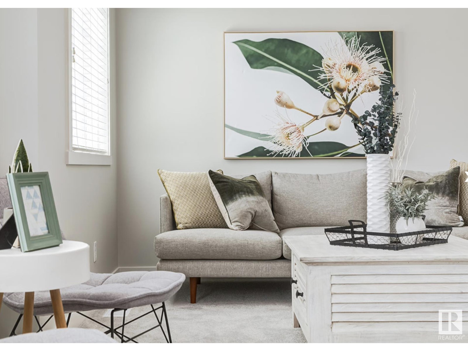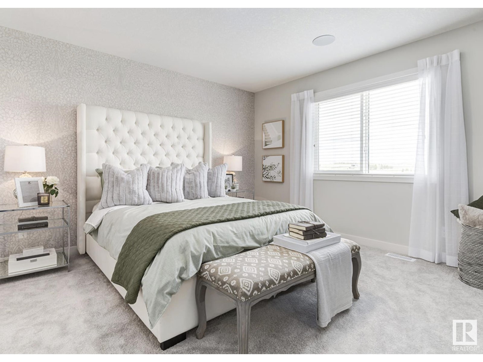 Welcome to Riverside in St. Albert. Brand New, Homes By Avi LUXURY 2 Story home on west backing pie shaped lot in private Cul De Sac. Currently under construction & ready for your family to move in August 2023. Measuring 2199 Sq Ft AG & features, 3 bedrooms + main level flex room(den), 2.5 bathrooms & upper level loft for your family to gather & enjoy movie night. Oversized double attached insulated garage, separate side entrance & complete landscaping included. Stunning upgrades throughout featuring quartz countertop with under-mount sink, abundance of kitchen cabinetry with soft close pot & pan drawers, oversized centre island, 9 ft ceiling height with 18' ceiling & electric fireplace in living room, abundance of storage & basic appliance package with blinds included. Main floor powder room, walk threw pantry & access to mud room through garage. Beautiful home just a short drive to Edmonton and minutes from new school development. Welcome to scenic St. Albert! Your new home awaits. (id:22211)