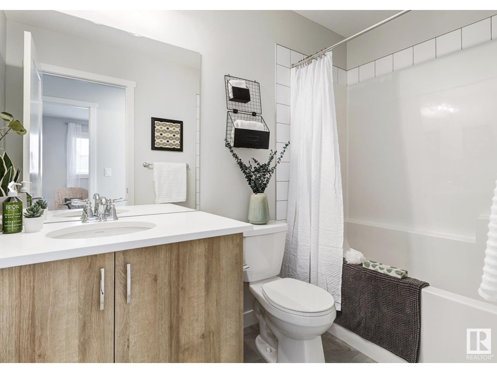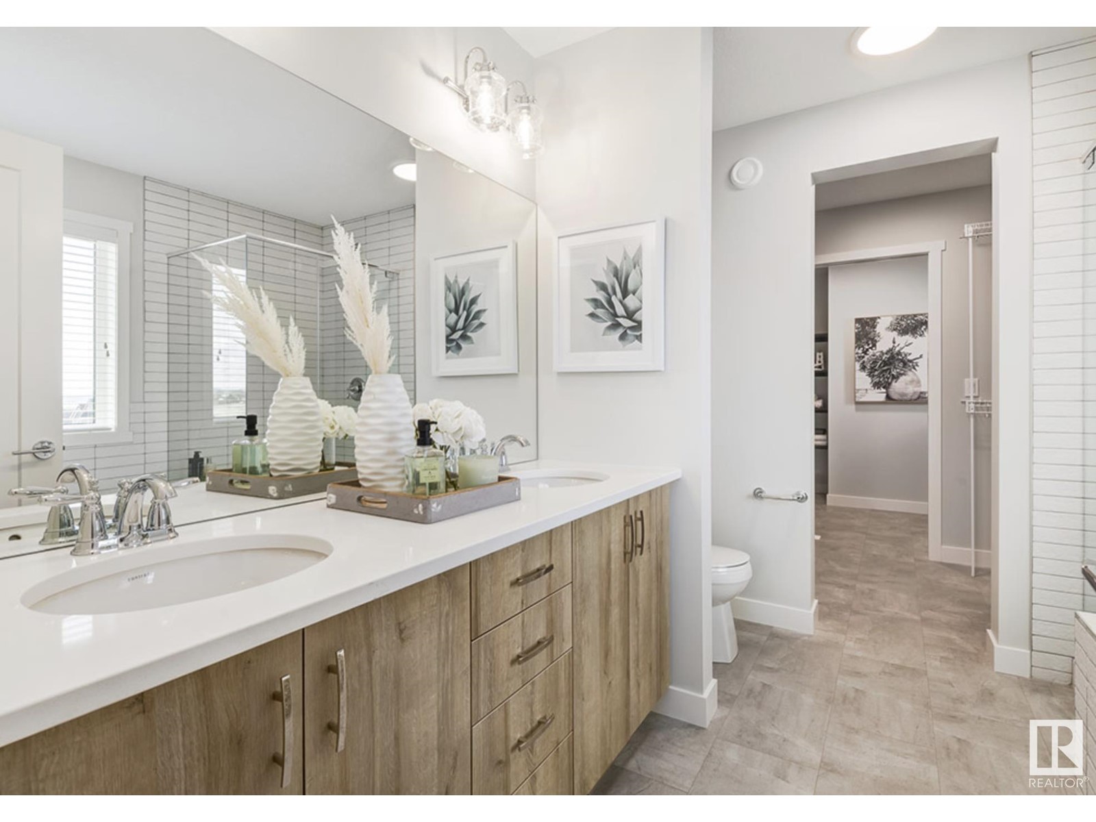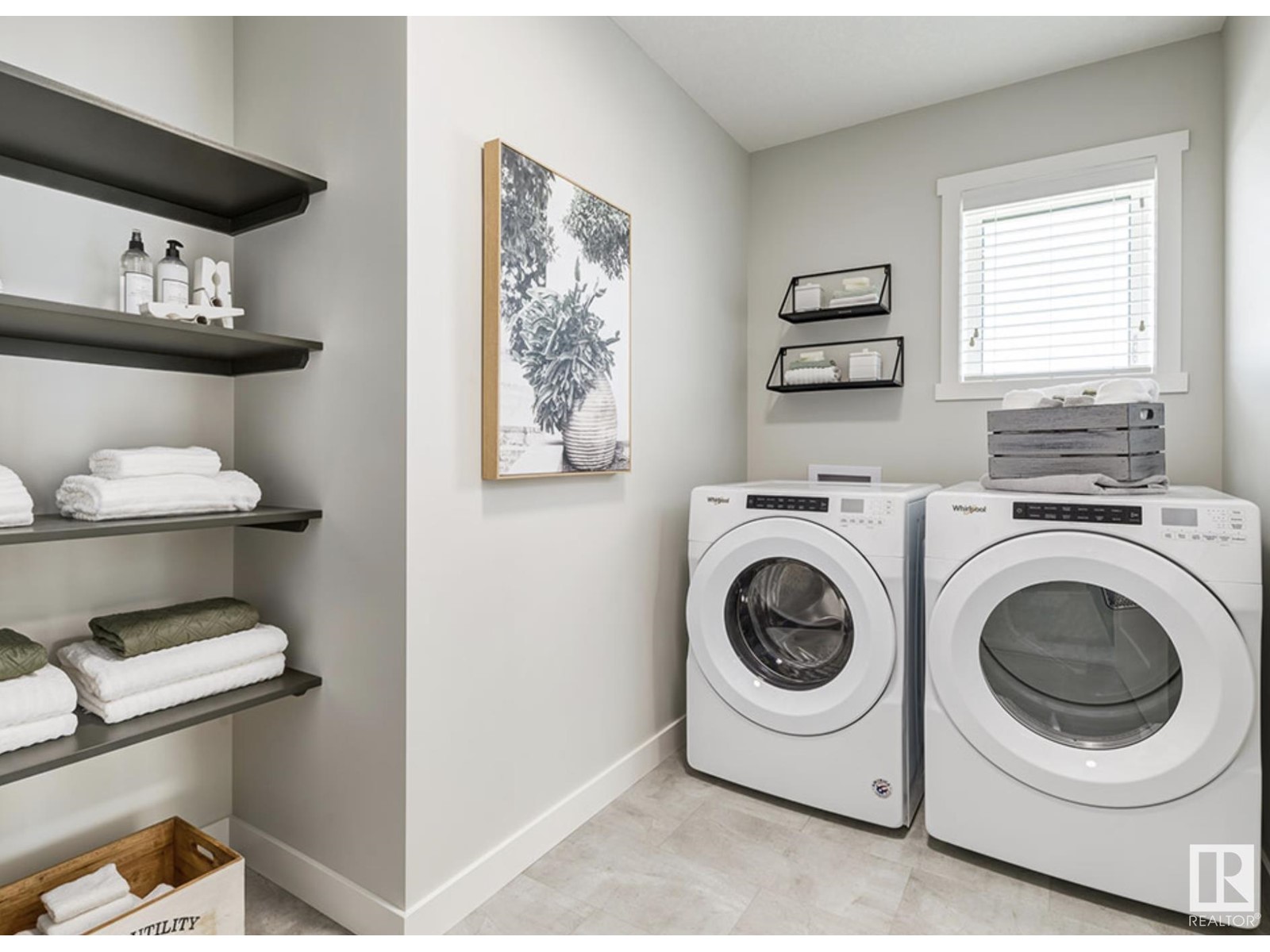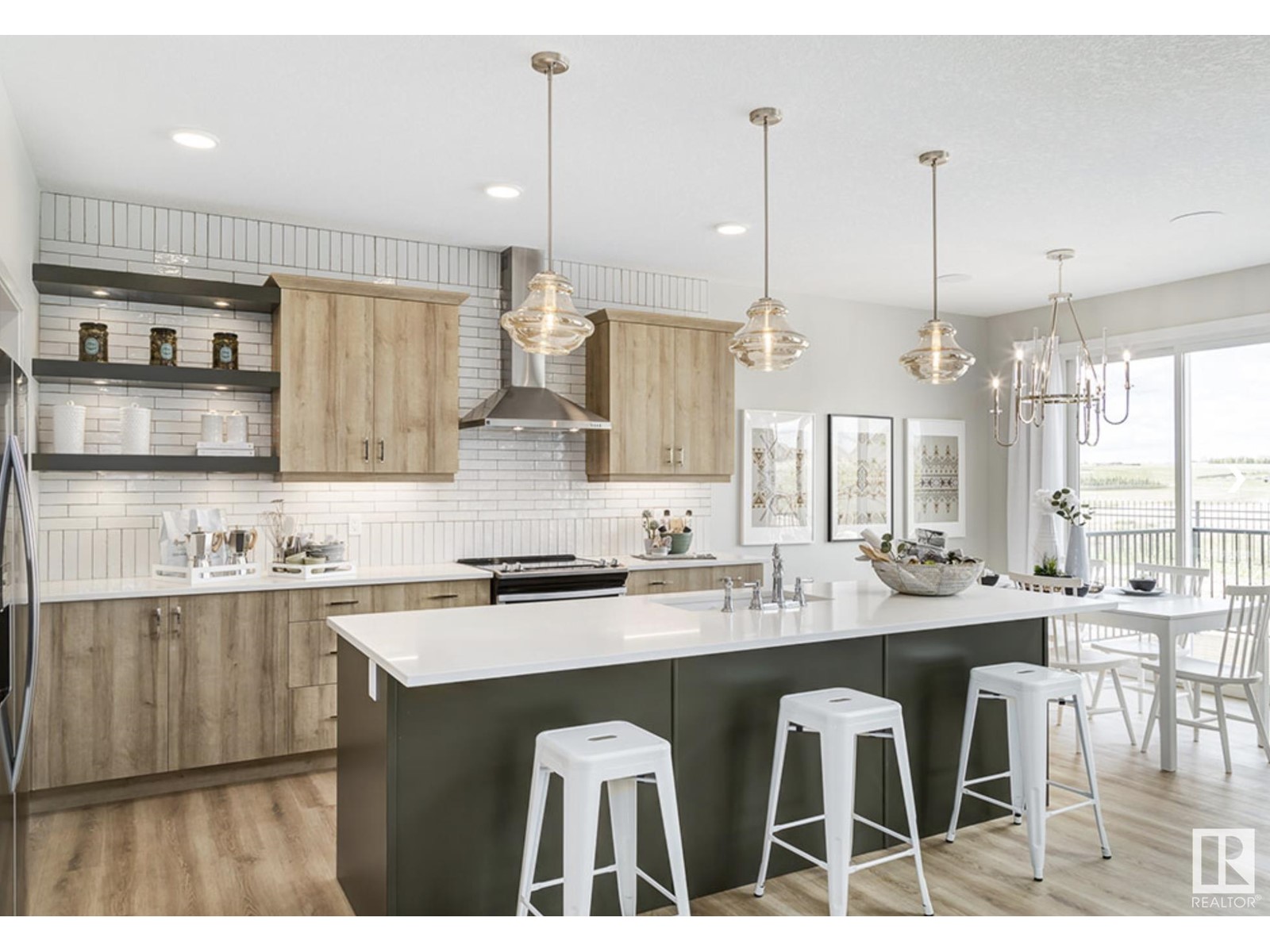 Welcome to Riverside in St. Albert. Brand New, Homes By Avi LUXURY 2 Story home on west backing pie shaped lot in private Cul De Sac. Currently under construction & ready for your family to move in August 2023. Measuring 2199 Sq Ft AG & features, 3 bedrooms + main level flex room(den), 2.5 bathrooms & upper level loft for your family to gather & enjoy movie night. Oversized double attached insulated garage, separate side entrance & complete landscaping included. Stunning upgrades throughout featuring quartz countertop with under-mount sink, abundance of kitchen cabinetry with soft close pot & pan drawers, oversized centre island, 9 ft ceiling height with 18' ceiling & electric fireplace in living room, abundance of storage & basic appliance package with blinds included. Main floor powder room, walk threw pantry & access to mud room through garage. Beautiful home just a short drive to Edmonton and minutes from new school development. Welcome to scenic St. Albert! Your new home awaits. (id:22211)
