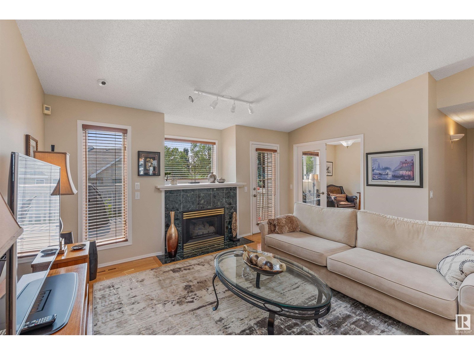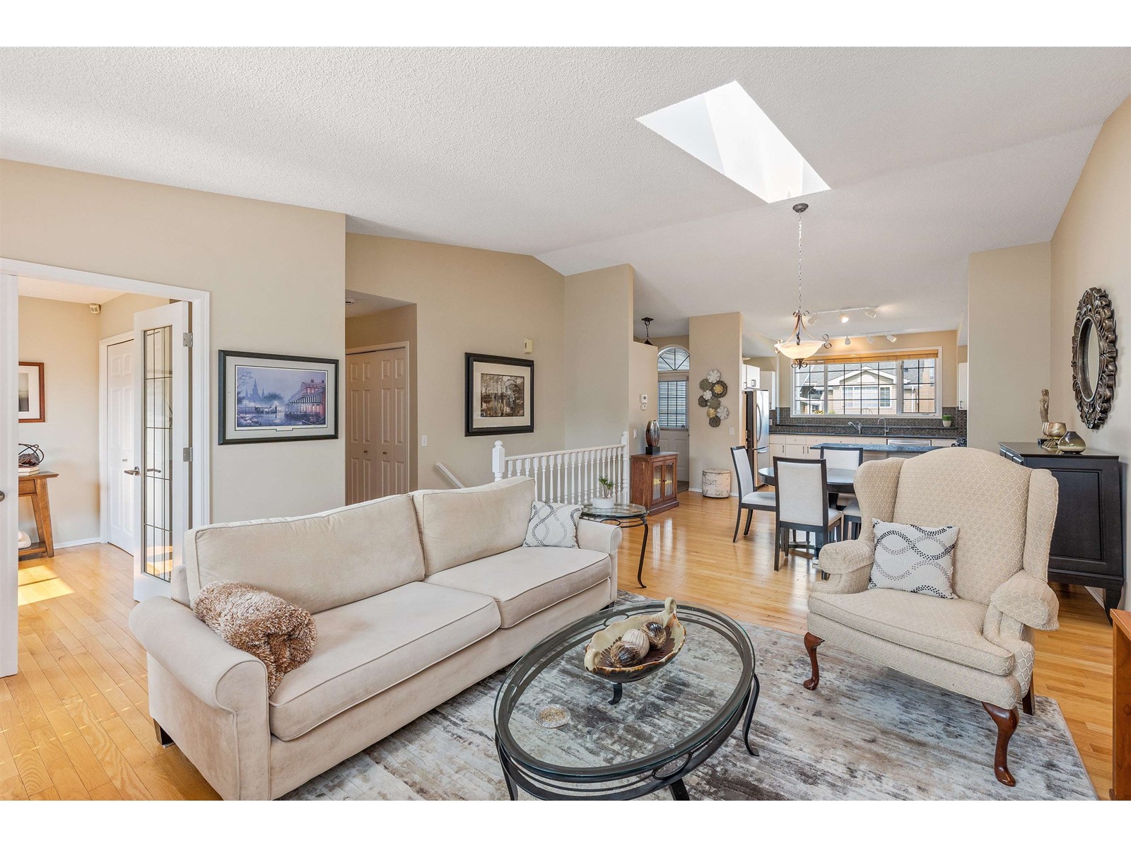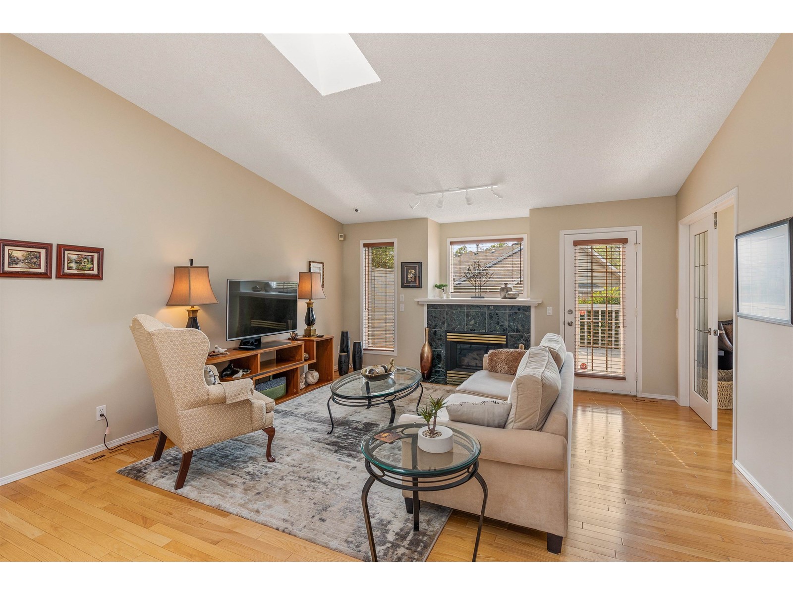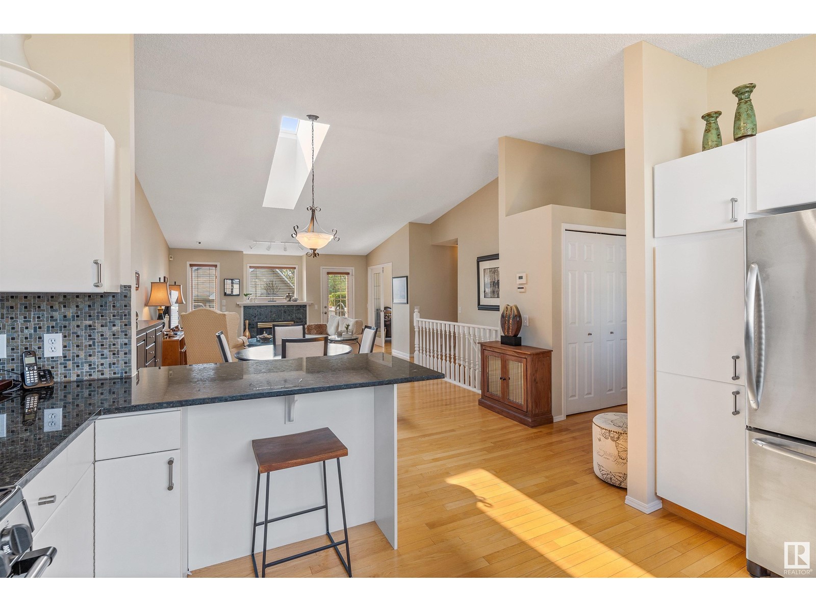 Discover this BUNGALOW style condo in fabulous Deerbourne Green. This well maintained & extensively upgraded property is move in ready. The entrance welcomes guests to the OPEN DESIGN w/ beautiful hardwood flooring that spreads through most of the main floor. The kitchen has white cabinetry, GRANITE counters, tumbled marble backsplash, eating bar, s/s appliances & a GAS STOVE. The dining area is in the centre of the home & is kept bright by a large skylight. The dining area can accom large family gatherings. The living room has a GAS F/P & access to the west facing deck. The deck has maintenance free boards & a gas line connection. Double French doors open into a perfect flex room- can be a 2nd bedroom or office space. The laundry facilities are just outside the primary suite which feat a walk in closet w/ a built-in organizer & a 4pce ensuite. A 3pce guest bath completes the main floor. The basement is unspoiled. Only a short walk to Starbucks, restaurants & more! Finished w/ a double attached garage! (id:22211)