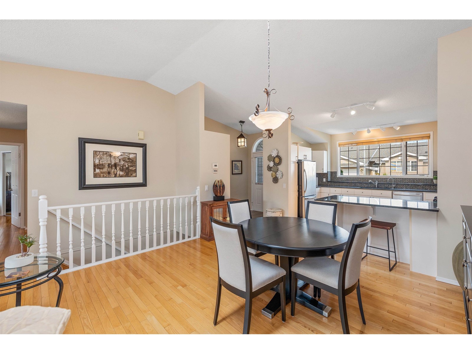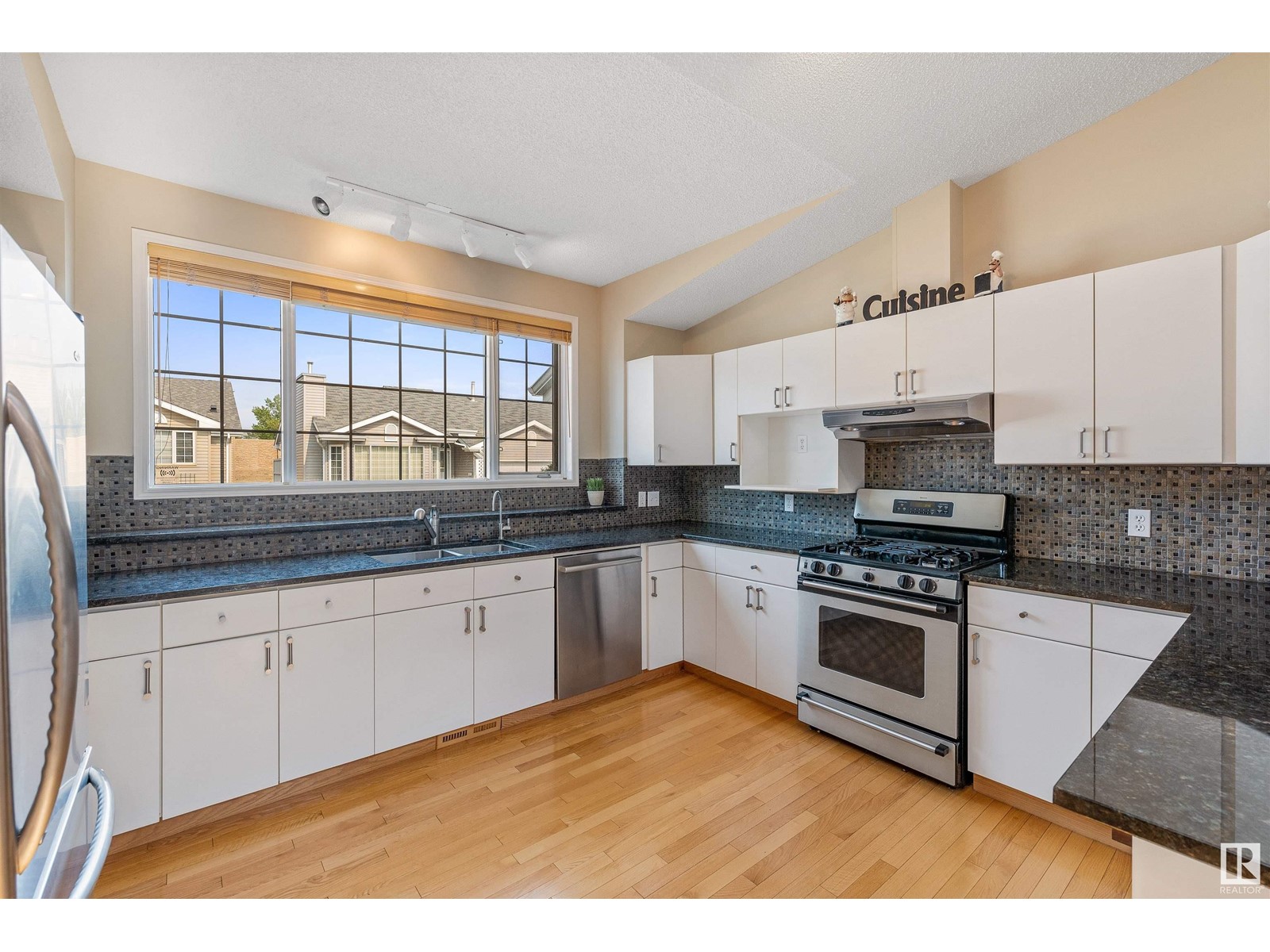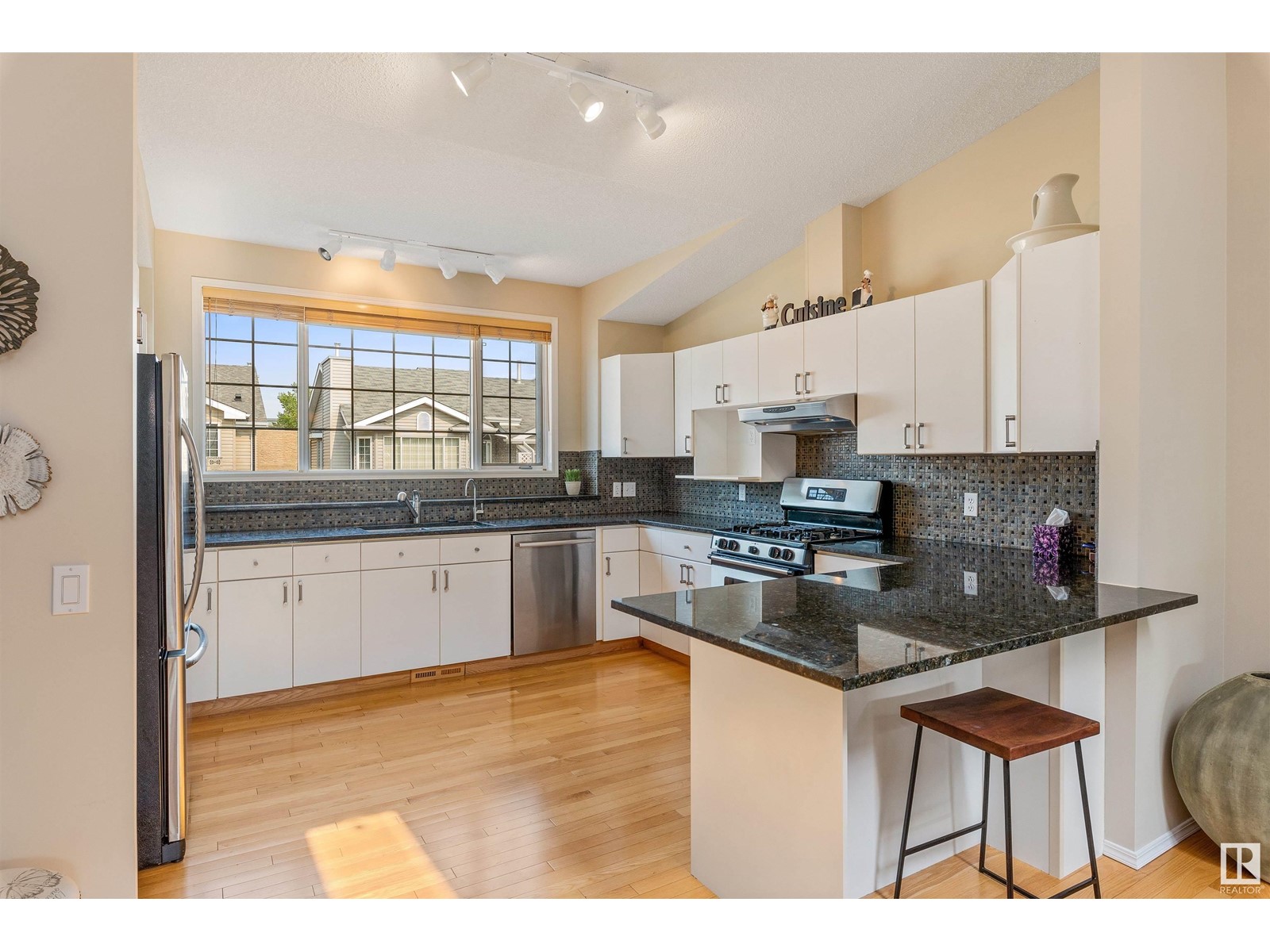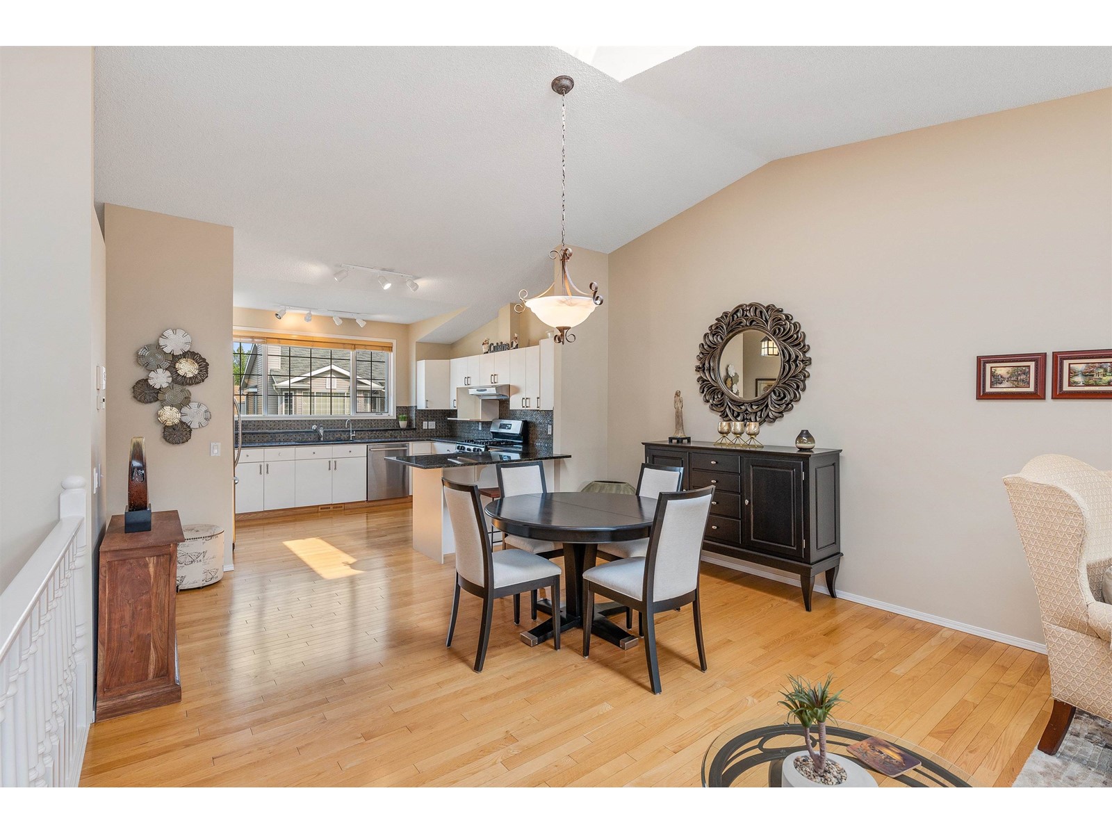 Discover this BUNGALOW style condo in fabulous Deerbourne Green. This well maintained & extensively upgraded property is move in ready. The entrance welcomes guests to the OPEN DESIGN w/ beautiful hardwood flooring that spreads through most of the main floor. The kitchen has white cabinetry, GRANITE counters, tumbled marble backsplash, eating bar, s/s appliances & a GAS STOVE. The dining area is in the centre of the home & is kept bright by a large skylight. The dining area can accom large family gatherings. The living room has a GAS F/P & access to the west facing deck. The deck has maintenance free boards & a gas line connection. Double French doors open into a perfect flex room- can be a 2nd bedroom or office space. The laundry facilities are just outside the primary suite which feat a walk in closet w/ a built-in organizer & a 4pce ensuite. A 3pce guest bath completes the main floor. The basement is unspoiled. Only a short walk to Starbucks, restaurants & more! Finished w/ a double attached garage! (id:22211)