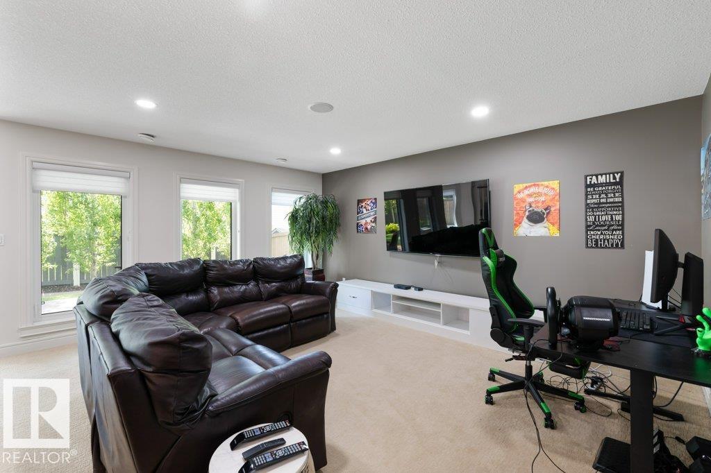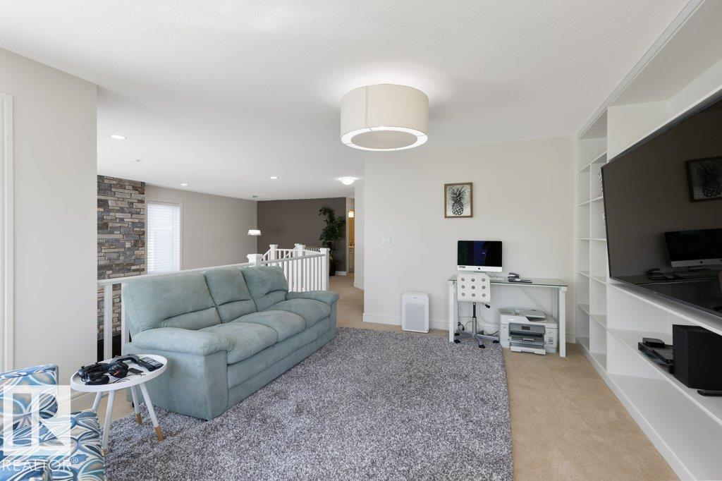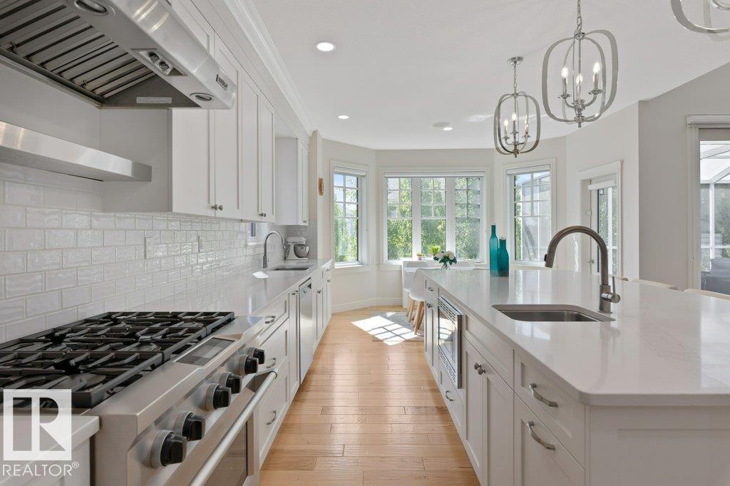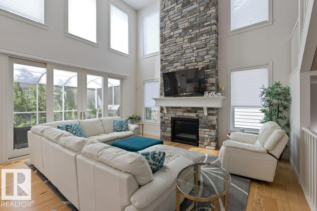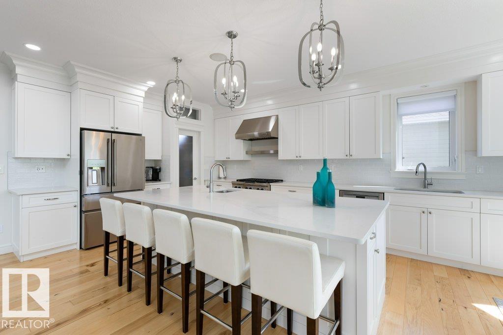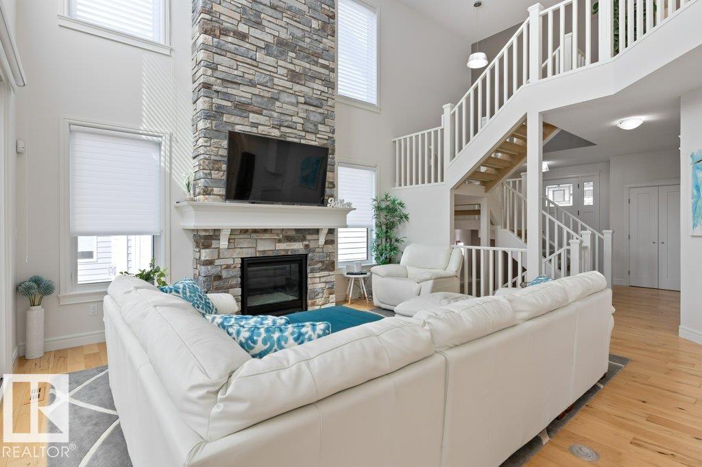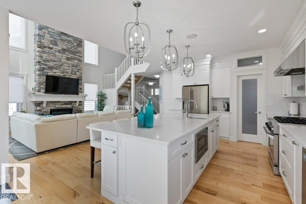 Nestled in the quiet, family-friendly Orchards of Oakmont, this former show home is loaded with upgrades! The Great Room boasts a 20-ft ceiling, floor-to-ceiling stone fireplace, and abundant natural light. A chef’s dream kitchen shines with white cabinetry, quartz island (with second sink), SS appliances, and a bright dining area opening to an elevated Sunroom. The versatile flex room suits an office or formal dining. A walk-thru pantry connects to a mudroom with 3 closets, built-ins, and bench. Upstairs: bonus room with valley views, 3 bedrooms, laundry, and a 4-pc bath with soaker tub. The luxurious primary retreat offers a large walk-in and spa-like 5-pc ensuite. The finished walkout basement features in-floor heat, wet bar, 4th bedroom, full bath, games/living space, and storage. Entertain with billiards, ping pong, or playoff hockey. Extras: oversized heated triple garage, A/C, central vac, built-in speakers (incl. garage), and low-maintenance yard.
