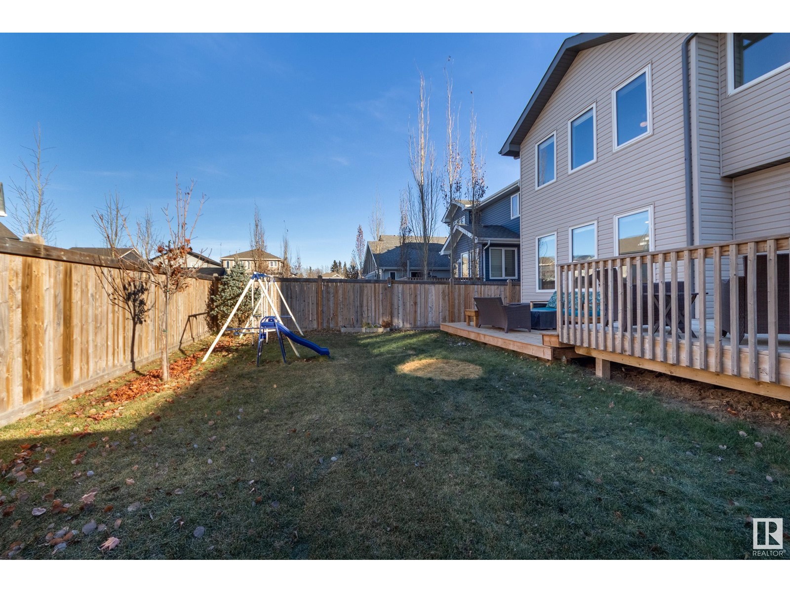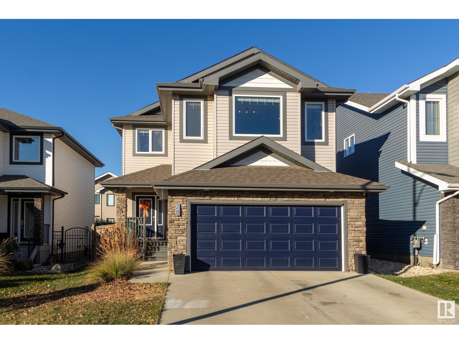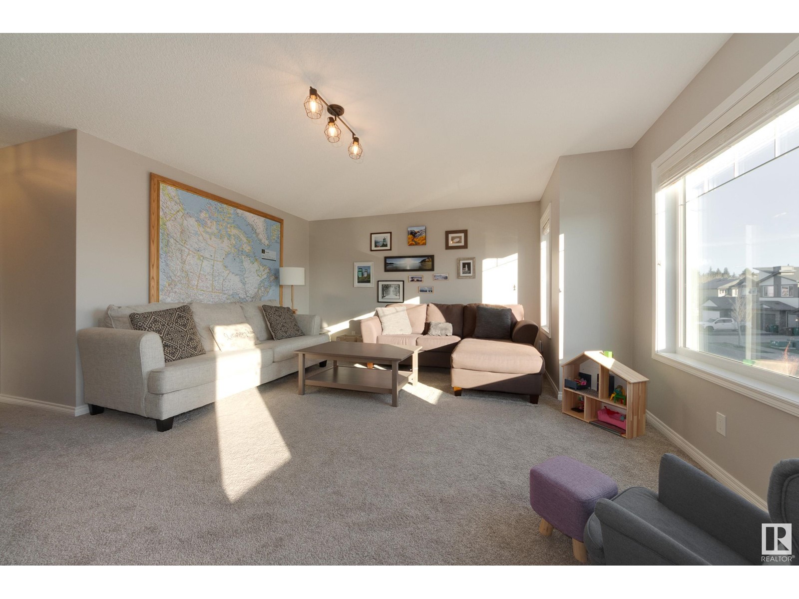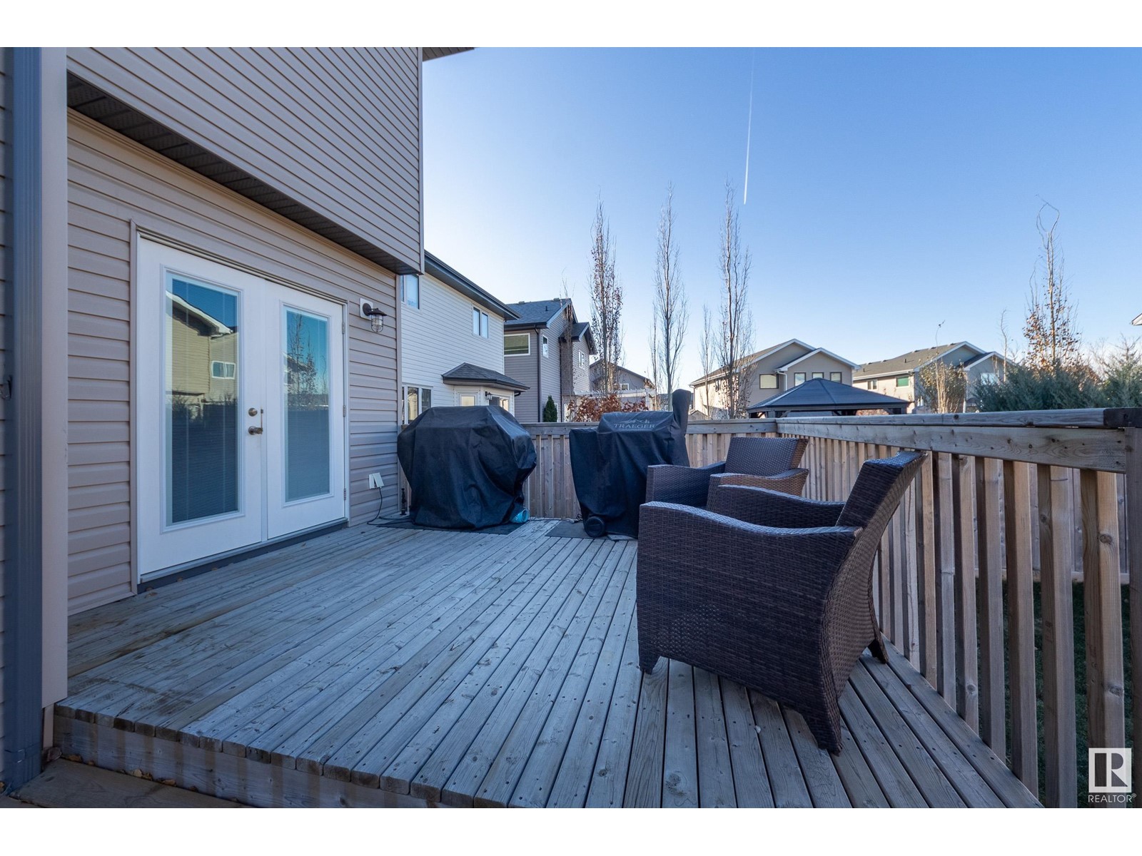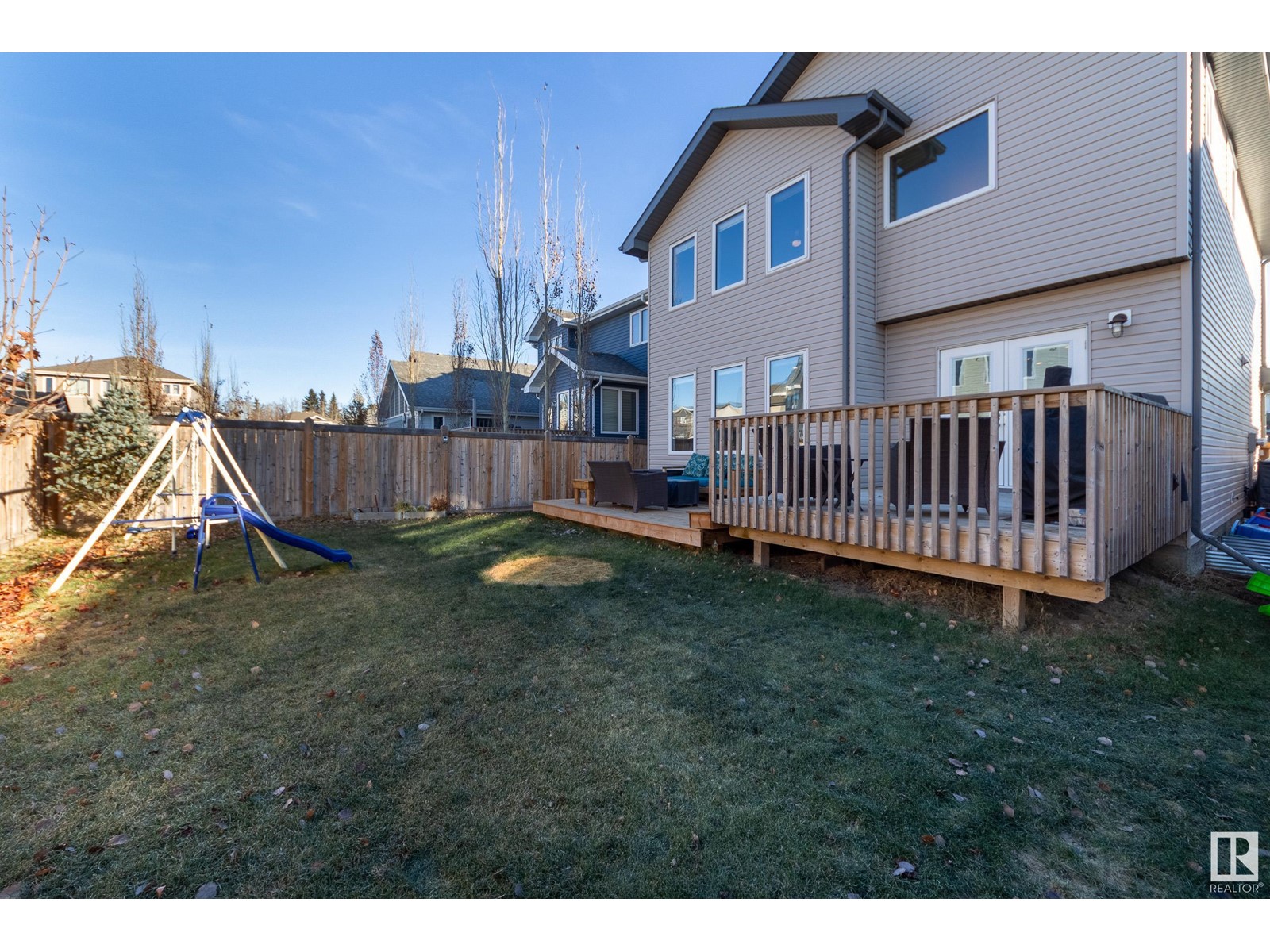 Nestled on a quiet street in the heart of St Albert, this stunning, move-in ready 2367 sq ft 3 bed, 3 bath family home w/central AC & fully fenced & landscaped yard awaits! Youll find 9ft ceilings, wide plank hardwood & upgraded lighting in the gorgeous open concept great room featuring a spacious living w/huge windows & natural gas fireplace & large dining room w/ double patio doors to access the two tier deck & gas BBQ hook up. The massive kitchen features s/steel appliances, ample cabinetry & corner pantry. Upgraded quartz countertops are found throughout the kitchen & baths. The elegant curved staircase leads you to the spacious & bright bonus room, oversized laundry room, 3 generously sized bedrooms, each with walk-in closets & a luxurious 5pce ensuite w/dual sinks. Walking distance to nature trails, the farmers market, parks & playgrounds, its central location makes it a 7 min drive from all amenities, major roads & Edmonton. Act today to own this impressive home in a family friendly & safe area! (id:22211)