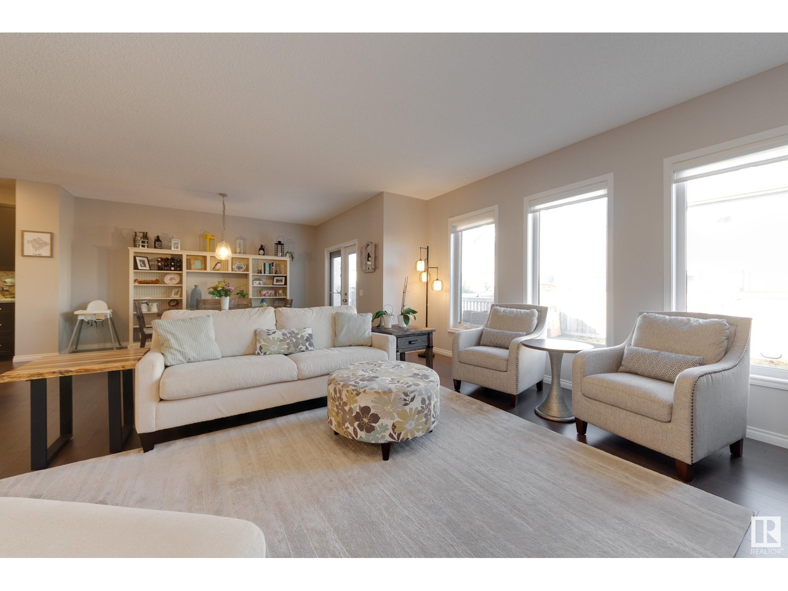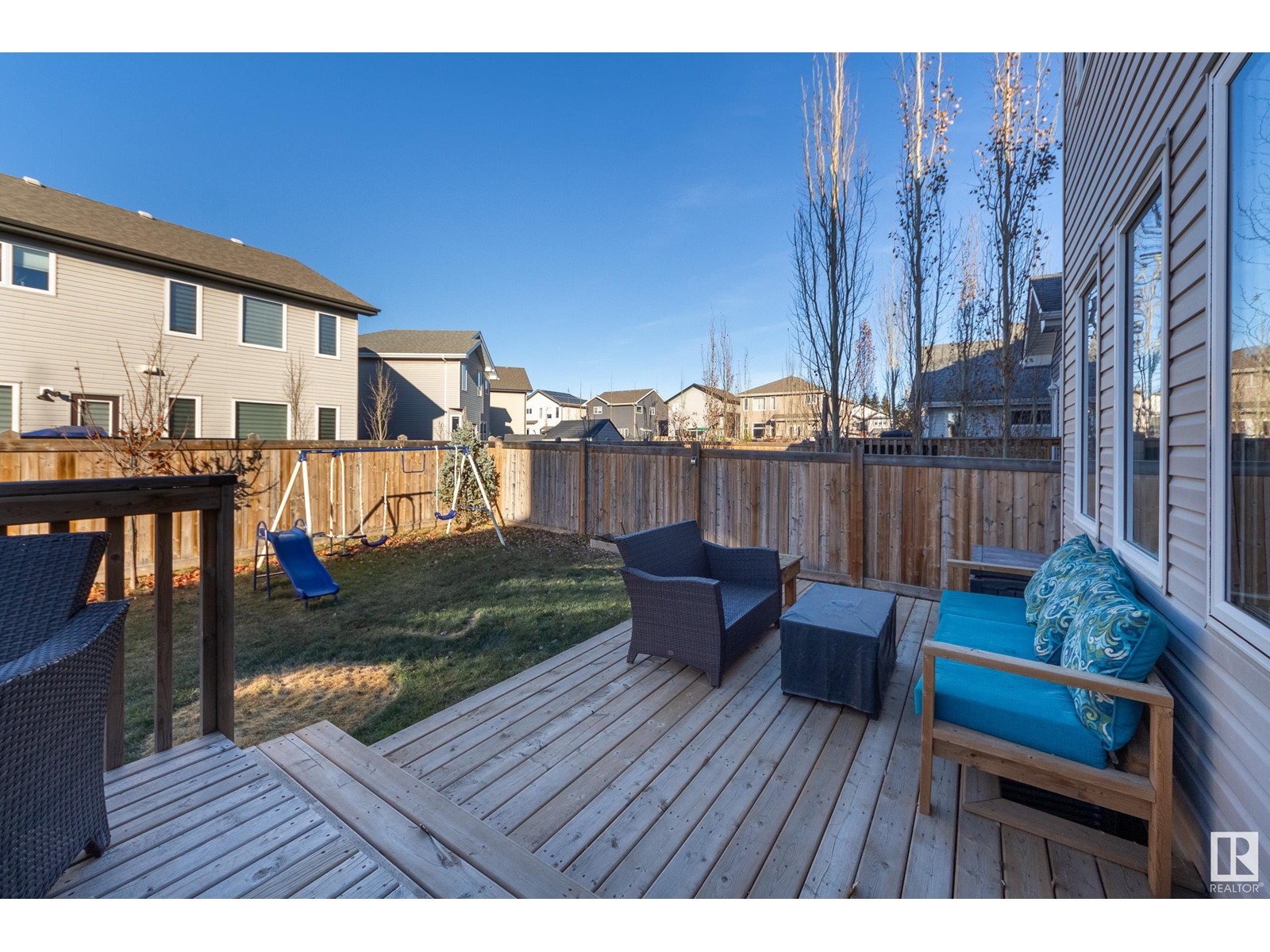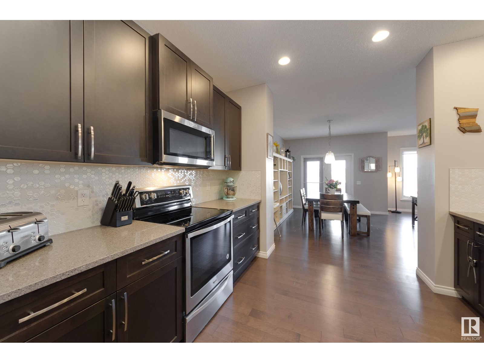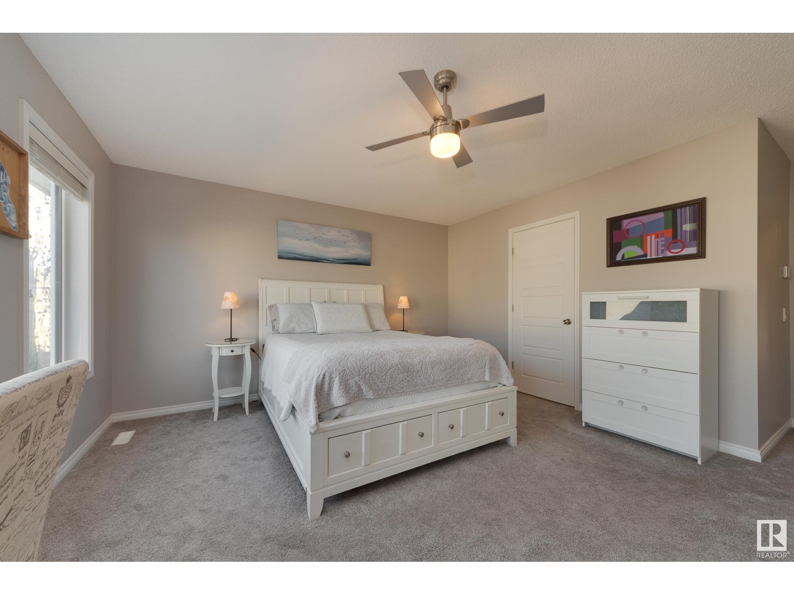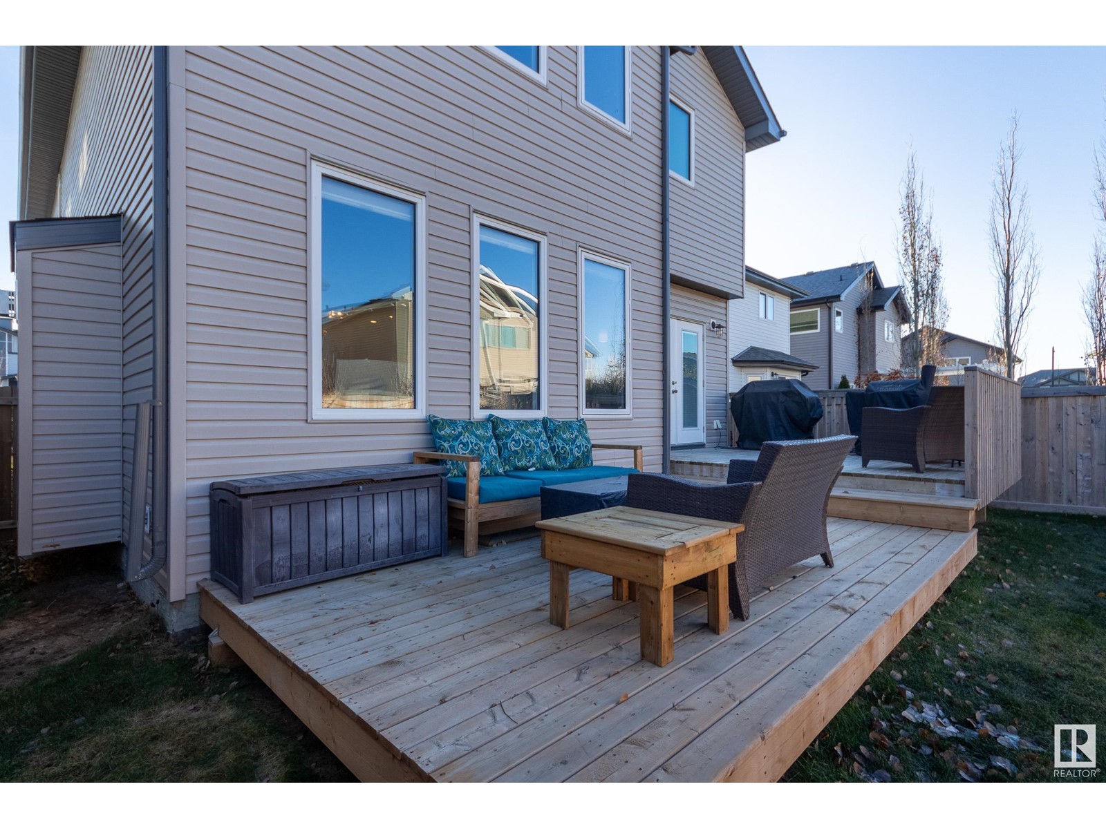 Nestled on a quiet street in the heart of St Albert, this stunning, move-in ready 2367 sq ft 3 bed, 3 bath family home w/central AC & fully fenced & landscaped yard awaits! Youll find 9ft ceilings, wide plank hardwood & upgraded lighting in the gorgeous open concept great room featuring a spacious living w/huge windows & natural gas fireplace & large dining room w/ double patio doors to access the two tier deck & gas BBQ hook up. The massive kitchen features s/steel appliances, ample cabinetry & corner pantry. Upgraded quartz countertops are found throughout the kitchen & baths. The elegant curved staircase leads you to the spacious & bright bonus room, oversized laundry room, 3 generously sized bedrooms, each with walk-in closets & a luxurious 5pce ensuite w/dual sinks. Walking distance to nature trails, the farmers market, parks & playgrounds, its central location makes it a 7 min drive from all amenities, major roads & Edmonton. Act today to own this impressive home in a family friendly & safe area! (id:22211)