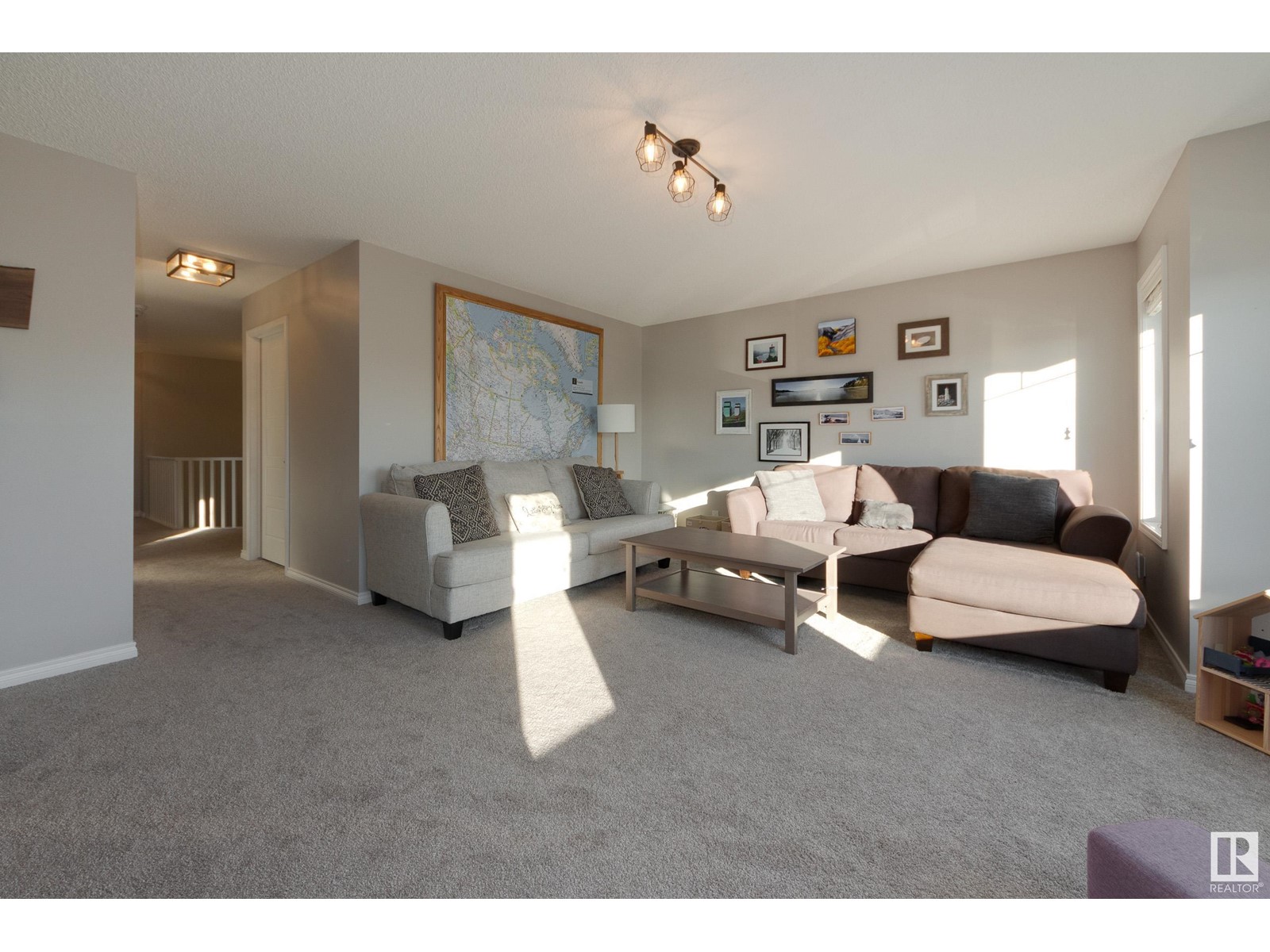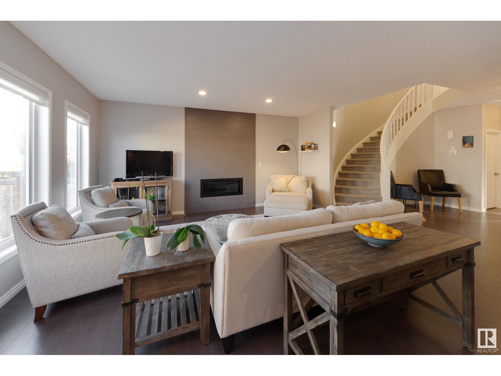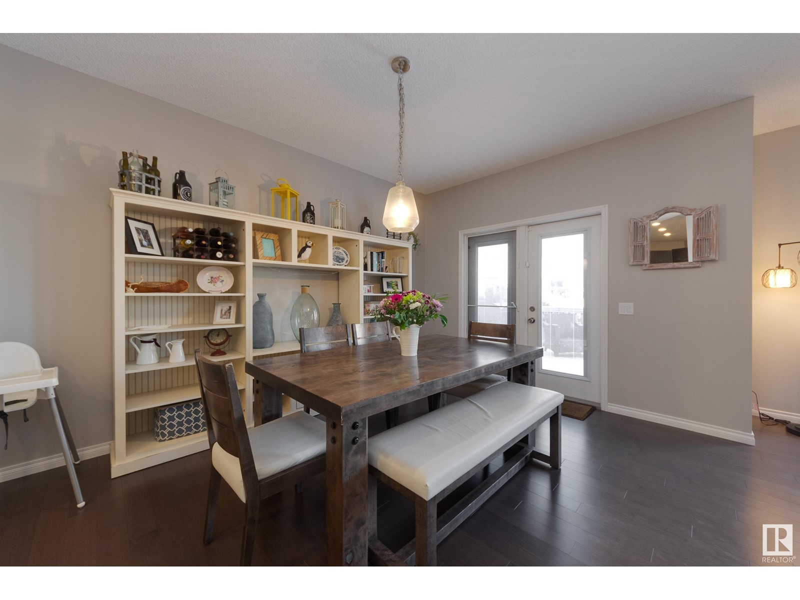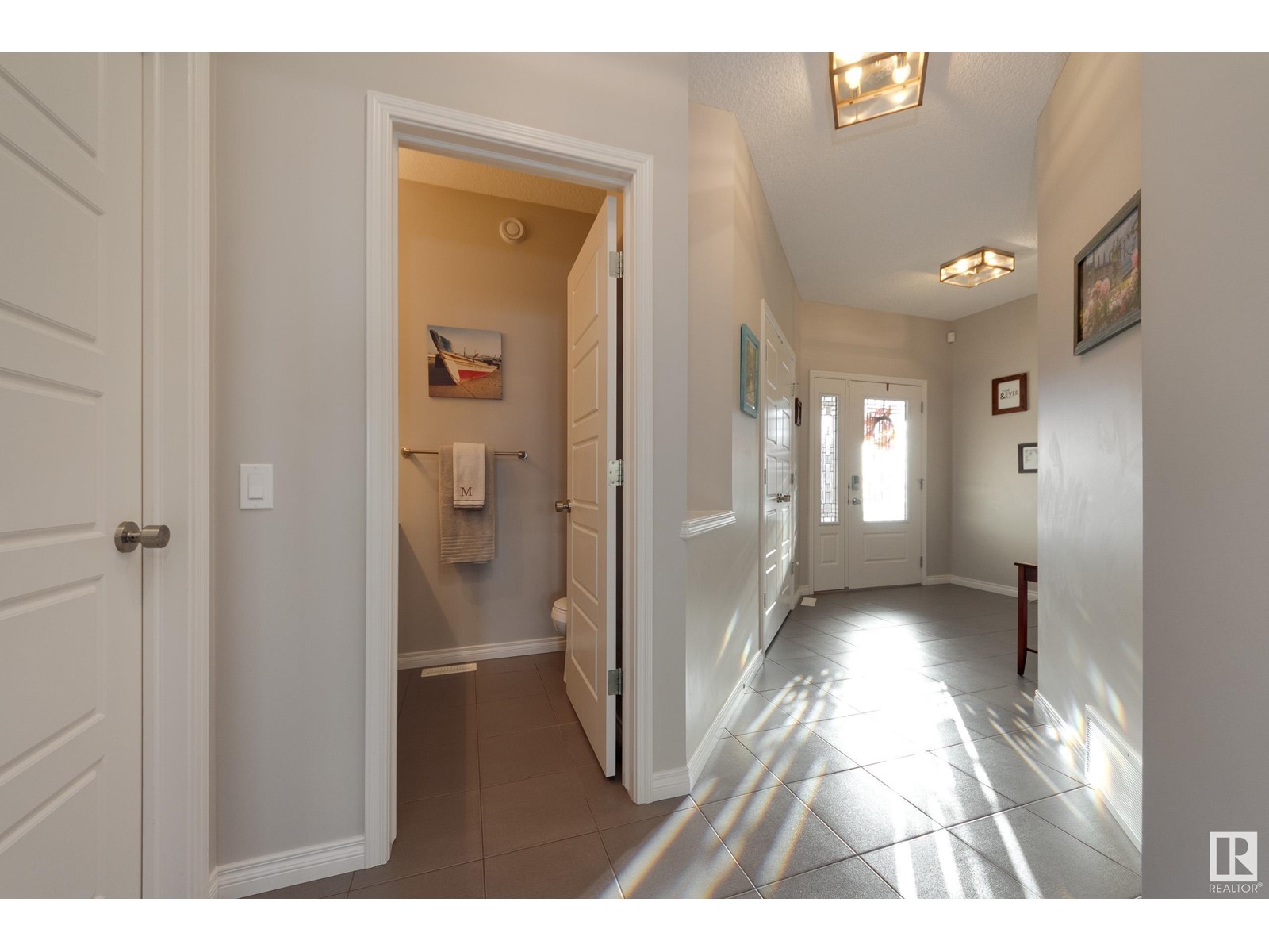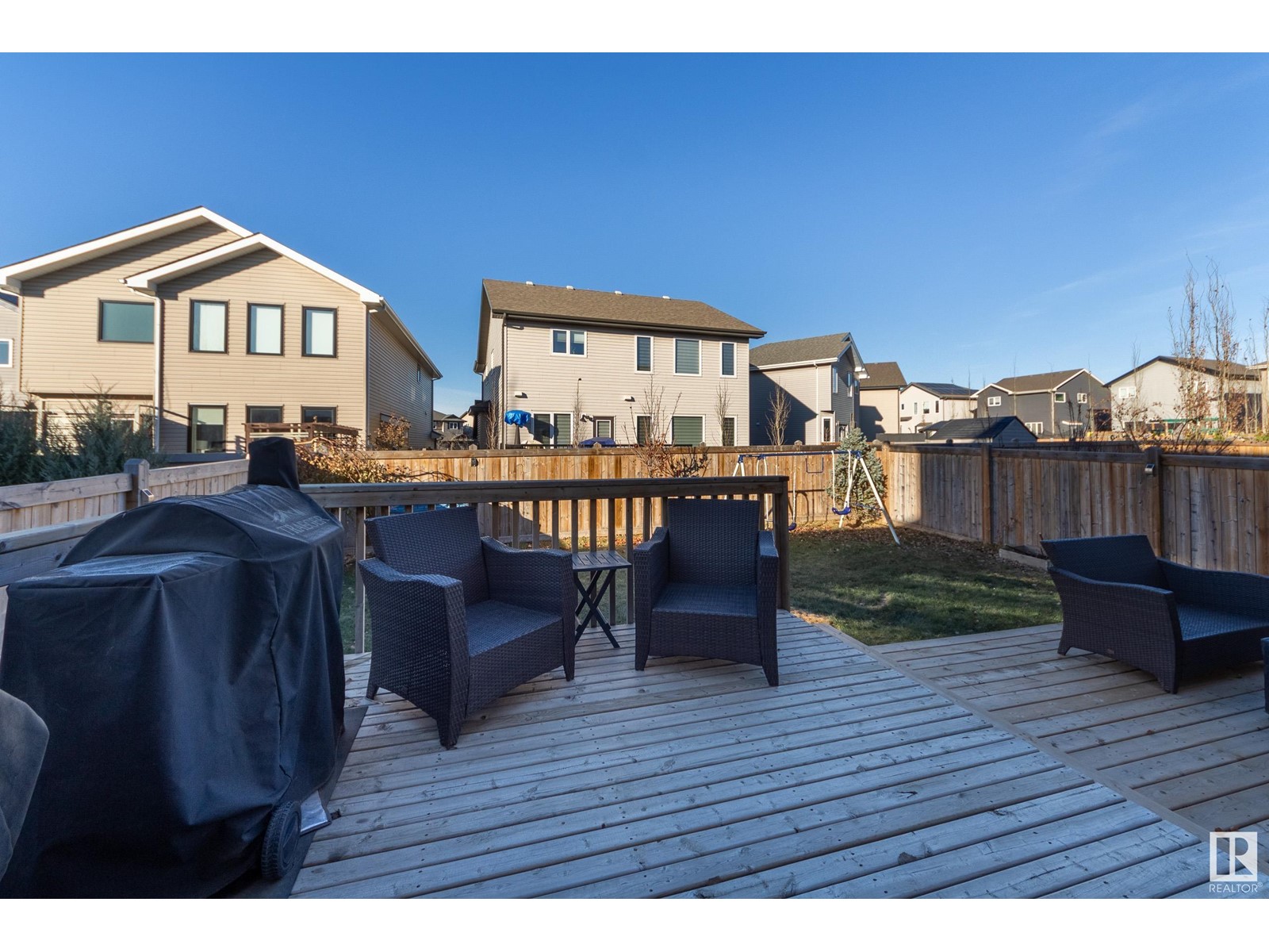 Nestled on a quiet street in the heart of St Albert, this stunning, move-in ready 2367 sq ft 3 bed, 3 bath family home w/central AC & fully fenced & landscaped yard awaits! Youll find 9ft ceilings, wide plank hardwood & upgraded lighting in the gorgeous open concept great room featuring a spacious living w/huge windows & natural gas fireplace & large dining room w/ double patio doors to access the two tier deck & gas BBQ hook up. The massive kitchen features s/steel appliances, ample cabinetry & corner pantry. Upgraded quartz countertops are found throughout the kitchen & baths. The elegant curved staircase leads you to the spacious & bright bonus room, oversized laundry room, 3 generously sized bedrooms, each with walk-in closets & a luxurious 5pce ensuite w/dual sinks. Walking distance to nature trails, the farmers market, parks & playgrounds, its central location makes it a 7 min drive from all amenities, major roads & Edmonton. Act today to own this impressive home in a family friendly & safe area! (id:22211)