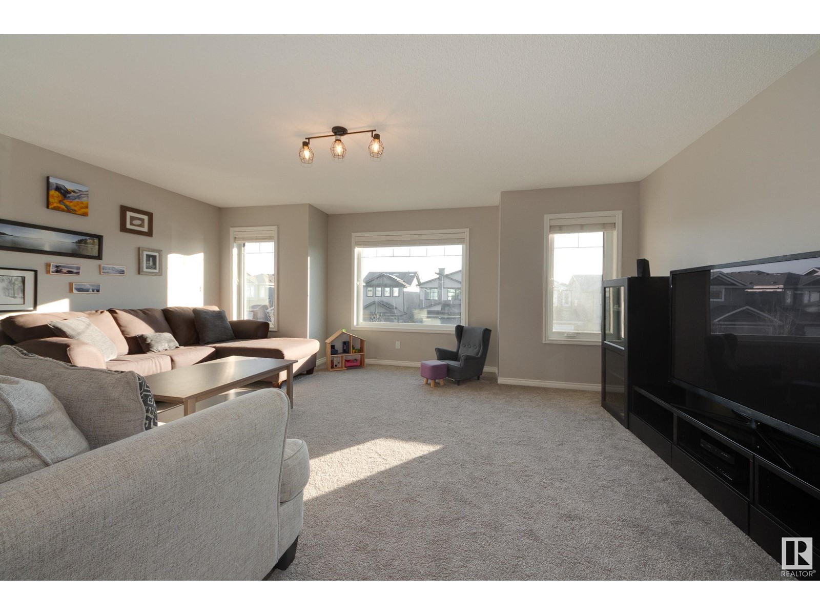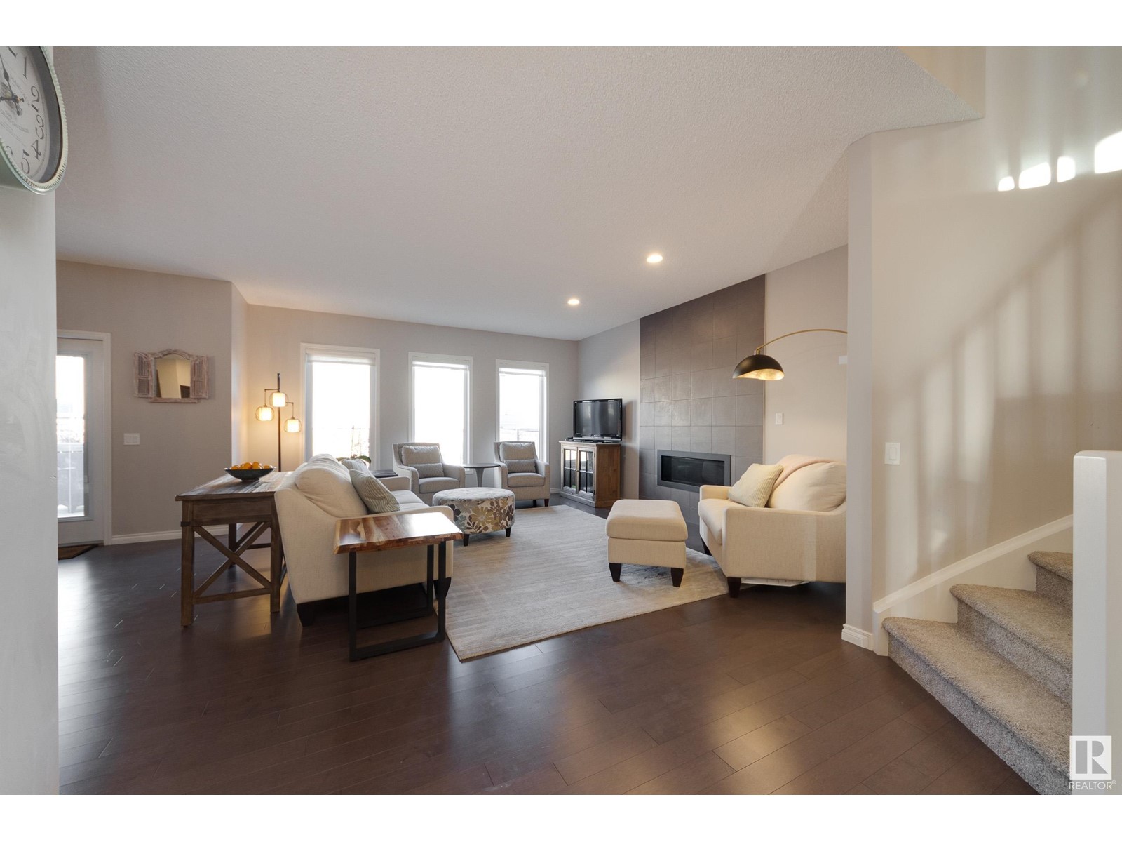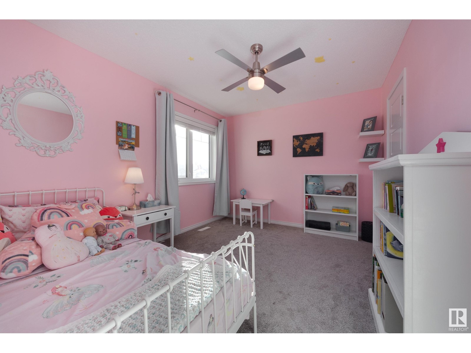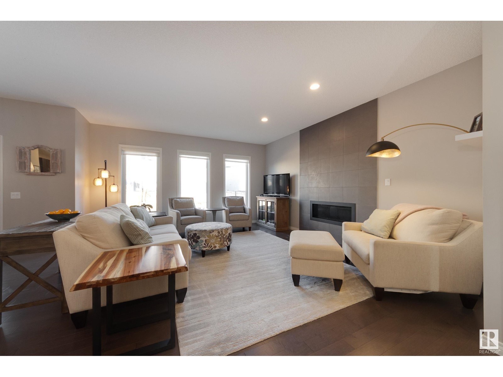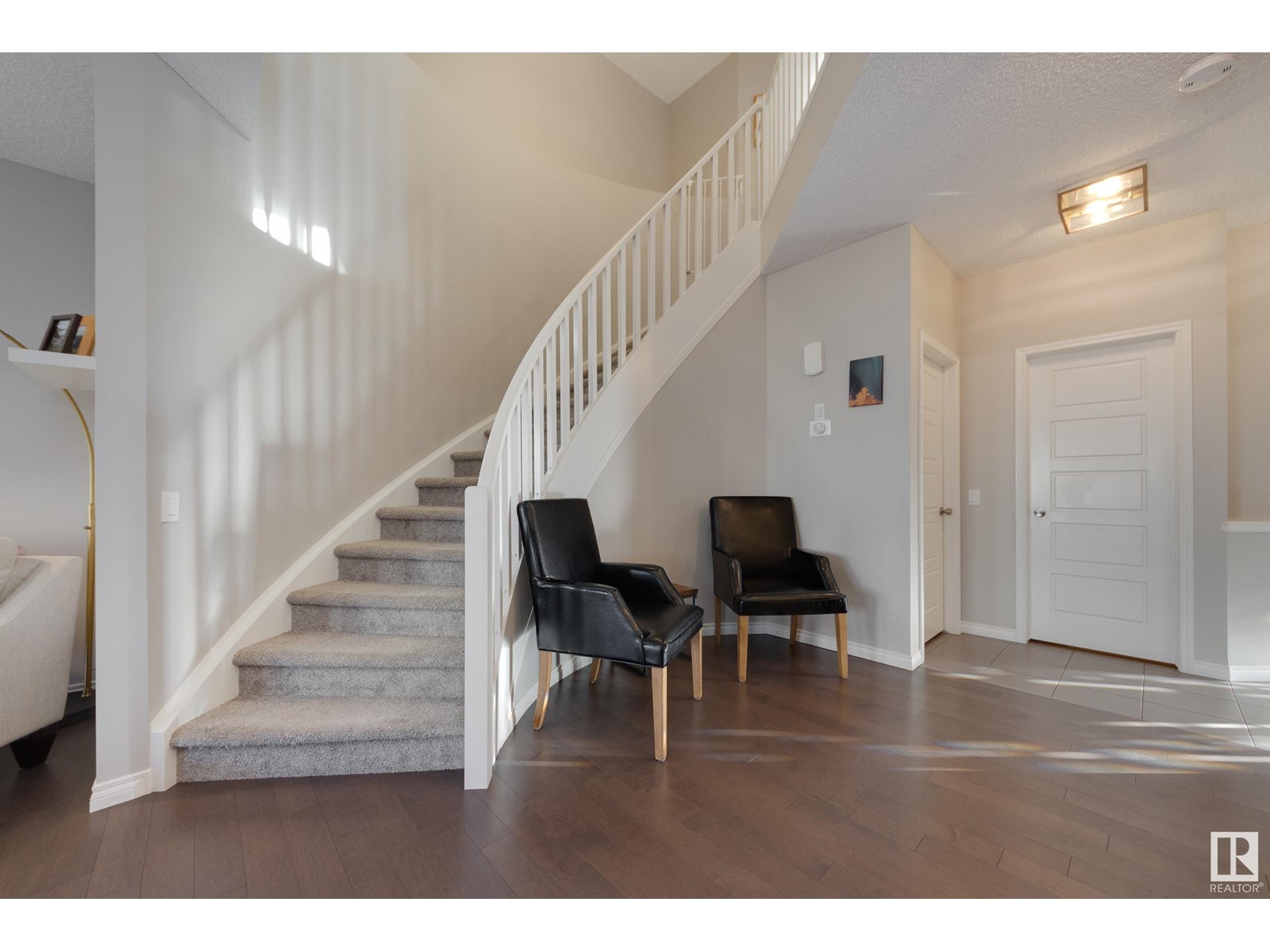Nestled on a quiet street in the heart of St Albert, this stunning, move-in ready 2367 sq ft 3 bed, 3 bath family home w/central AC & fully fenced & landscaped yard awaits! Youll find 9ft ceilings, wide plank hardwood & upgraded lighting in the gorgeous open concept great room featuring a spacious living w/huge windows & natural gas fireplace & large dining room w/ double patio doors to access the two tier deck & gas BBQ hook up. The massive kitchen features s/steel appliances, ample cabinetry & corner pantry. Upgraded quartz countertops are found throughout the kitchen & baths. The elegant curved staircase leads you to the spacious & bright bonus room, oversized laundry room, 3 generously sized bedrooms, each with walk-in closets & a luxurious 5pce ensuite w/dual sinks. Walking distance to nature trails, the farmers market, parks & playgrounds, its central location makes it a 7 min drive from all amenities, major roads & Edmonton. Act today to own this impressive home in a family friendly & safe area! (id:22211)