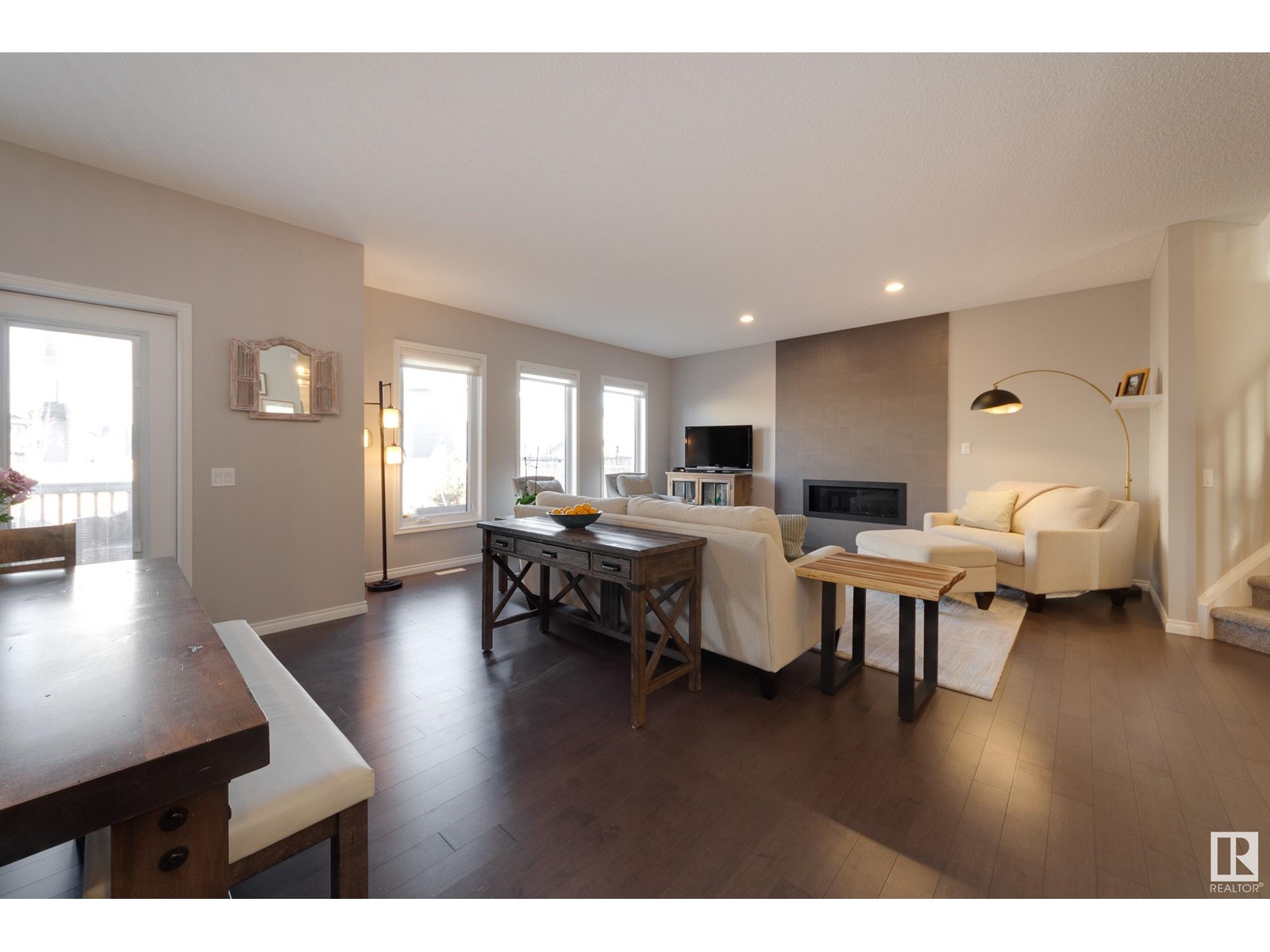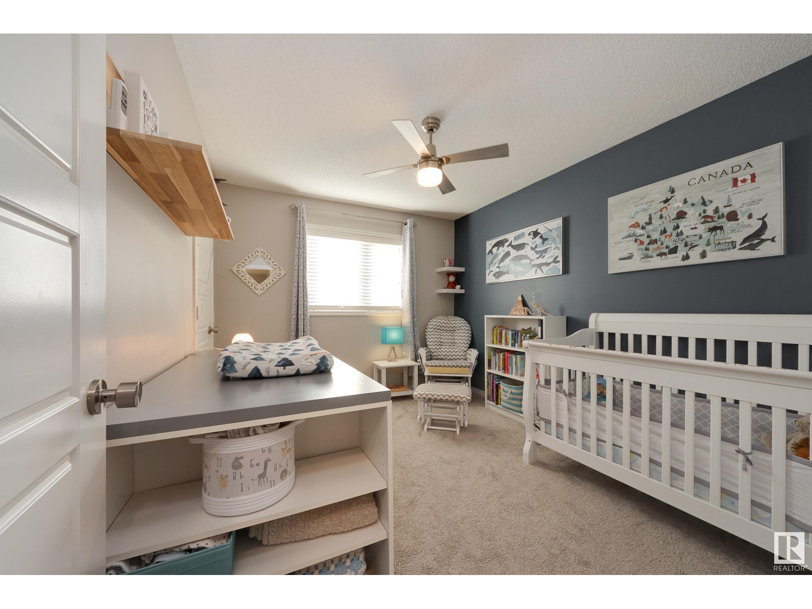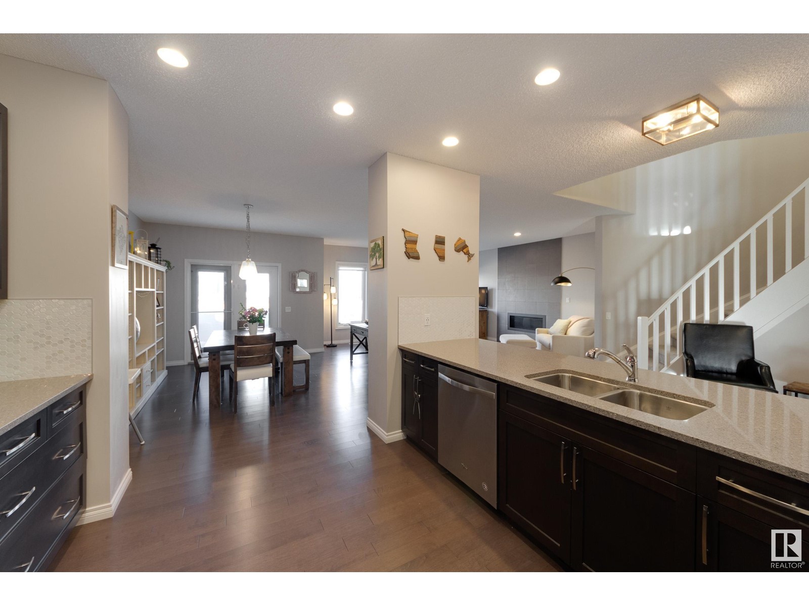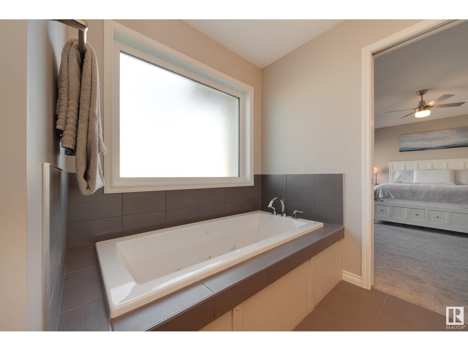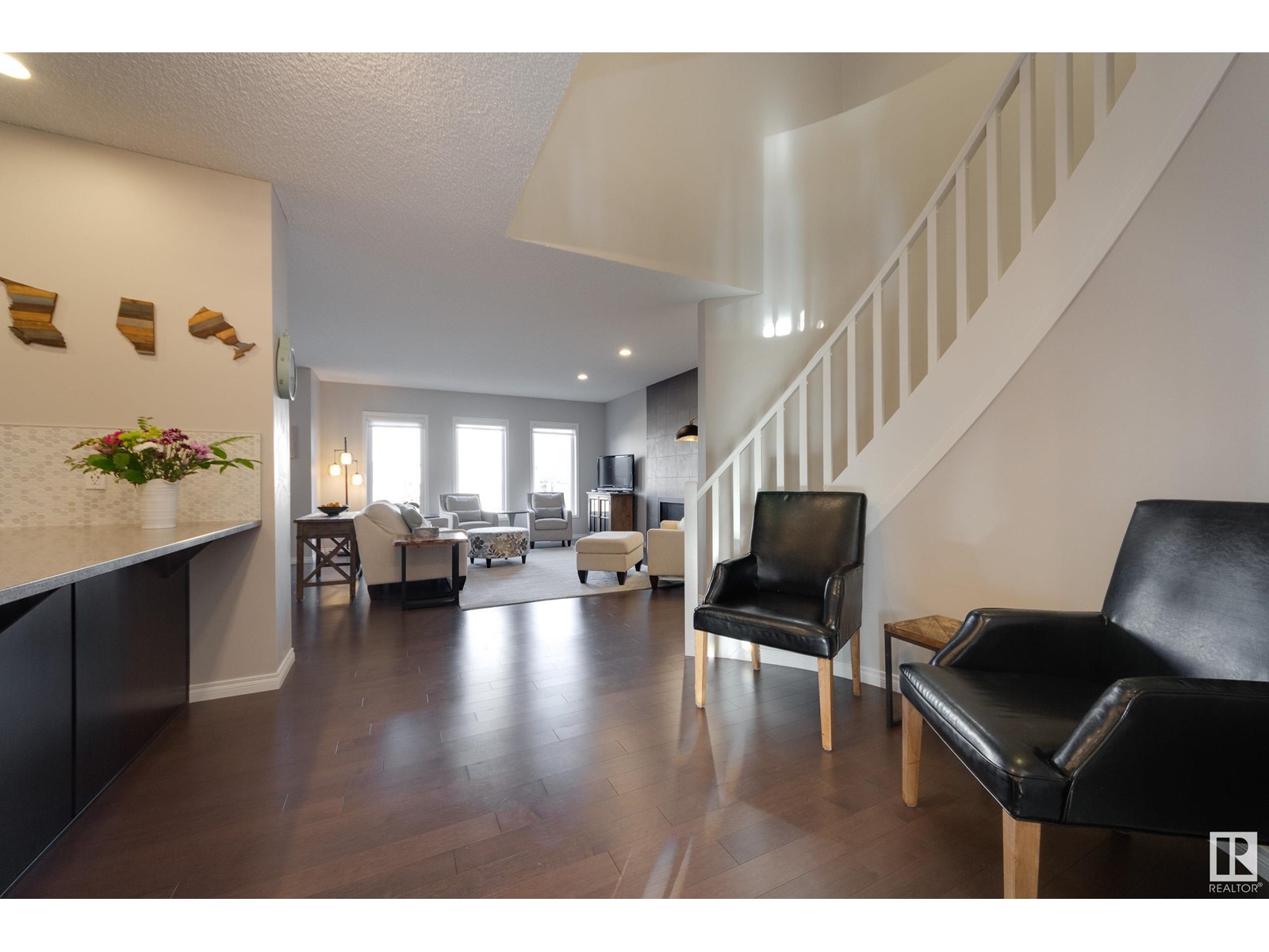 Nestled on a quiet street in the heart of St Albert, this stunning, move-in ready 2367 sq ft 3 bed, 3 bath family home w/central AC & fully fenced & landscaped yard awaits! Youll find 9ft ceilings, wide plank hardwood & upgraded lighting in the gorgeous open concept great room featuring a spacious living w/huge windows & natural gas fireplace & large dining room w/ double patio doors to access the two tier deck & gas BBQ hook up. The massive kitchen features s/steel appliances, ample cabinetry & corner pantry. Upgraded quartz countertops are found throughout the kitchen & baths. The elegant curved staircase leads you to the spacious & bright bonus room, oversized laundry room, 3 generously sized bedrooms, each with walk-in closets & a luxurious 5pce ensuite w/dual sinks. Walking distance to nature trails, the farmers market, parks & playgrounds, its central location makes it a 7 min drive from all amenities, major roads & Edmonton. Act today to own this impressive home in a family friendly & safe area! (id:22211)