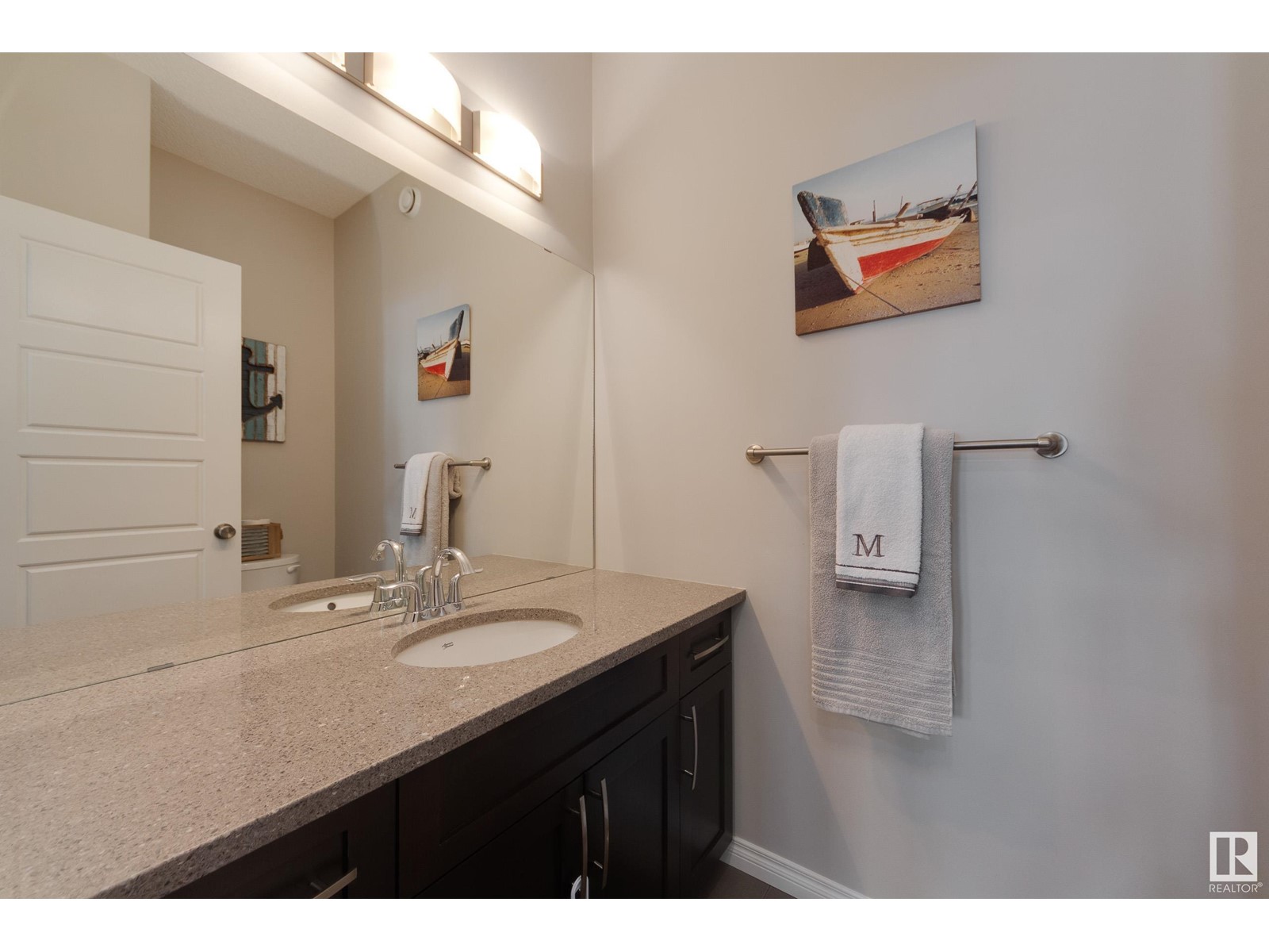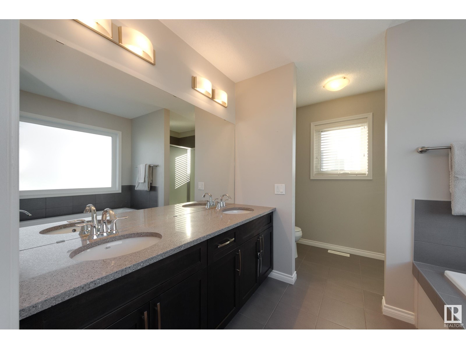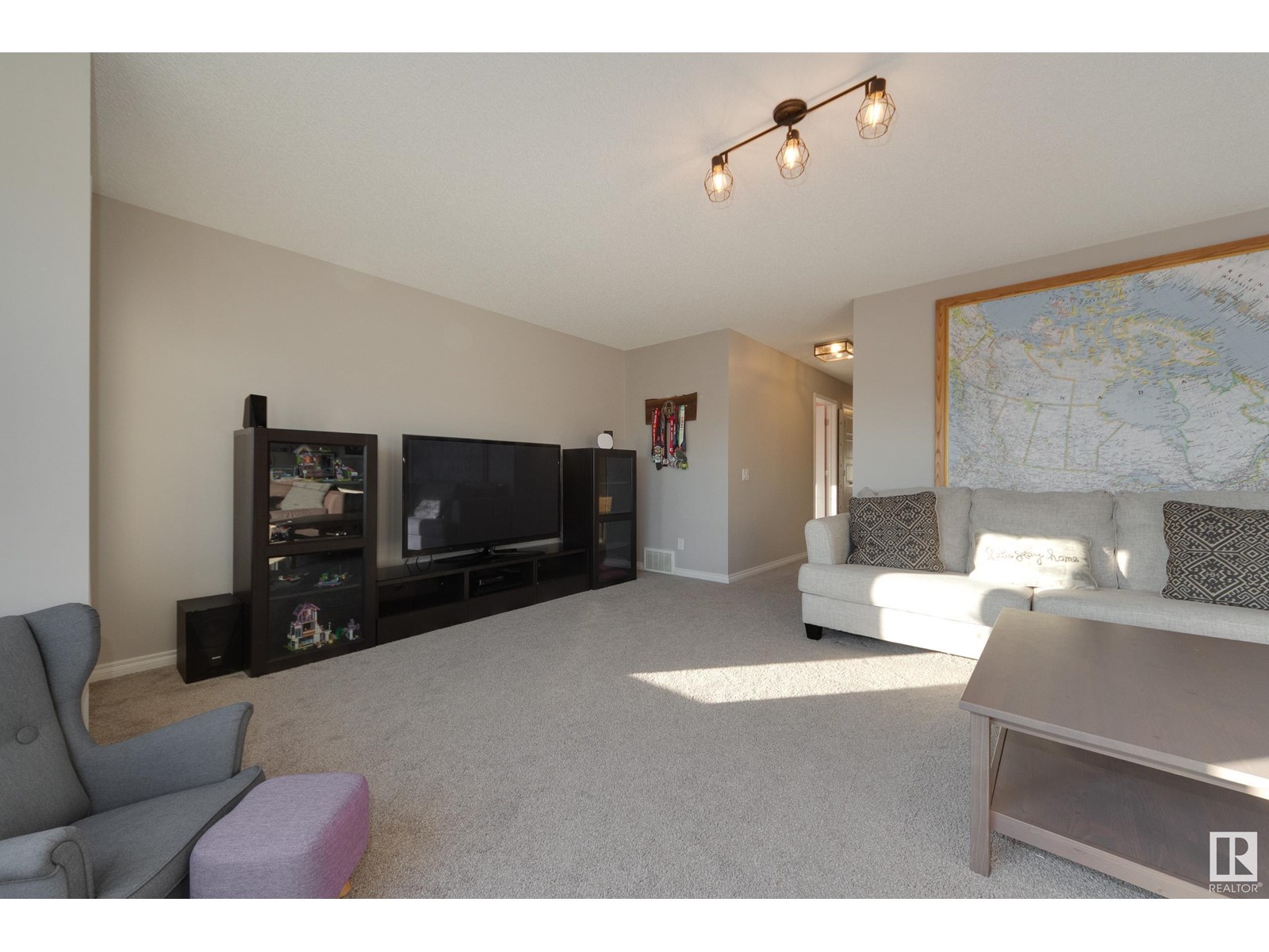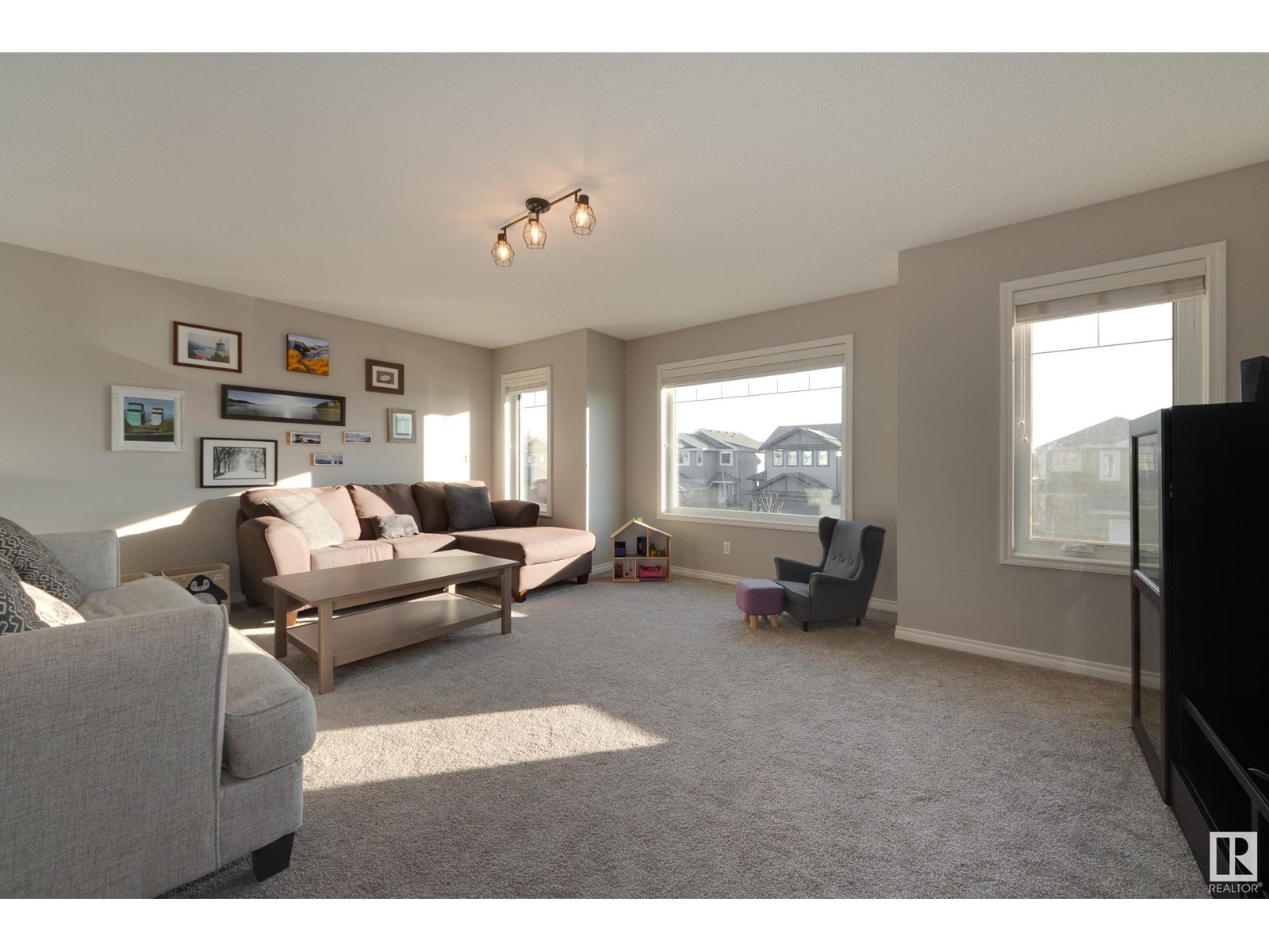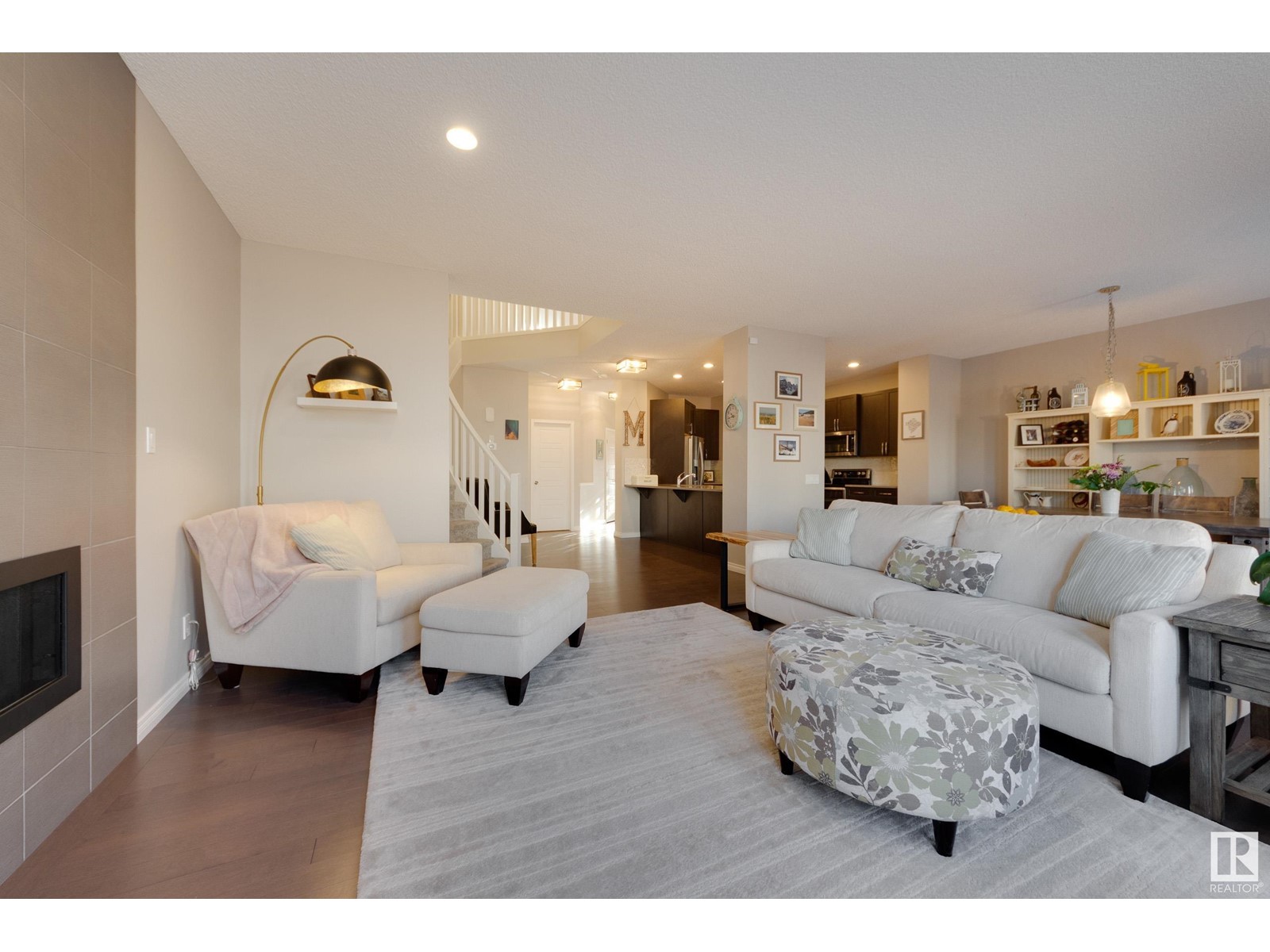 Nestled on a quiet street in the heart of St Albert, this stunning, move-in ready 2367 sq ft 3 bed, 3 bath family home w/central AC & fully fenced & landscaped yard awaits! Youll find 9ft ceilings, wide plank hardwood & upgraded lighting in the gorgeous open concept great room featuring a spacious living w/huge windows & natural gas fireplace & large dining room w/ double patio doors to access the two tier deck & gas BBQ hook up. The massive kitchen features s/steel appliances, ample cabinetry & corner pantry. Upgraded quartz countertops are found throughout the kitchen & baths. The elegant curved staircase leads you to the spacious & bright bonus room, oversized laundry room, 3 generously sized bedrooms, each with walk-in closets & a luxurious 5pce ensuite w/dual sinks. Walking distance to nature trails, the farmers market, parks & playgrounds, its central location makes it a 7 min drive from all amenities, major roads & Edmonton. Act today to own this impressive home in a family friendly & safe area! (id:22211)