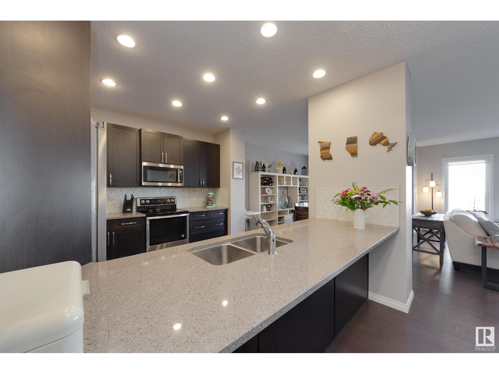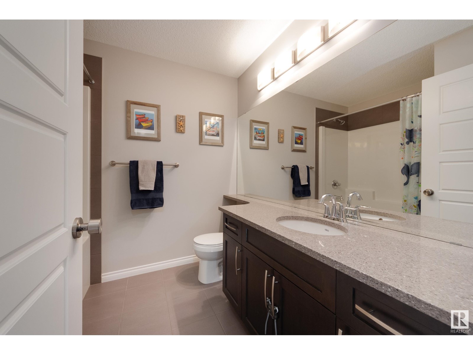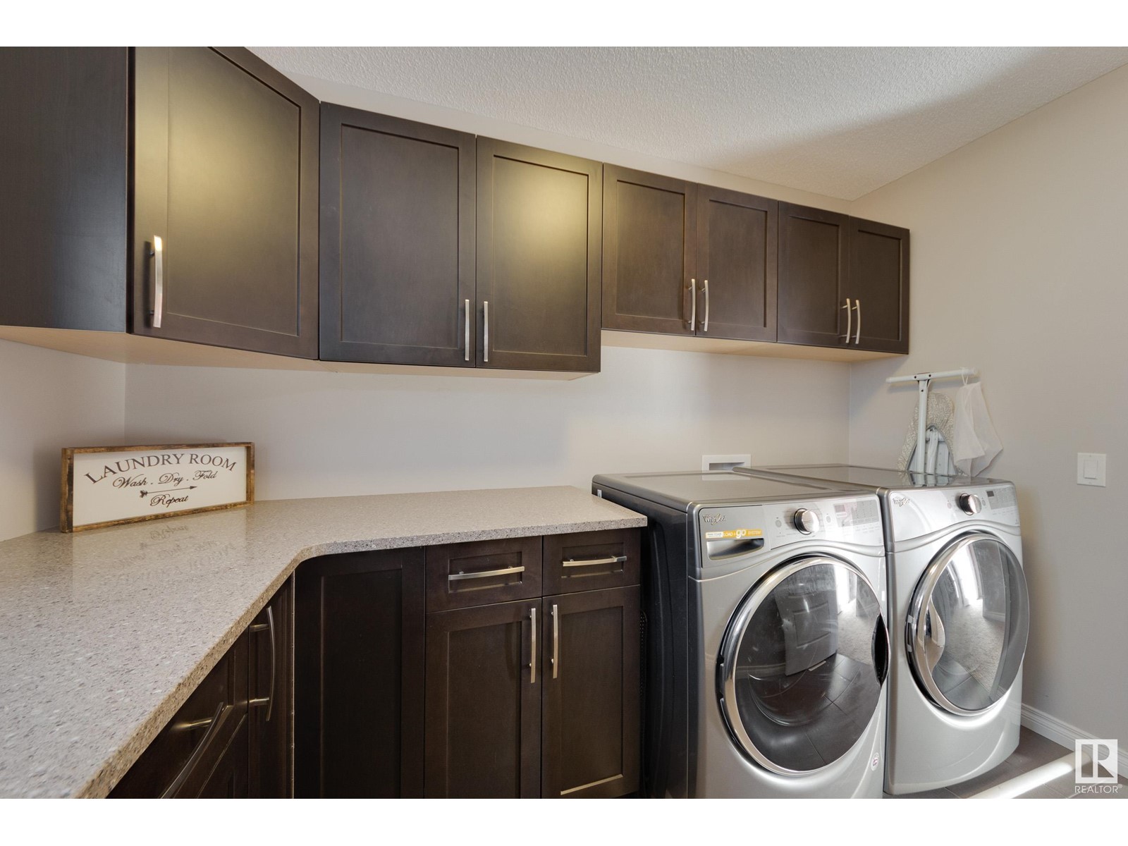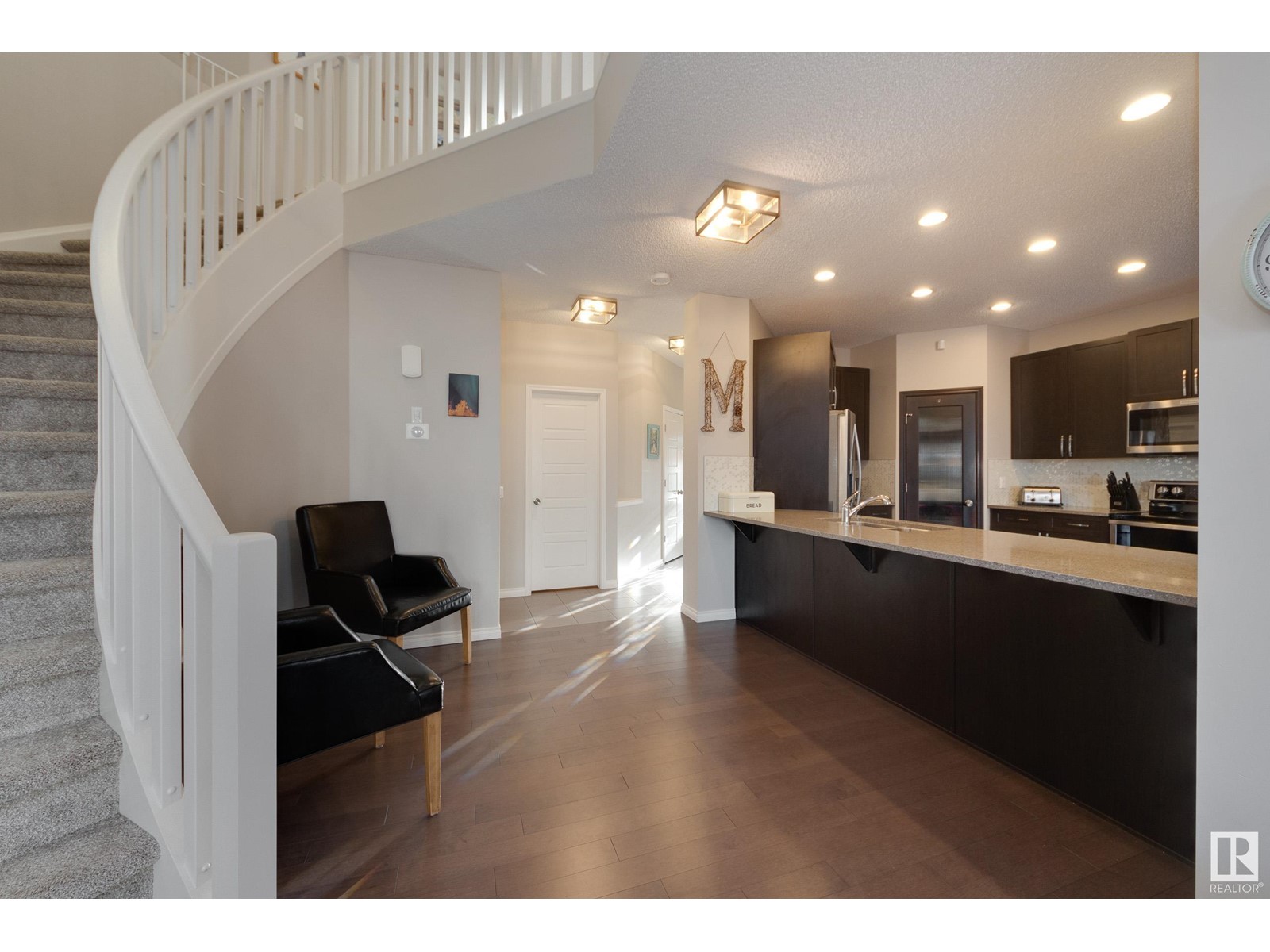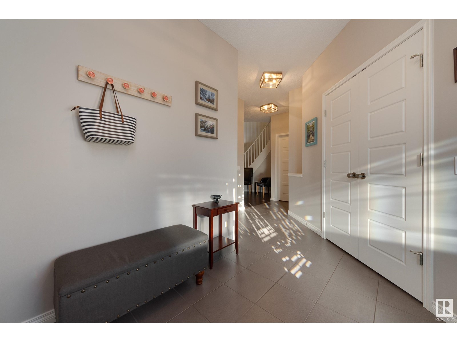 Nestled on a quiet street in the heart of St Albert, this stunning, move-in ready 2367 sq ft 3 bed, 3 bath family home w/central AC & fully fenced & landscaped yard awaits! Youll find 9ft ceilings, wide plank hardwood & upgraded lighting in the gorgeous open concept great room featuring a spacious living w/huge windows & natural gas fireplace & large dining room w/ double patio doors to access the two tier deck & gas BBQ hook up. The massive kitchen features s/steel appliances, ample cabinetry & corner pantry. Upgraded quartz countertops are found throughout the kitchen & baths. The elegant curved staircase leads you to the spacious & bright bonus room, oversized laundry room, 3 generously sized bedrooms, each with walk-in closets & a luxurious 5pce ensuite w/dual sinks. Walking distance to nature trails, the farmers market, parks & playgrounds, its central location makes it a 7 min drive from all amenities, major roads & Edmonton. Act today to own this impressive home in a family friendly & safe area! (id:22211)