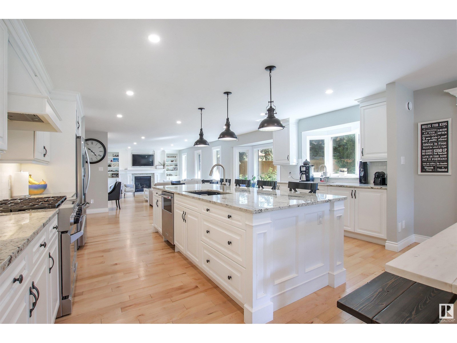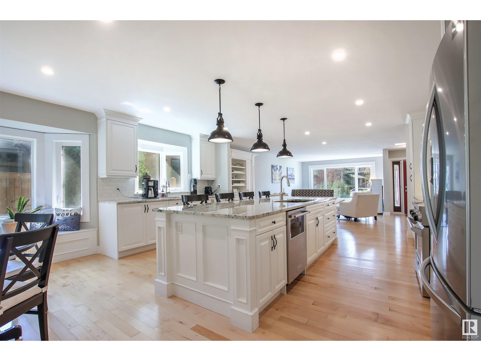 Picture Perfect in Pineview. This impressive 2200 Sqft, 5 bedroom, 3.5 bath bungalow is super renovated from top to bottom. From the entrance , the bright open concept main floor invites you to tour. To your right, the triple pane windows streams light into the living room, open to the dining nook. Like to entertain and cook? This is your kitchen, featuring a gas range, ample counter space, prep sink & more. With the open layout you can host the biggest gatherings with guests spilling into the family room & outdoor spaces with a convenient butlers panty close by. Down the hall into the primary suite you can rest enjoying your 5 piece ensuite. A massive laundry, 2 more bedrooms, 5 piece bath and mud room complete this level. The basement is the perfect space for your littles, and young at heart with a huge rec room, TV,vbedroom, and dont forget the play gym featuring a half pipe, climbing wall & more. The back yard affords you the privacy you deserve. Close to parks, & schools. Time to move to St Albert! (id:22211)