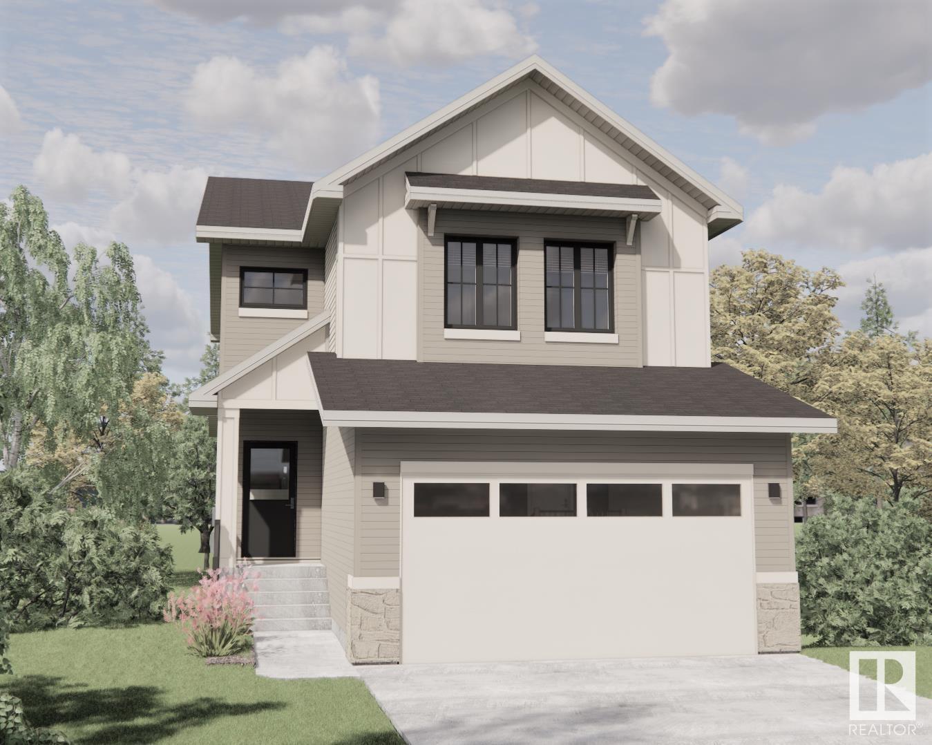Ripe for the picking in Riverside! The wait is over, stop the search! An exhilarating experience awaits as you step foot in this glorious 2255 sqft custom designed 2 Storey WALKOUT home backing on the Lake! There are delightful upgrades to the spec sheet on this one-of-a-kind property. It's drenched in curb appeal w/custom exterior cladding, stone accents and rich tones of color. It features 9' ceilings, wide plank hardwood, walk through mudroom pantry, quartz countertops, gas fireplace w/venetian plaster, an upper bonus room, a free-standing tub w/ stylized shower and glass surround, completely solar and EV ready, an in-house sound system, vinyl deck w/aluminum rail etc. This home is under construction. The photo is an artists rendering that the builder will bring to life! Colors and finishes may vary depending on builder or clients' selections. Riverside is home to acres of lush forest and countless walking trails. Just minutes away from Big Lake and Lois Hole Provincial Park!! (id:22211)