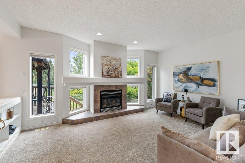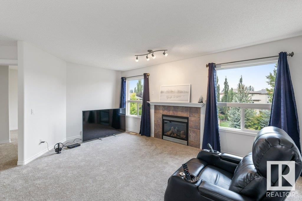 Offering 2201 sq. ft, this 4 bedroom 2 storey home with TRIPLE ATTACH HEATED GARAGE BACKING ONTO GREEN SPACE is like no other! Hardwood, new carpet & huge windows flood the open concept design with natural lighting. Enjoy family dinners & spending quality relaxing time together in the social living room with fireplace surrounded in windows! Experience an entertainers kitchen with a center island eating bar, stainless steel appliances, ample counter tops & beautiful maple cabinetry. Garden door access from the dinette to the amazing fully fenced yard with maintenance free deck, stone walks, shed, trees & shrubbery. Den/office, laundry and half bath round off the main. Upstairs to the bonus room with fireplace and FOUR bedrooms with the primary featuring a huge walk in closet and a relaxing 4 piece ensuite with walk in shower and soaker tub. A 4 piece main bath completes this level. The unspoiled basement is insulated and awaits your personal development design. A home that must be seen to be appreciated! (id:22211)