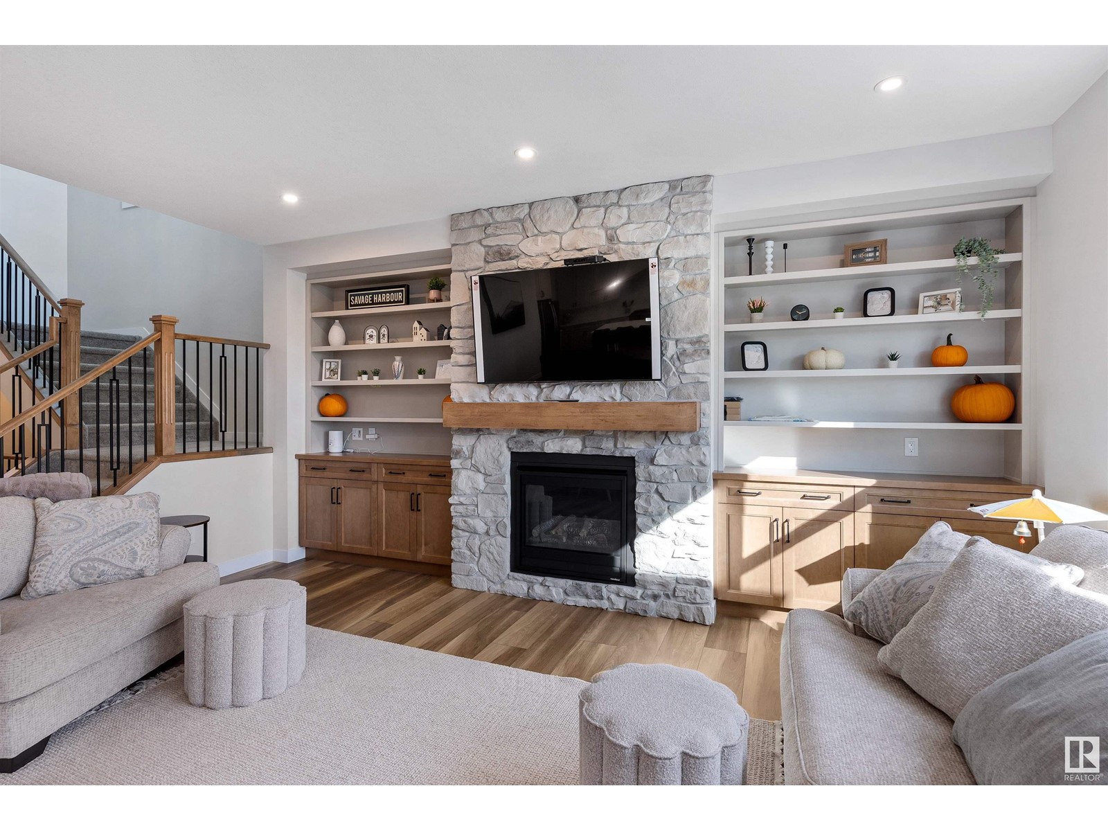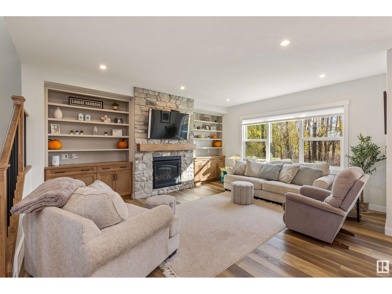 Welcome to this STUNNING FULLY FINISHED 2 storey home in Riverside Estates! Just off the entrance is a half bath & MAIN FLOOR DEN- perfect for a home office. The main living space is open concept- perfect for entertaining! The living room has a gorgeous gas f/p w/ custom built ins on either side & windows overlooking the yard. The kitchen has full height cabinetry, a 6 burner GAS RANGE, tile backsplash, eating bar island & a butler's pantry w/ room for a coffee bar! The 2nd floor features a bonus room, 3 large bedrooms, a 5pce ensuite & 5pce main bathroom. The primary bedroom has a walk in closet & access to the SECOND FLOOR LAUNDRY ROOM! The spacious basement has pot lighting, a 2nd fireplace, 4th bedroom & a 3pce bathroom! A covered back deck, triple attached HEATED GARAGE and central a/c complete this home! This property is priced below replacement cost, BACKS TREES/GREEN SPACE & is roughed in for a hot tub. (id:22211)