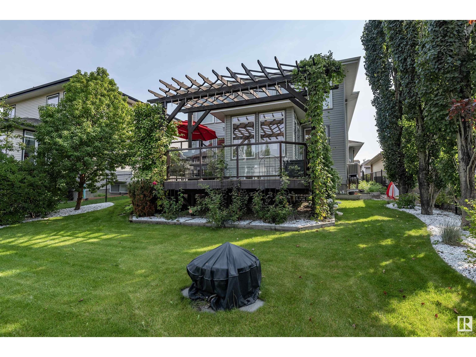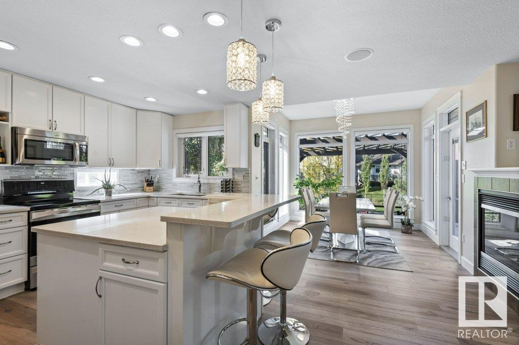 Welcome home to the family friendly community of North Ridge. This home offers more than 3400sqft of living space on 3 levels & is backing onto a serene walking path for extra privacy. The 3rd garage bay has been converted into a home office w exterior access, currently used for a law office & all office furniture is included. You're greeted by the beautiful living room with tall windows, built-in cabinets and 3 way fireplace. The large kitchen has been extensively remodeled with new quartz countertops & backsplash and offers ample cabinet space with a corner pantry. The bright and airy dining area has room for your large family gatherings. Upstairs there are 2 bedrooms with spacious 4pc bath as well as the Owners Suite with a luxurious Ensuite. In addition to a private Bonus Room with double doors there is a play room/loft also. The fully finished basement offers high windows, large rec room and a 3pc bath. Enjoy the 2tier composite deck and professionally landscaped yard, steps away from the pond. (id:22211)