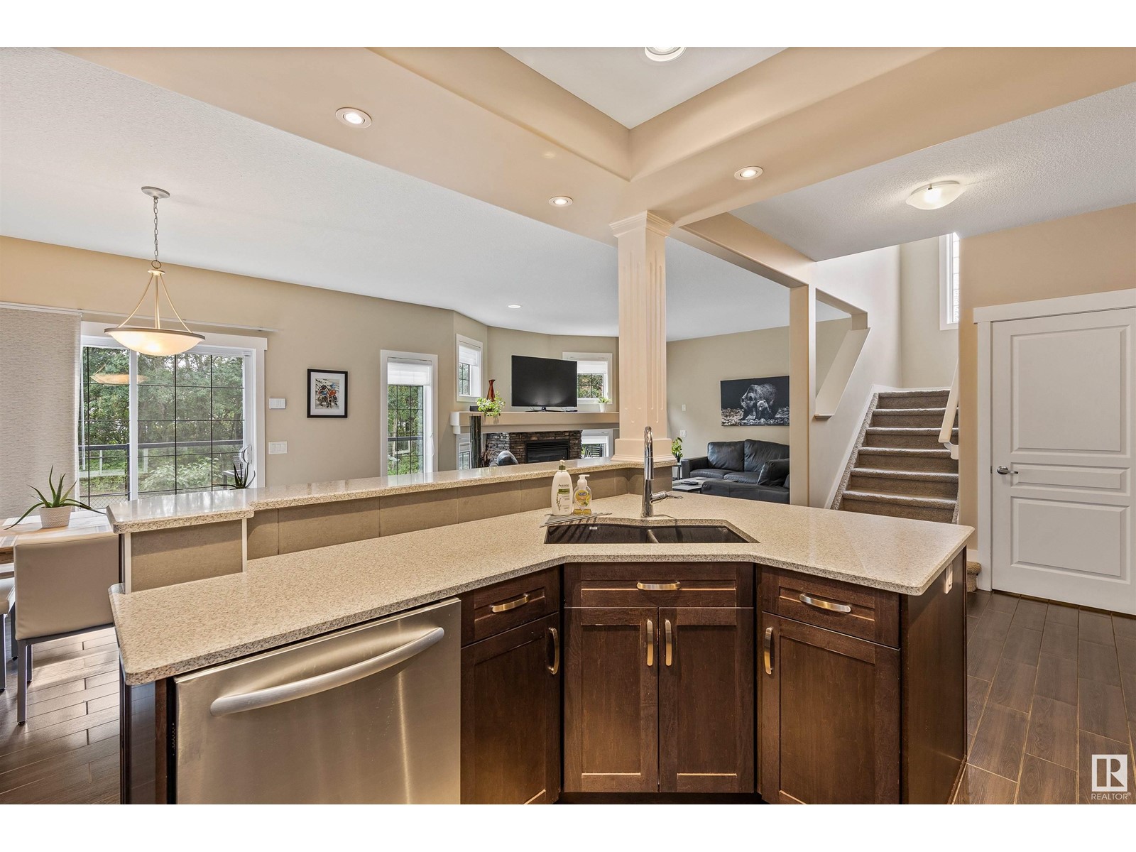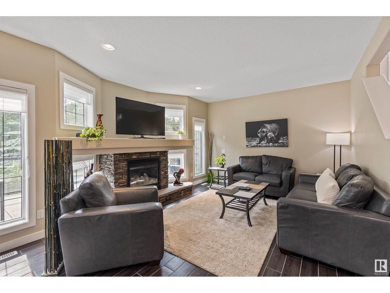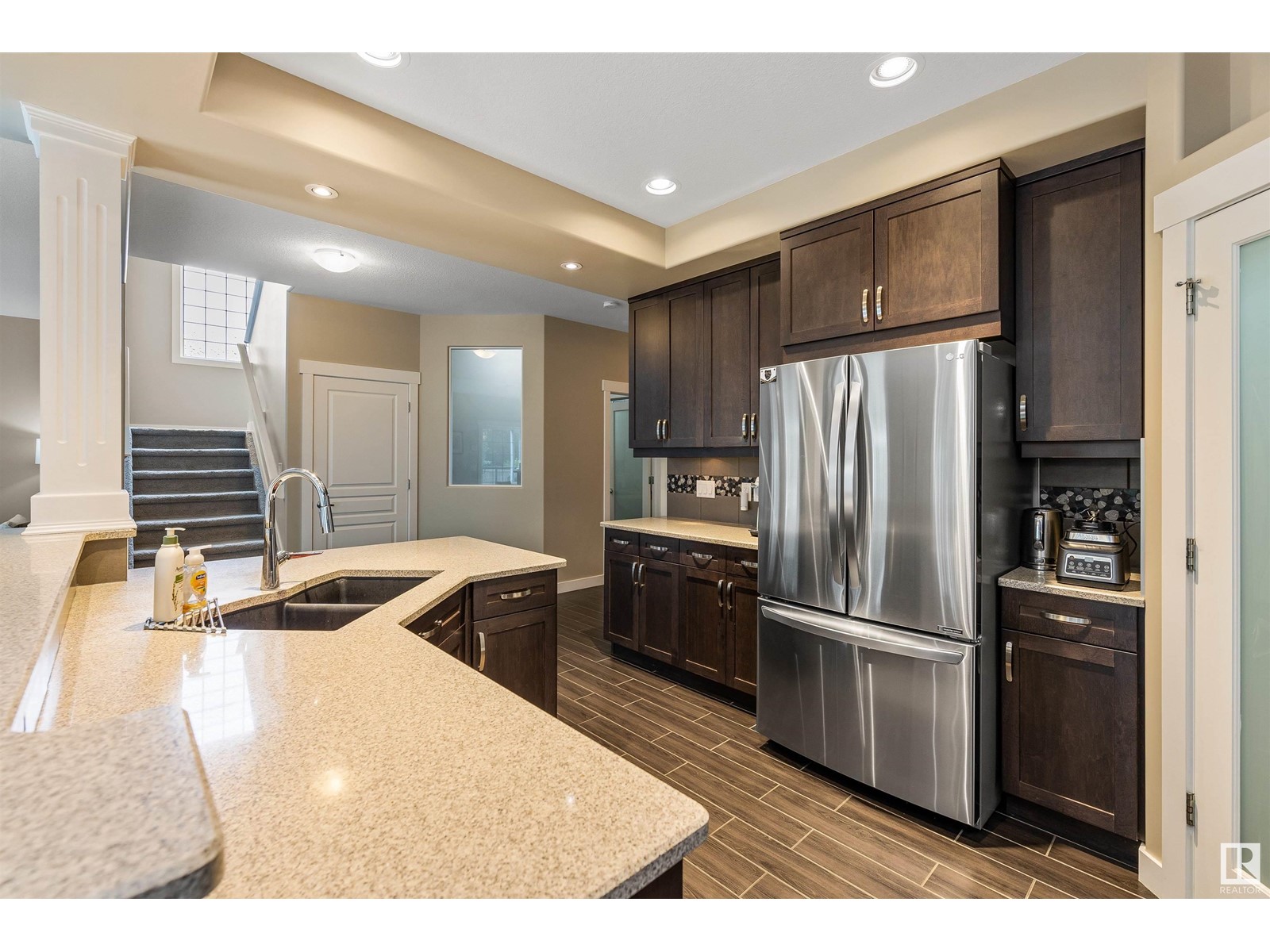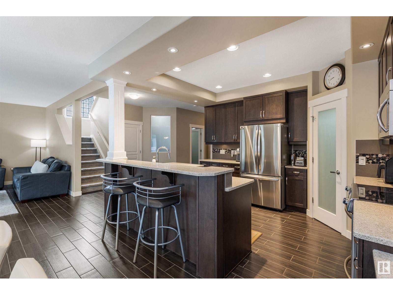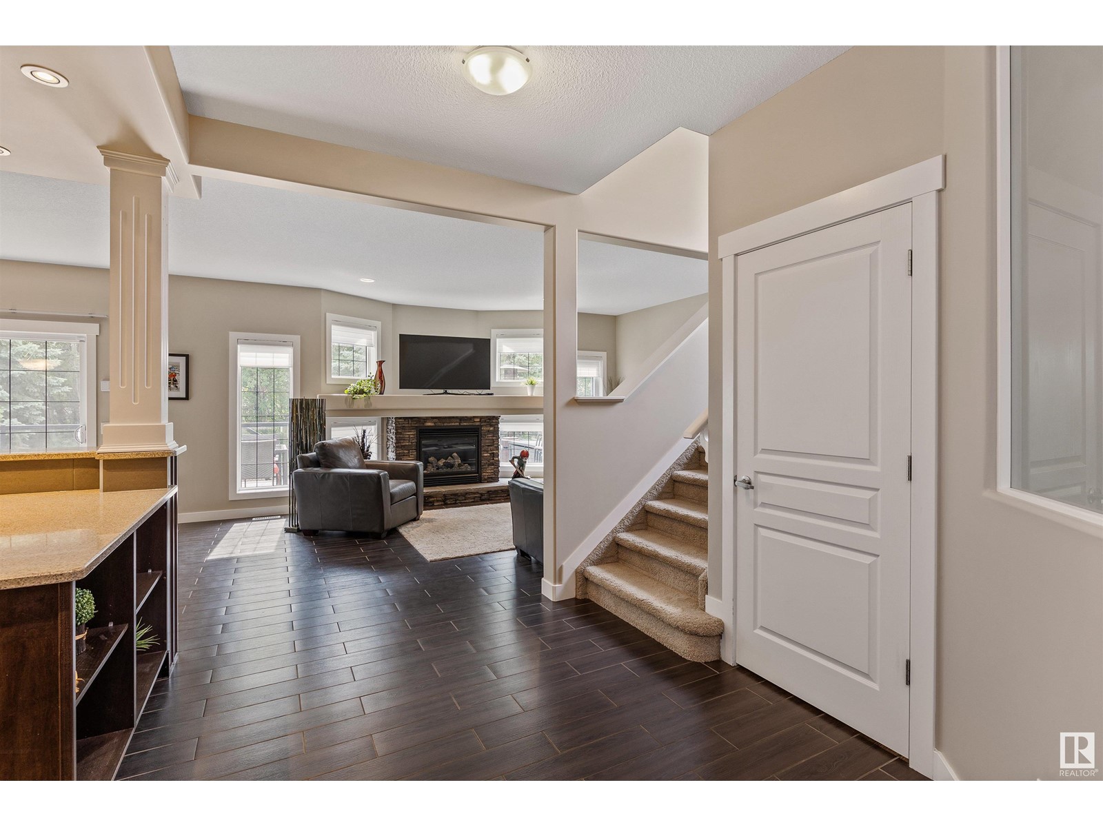 Discover this exceptional 2 storey located on a private crescent backing a GREEN SPACE. This Daytona built home has beautiful exposed aggregate concrete leading up to the covered front entrance. The foyer opens to an office w/ frosted glass French door. Tile flooring leads through the OPEN DESIGN, perfect for busy families & pets. The kitchen has QUARTZ counters, s/s appliances, large eating bar island, corner pantry, tile backsplash & pot/pan drawers. The eating nook has access to the maintenance free back deck. The living room has a gas f/p. 9' ceilings go through the main floor, which is completed w/ a large entrance to the garage, next to a 2pce bath. The 2nd floor has 3 large bedrooms, a 4pce bath, bonus room, LAUNDRY ROOM & a 4pce ensuite. The primary suite has large windows, vaulted ceilings & a large walk in closet. The ensuite has a corner jetted tub & a glass shower. The basement is fully finished w/ a 4th bedroom, 3pce bath, mech/storage room & a large family room w/ a bar! (id:22211)