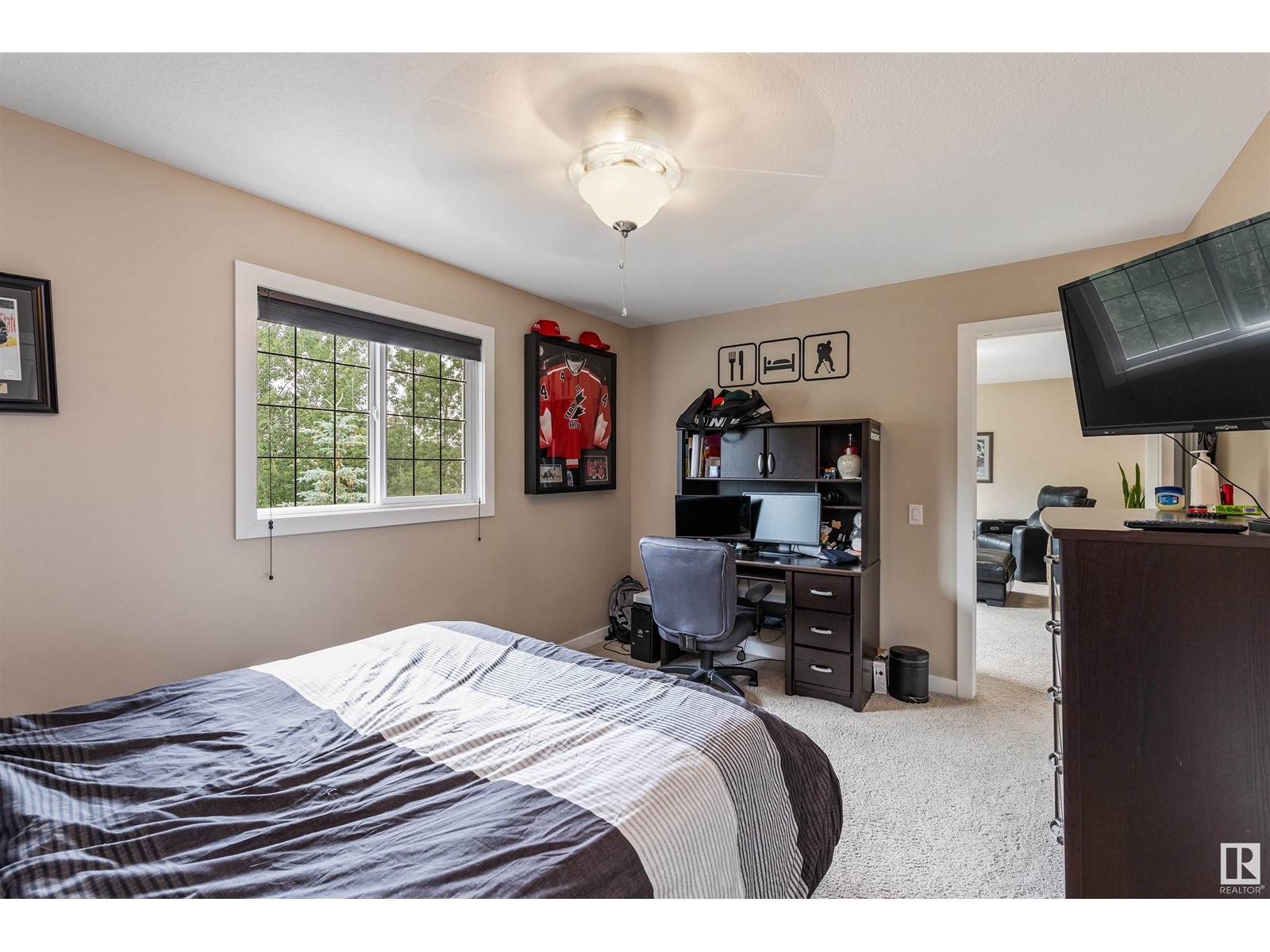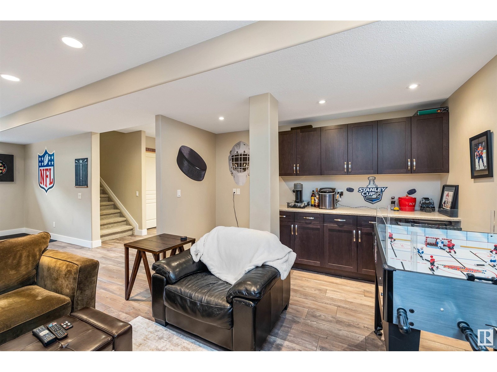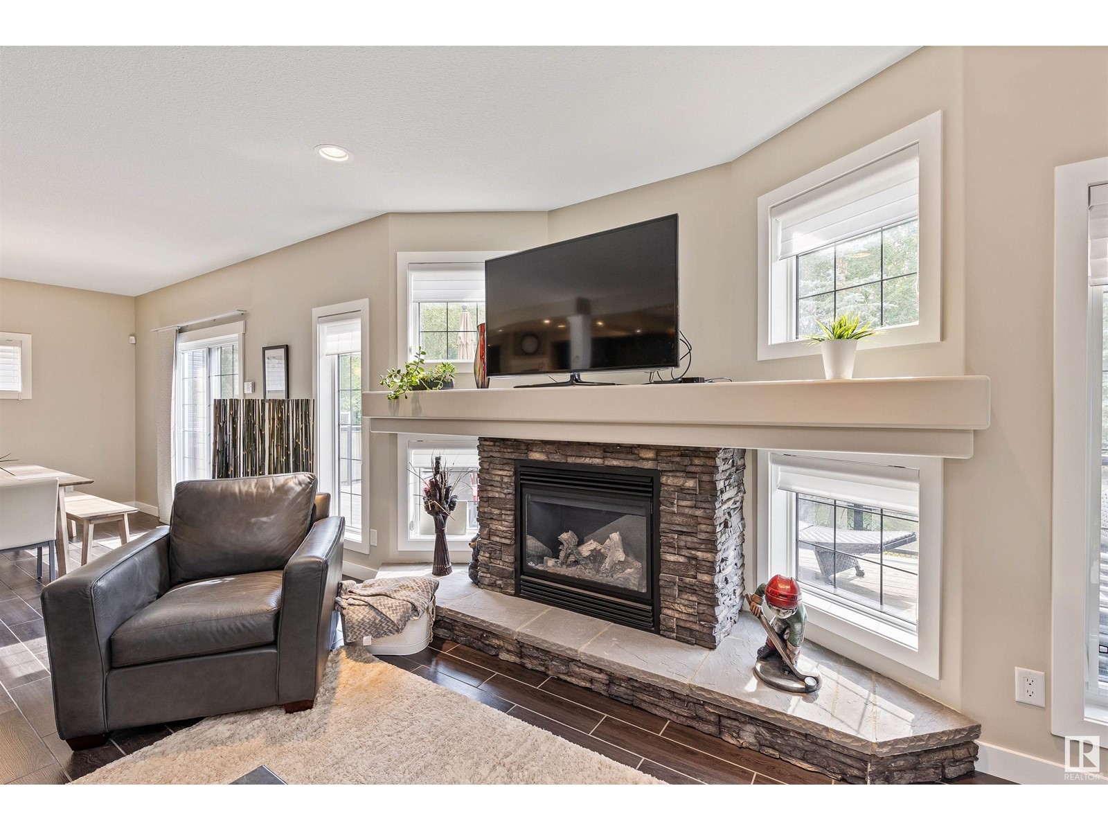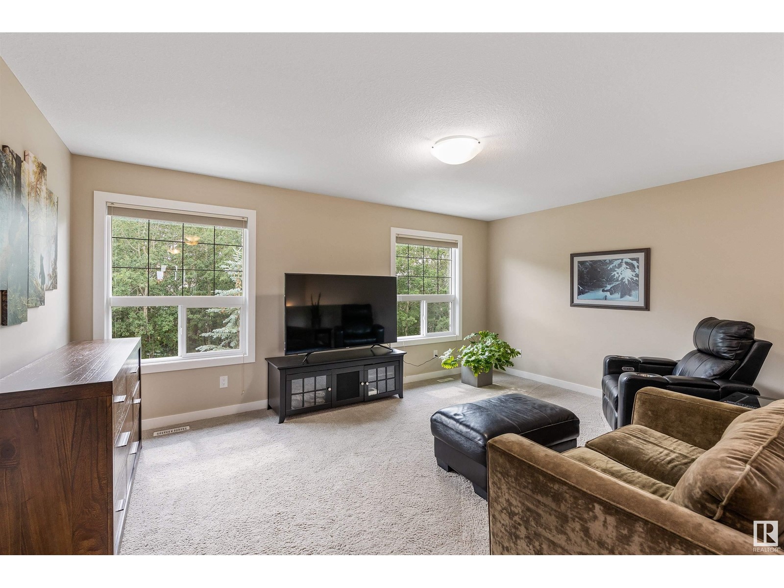 Discover this exceptional 2 storey located on a private crescent backing a GREEN SPACE. This Daytona built home has beautiful exposed aggregate concrete leading up to the covered front entrance. The foyer opens to an office w/ frosted glass French door. Tile flooring leads through the OPEN DESIGN, perfect for busy families & pets. The kitchen has QUARTZ counters, s/s appliances, large eating bar island, corner pantry, tile backsplash & pot/pan drawers. The eating nook has access to the maintenance free back deck. The living room has a gas f/p. 9' ceilings go through the main floor, which is completed w/ a large entrance to the garage, next to a 2pce bath. The 2nd floor has 3 large bedrooms, a 4pce bath, bonus room, LAUNDRY ROOM & a 4pce ensuite. The primary suite has large windows, vaulted ceilings & a large walk in closet. The ensuite has a corner jetted tub & a glass shower. The basement is fully finished w/ a 4th bedroom, 3pce bath, mech/storage room & a large family room w/ a bar! (id:22211)