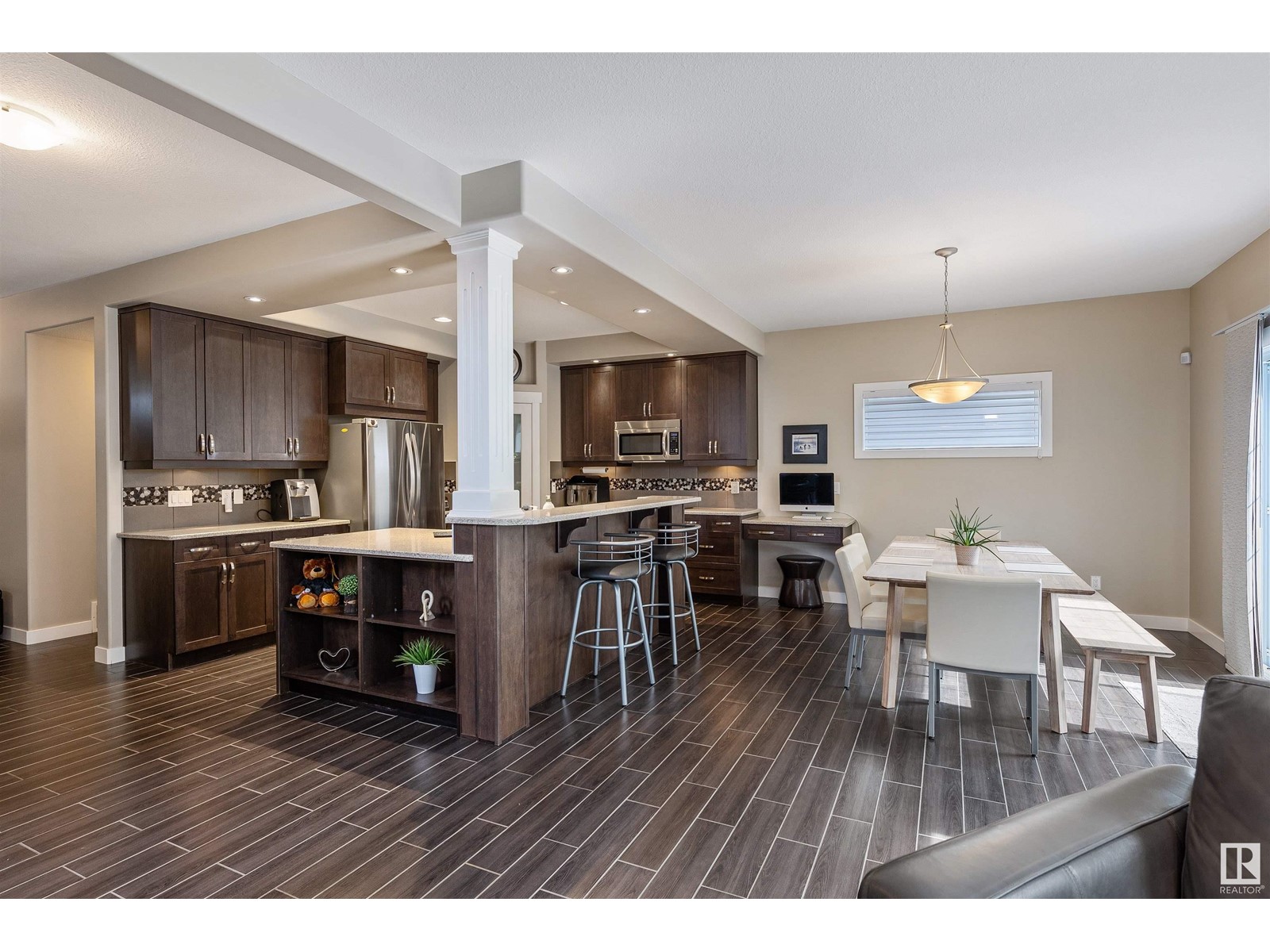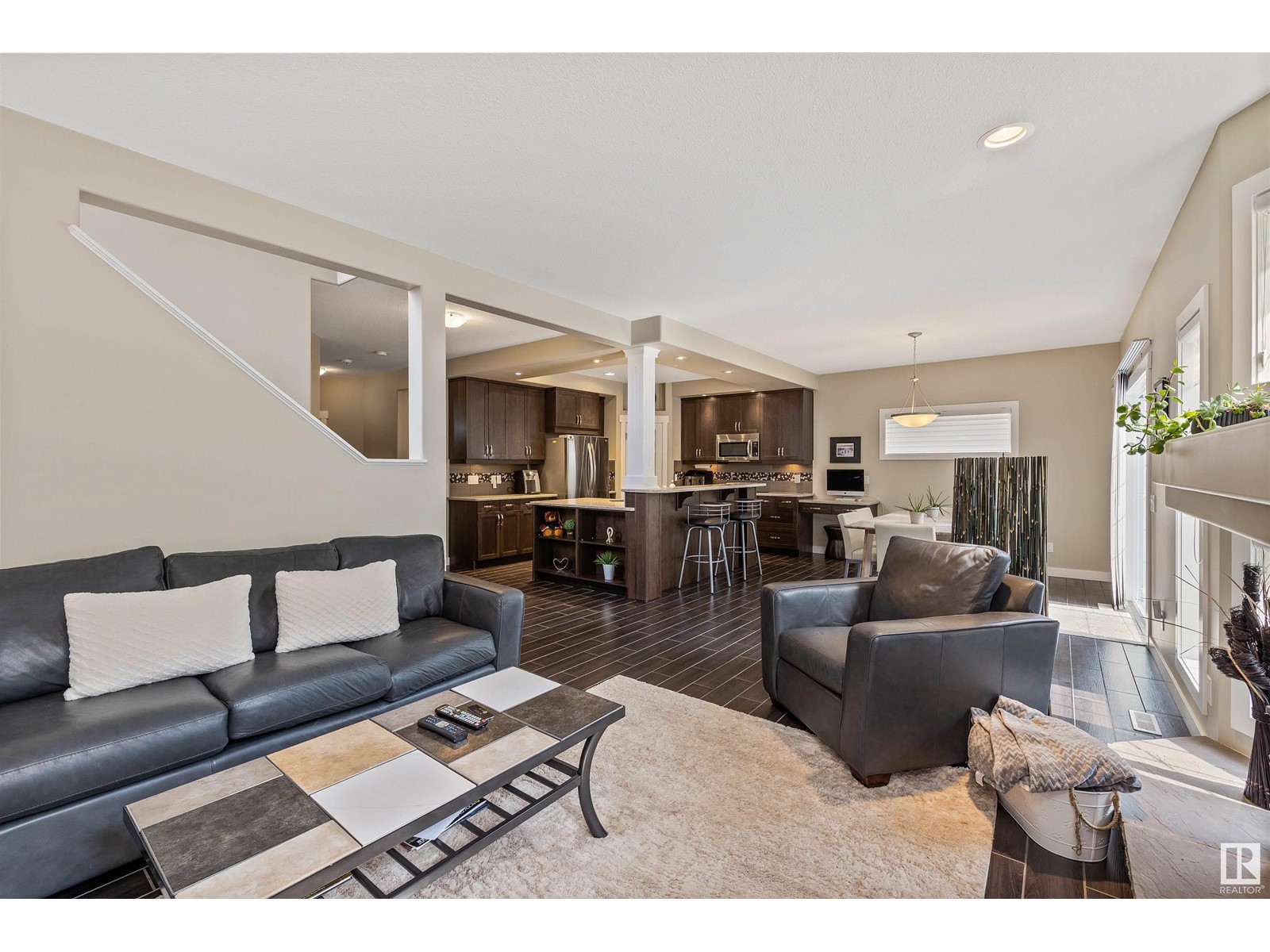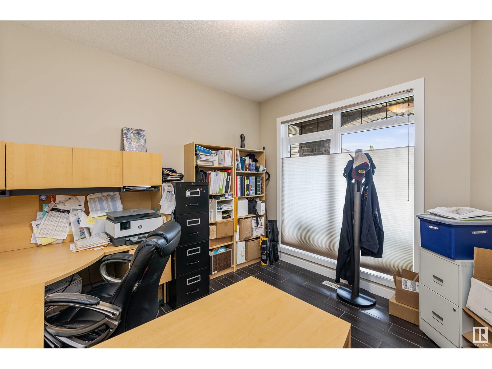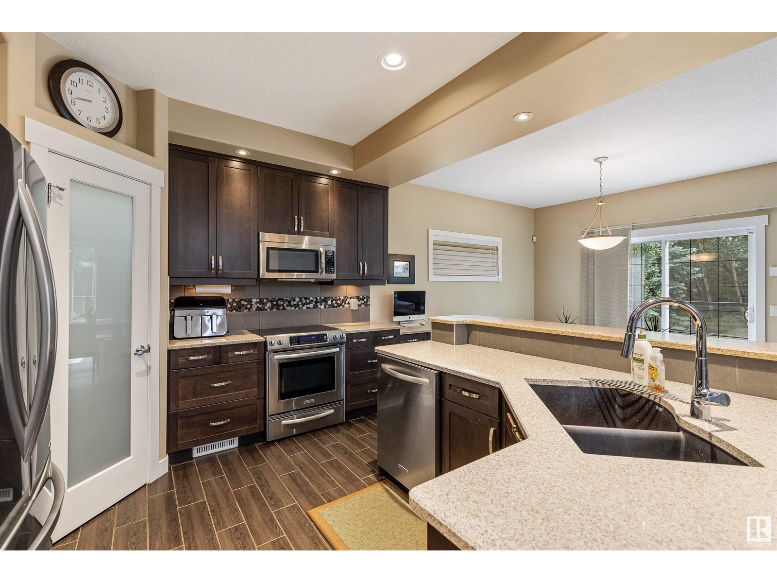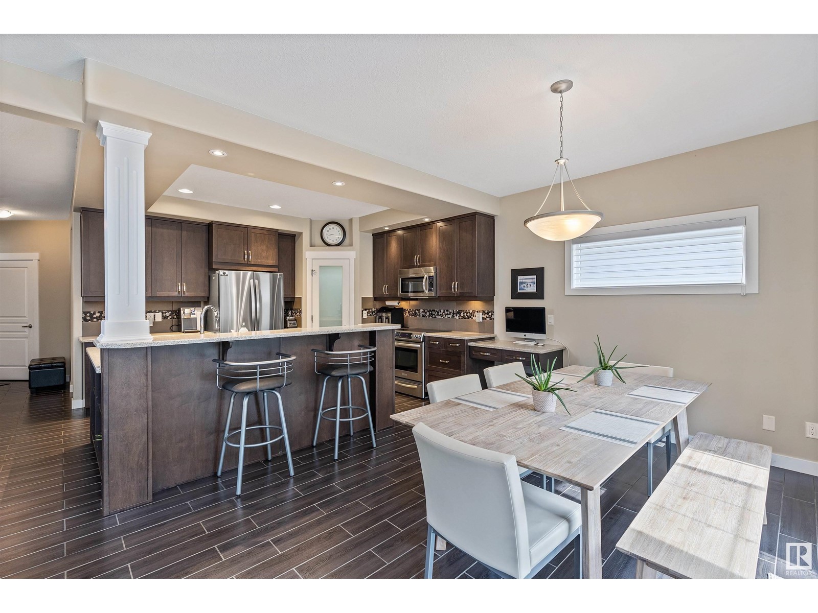 Discover this exceptional 2 storey located on a private crescent backing a GREEN SPACE. This Daytona built home has beautiful exposed aggregate concrete leading up to the covered front entrance. The foyer opens to an office w/ frosted glass French door. Tile flooring leads through the OPEN DESIGN, perfect for busy families & pets. The kitchen has QUARTZ counters, s/s appliances, large eating bar island, corner pantry, tile backsplash & pot/pan drawers. The eating nook has access to the maintenance free back deck. The living room has a gas f/p. 9' ceilings go through the main floor, which is completed w/ a large entrance to the garage, next to a 2pce bath. The 2nd floor has 3 large bedrooms, a 4pce bath, bonus room, LAUNDRY ROOM & a 4pce ensuite. The primary suite has large windows, vaulted ceilings & a large walk in closet. The ensuite has a corner jetted tub & a glass shower. The basement is fully finished w/ a 4th bedroom, 3pce bath, mech/storage room & a large family room w/ a bar! (id:22211)
