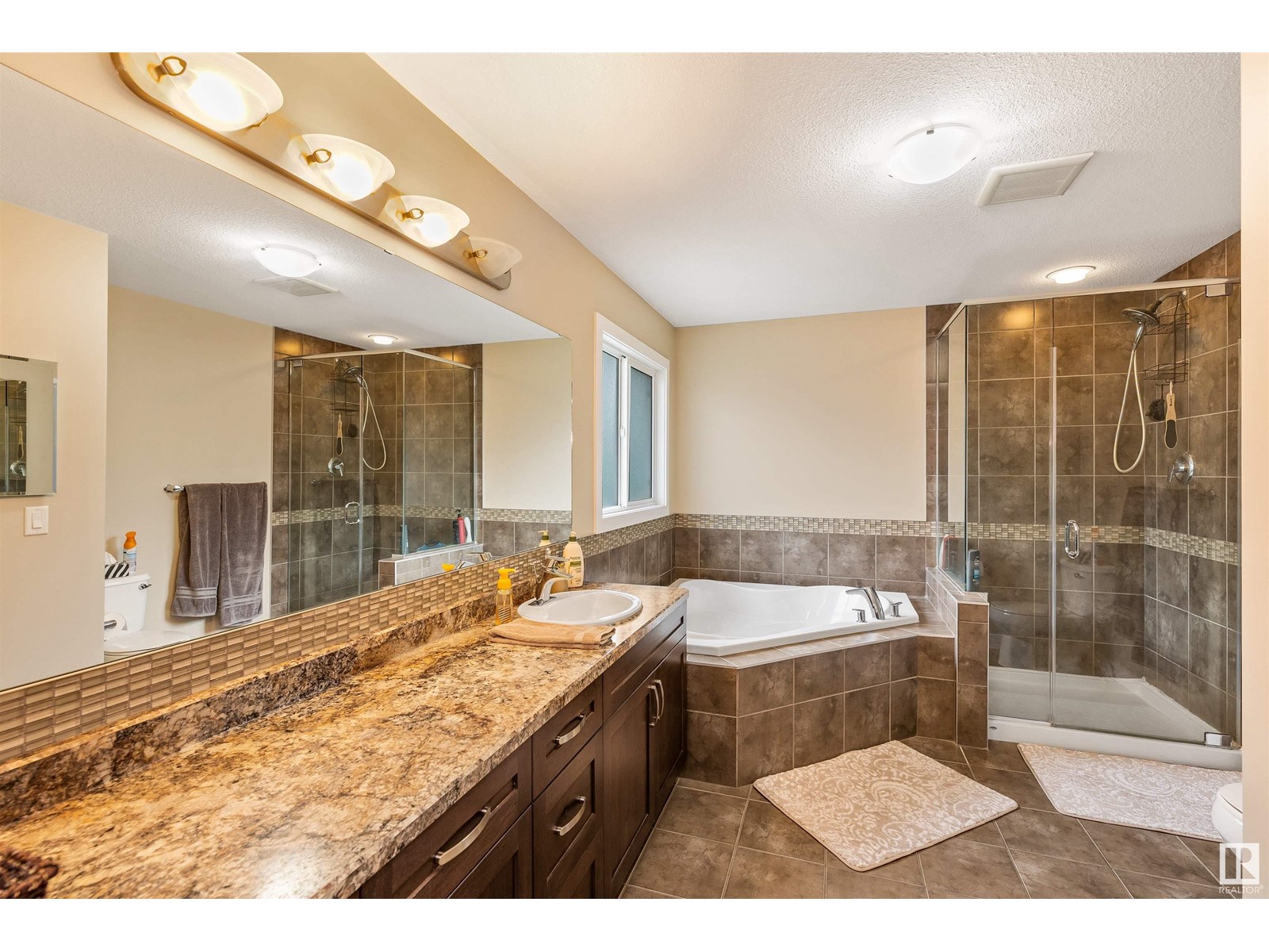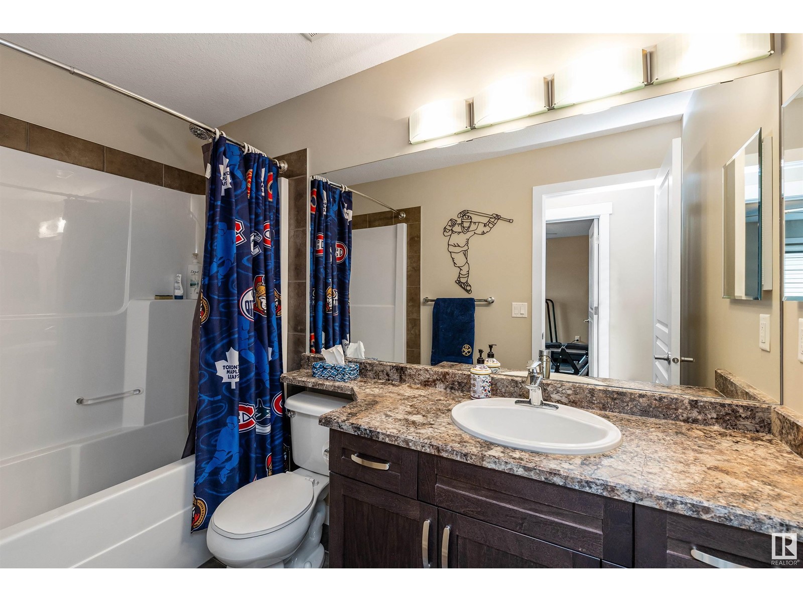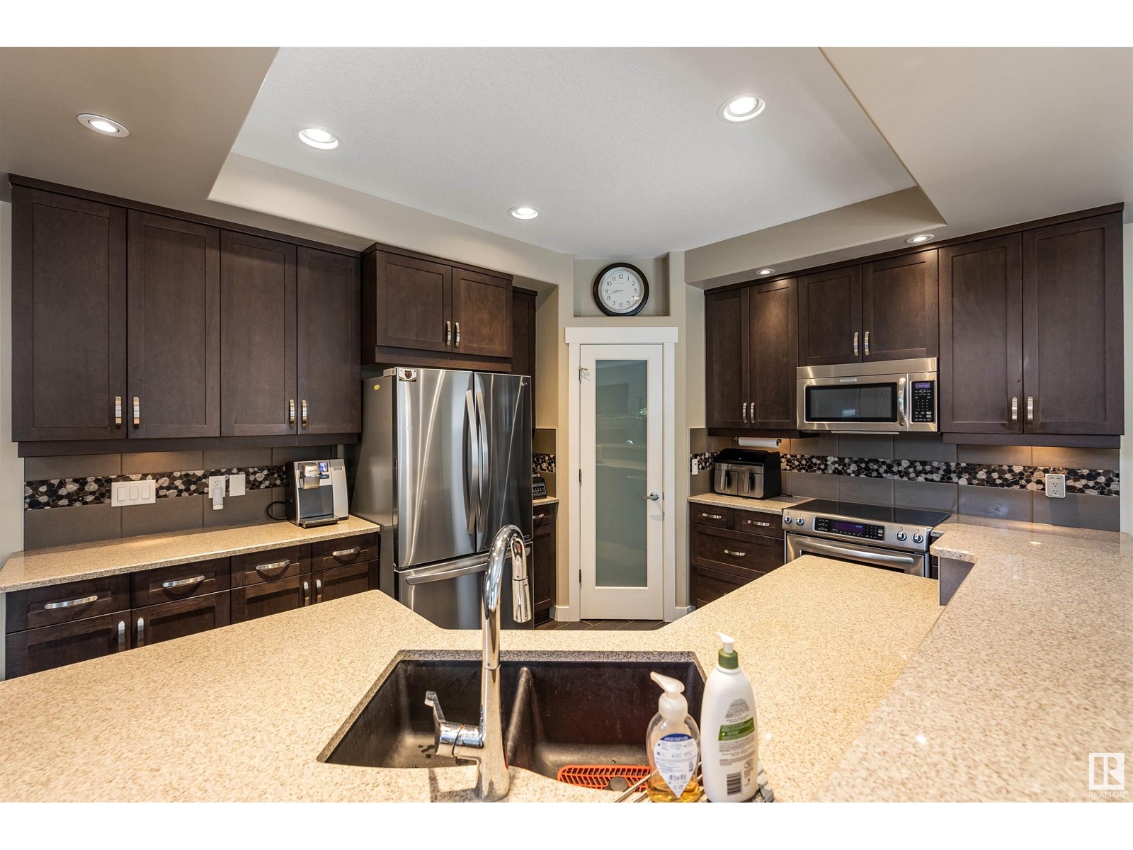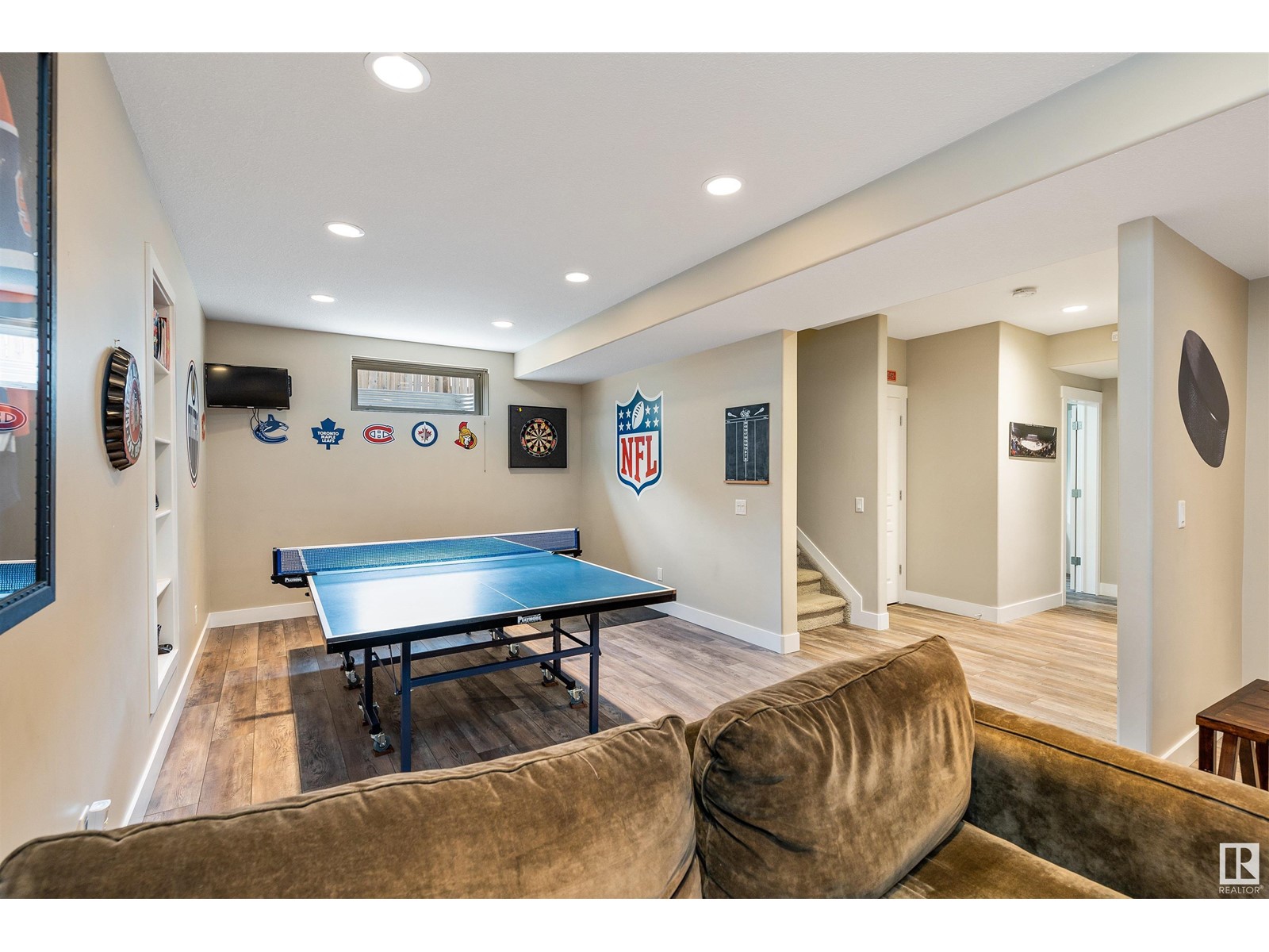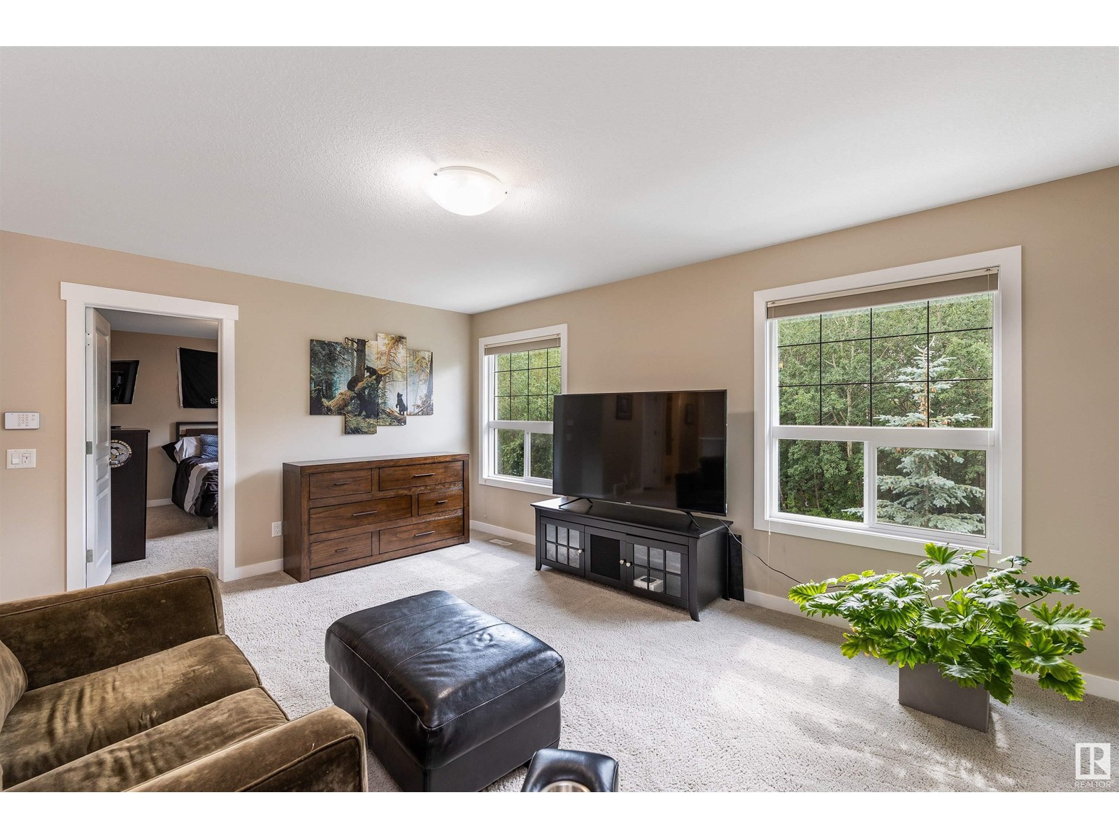 Discover this exceptional 2 storey located on a private crescent backing a GREEN SPACE. This Daytona built home has beautiful exposed aggregate concrete leading up to the covered front entrance. The foyer opens to an office w/ frosted glass French door. Tile flooring leads through the OPEN DESIGN, perfect for busy families & pets. The kitchen has QUARTZ counters, s/s appliances, large eating bar island, corner pantry, tile backsplash & pot/pan drawers. The eating nook has access to the maintenance free back deck. The living room has a gas f/p. 9' ceilings go through the main floor, which is completed w/ a large entrance to the garage, next to a 2pce bath. The 2nd floor has 3 large bedrooms, a 4pce bath, bonus room, LAUNDRY ROOM & a 4pce ensuite. The primary suite has large windows, vaulted ceilings & a large walk in closet. The ensuite has a corner jetted tub & a glass shower. The basement is fully finished w/ a 4th bedroom, 3pce bath, mech/storage room & a large family room w/ a bar! (id:22211)