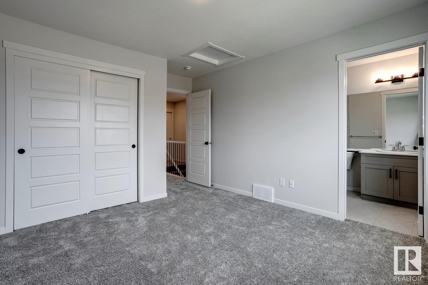 Welcome to your brand new 2 storey home in the desirable neighbourhood of Riverside in St. Albert This l3 bedroom, 2.5 bath property comes with beautiful finishing. The main floor is sure to impress with a modern vinyl plank throughout the OPEN CONCEPT layout. The living room is spacious and bright. The kitchen is gorgeous with QUARTZ COUNTERTOPS and STAINLESS STEEL APPLIANCES. Upstairs you will find 3 bedrooms with and the laundry room. The large primary bedroom is bright and inviting with WALK-IN CLOSET and 4-piece ENSUITE. Great location, easy access to walking trails, shopping, the Anthony Henday and more! (id:22211)