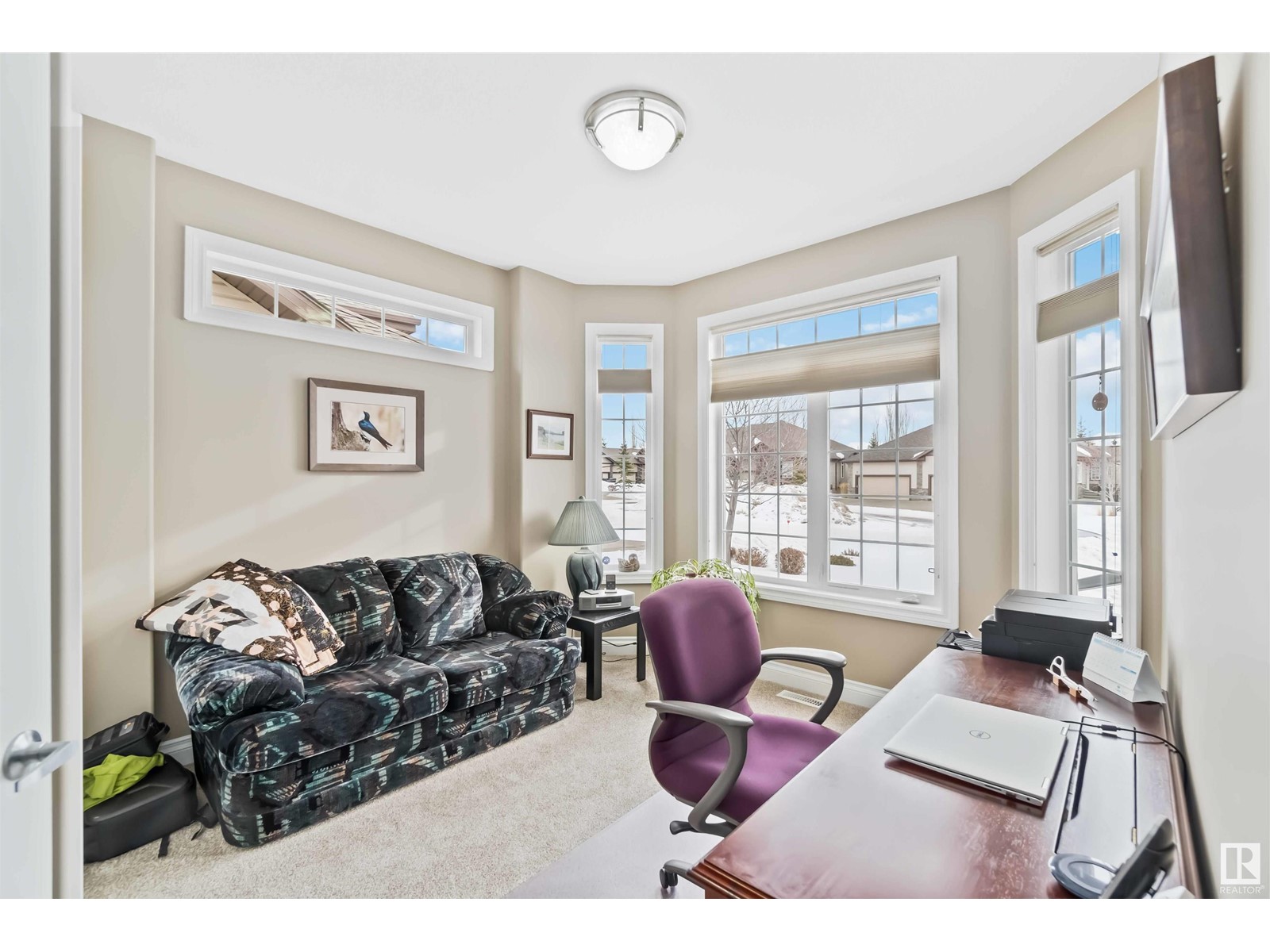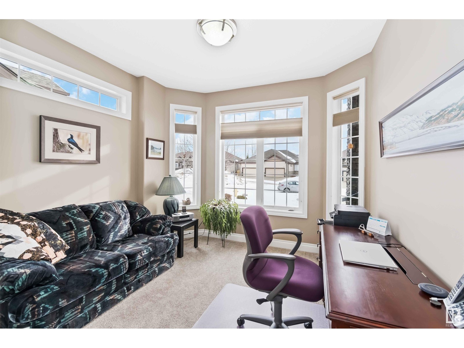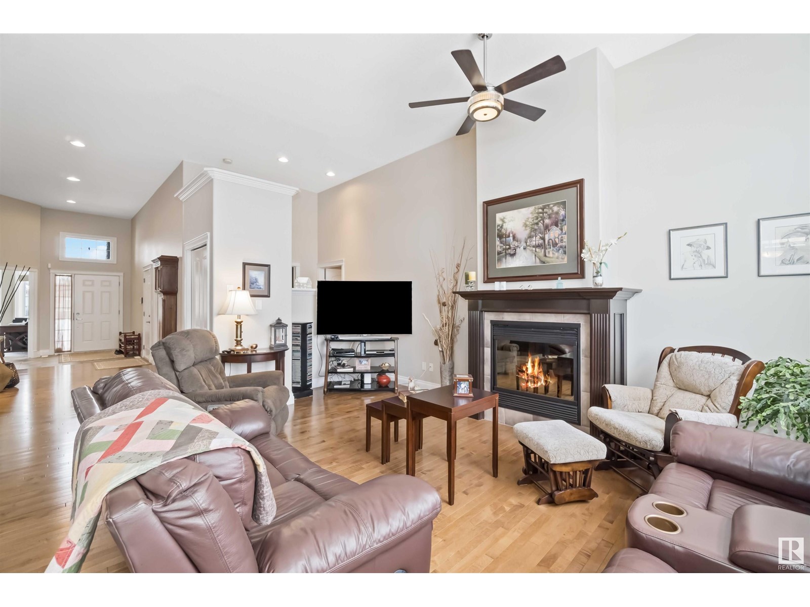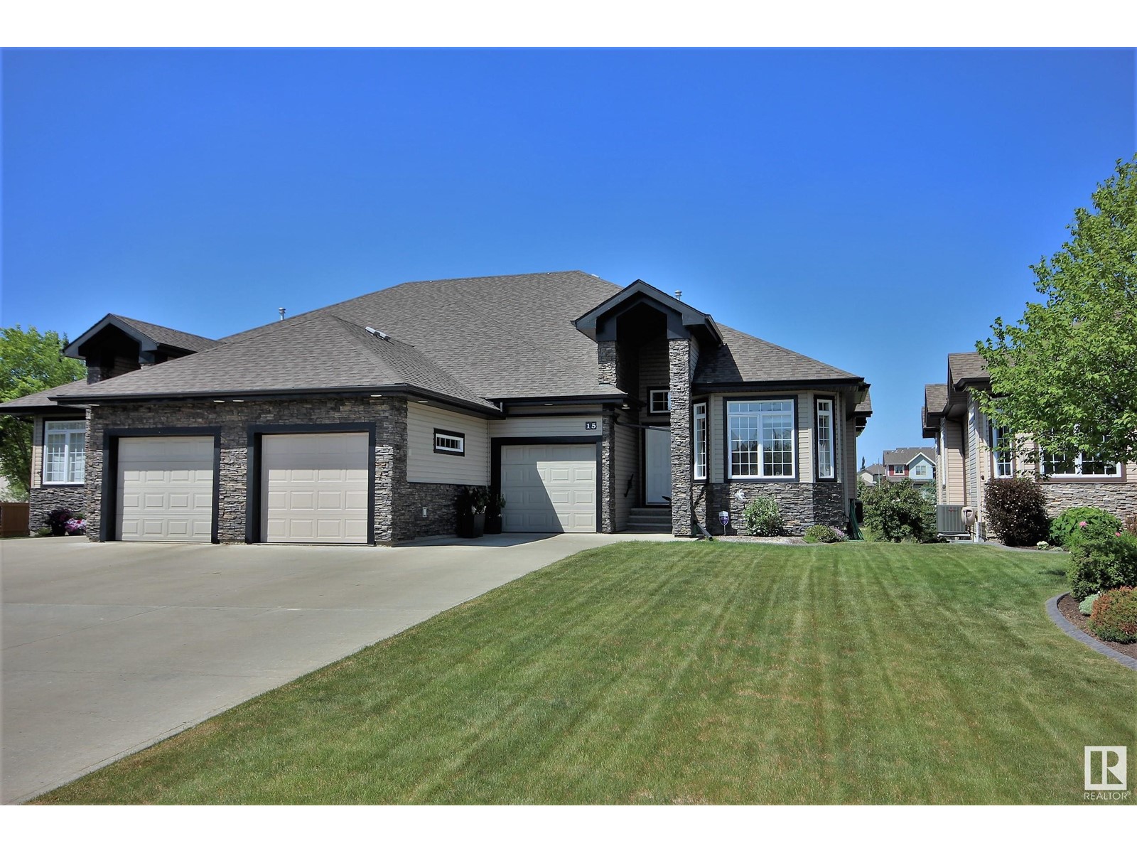 RETIREMENT GOALS fulfilled in this WALKOUT BUNGALOW, Backing onto LAKE AND TRAILS with a TRIPLE GARAGE. Enjoy life living in this 55+ condo in North Ridge St.Albert. ORIGINAL OWNERS have loved this property and it shows! SOARING CEILINGS greet you as you enter with a front office that could be a bedroom. FORMAL DINING ROOM with a spot for the hutch. Great room is FILLED WITH NATURAL LIGHT from the wall of windows. CUSTOM KITCHEN with Pull out drawers, corner pantry, SS Appliances and Room to Work. DINETTE WITH A VIEW at every meal. Maintenance free deck to ENJOY YOUR SUNSETS. Living room with GAS FIREPLACE and hardwood floors that flow throughout. MAIN FLOOR LAUNDRY room with extra storage. PRIMARY SUITE WITH FIREPLACE PLUS A VIEW! Custom cabinets in closet and a full ensuite. Walkout BASEMENT IS FULLY DEVELOPED with 2 more bedrooms, an office, Plus the REC ROOM FULL OF WINDOWS is spacious. GARAGE IS HEATED with floor drains and extra power. NEW FURNACE, Washer & Dryer. RARE OPPORTUNITY WONT LAST. (id:22211)