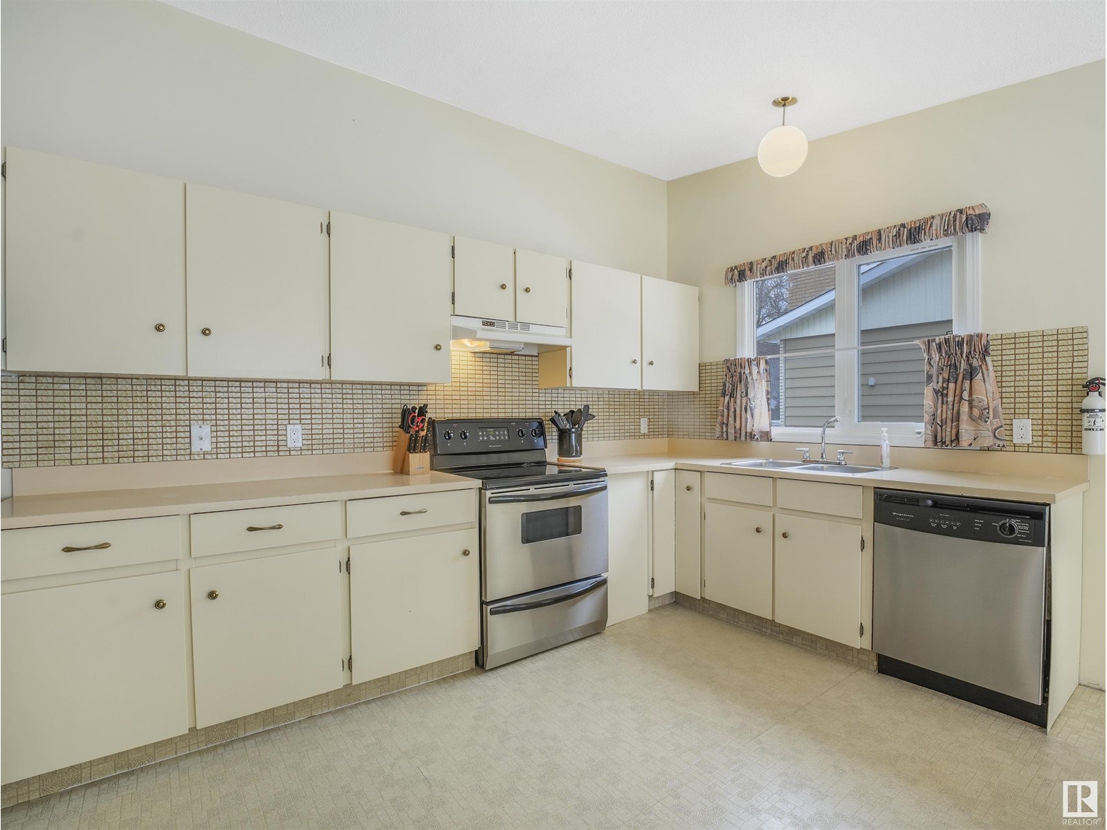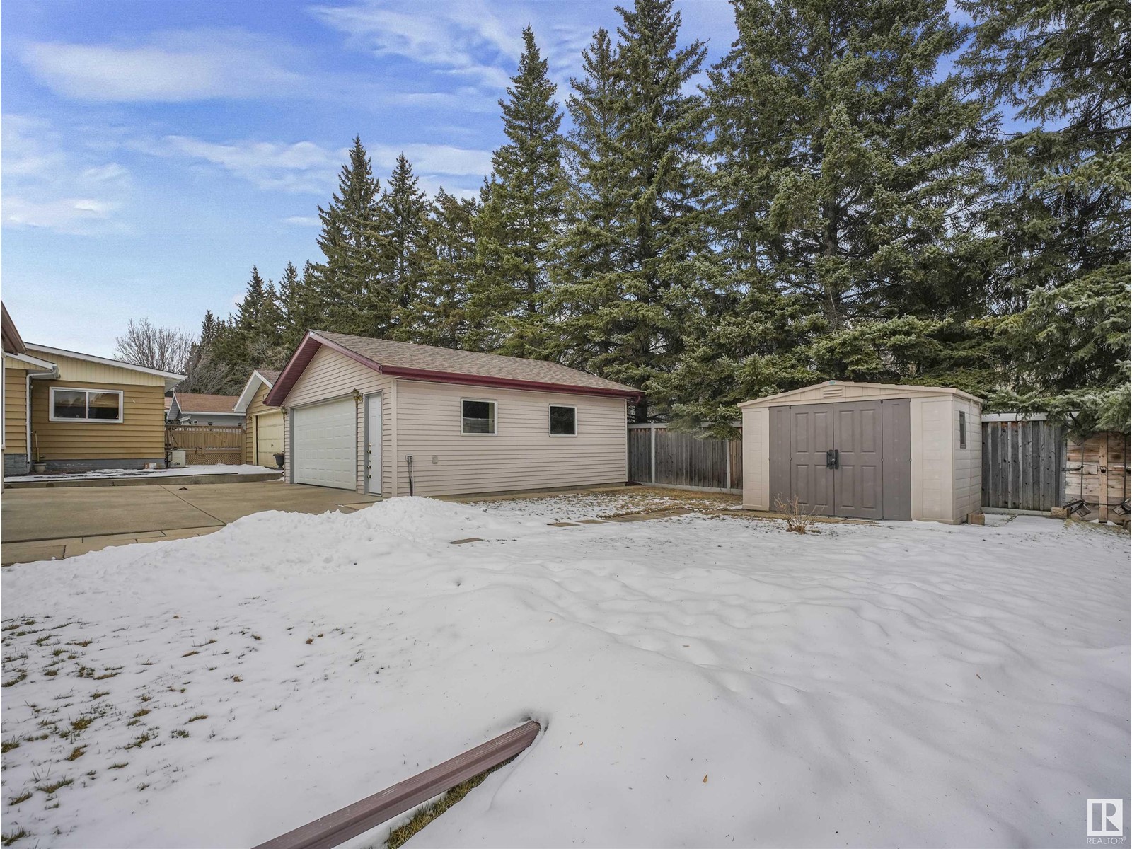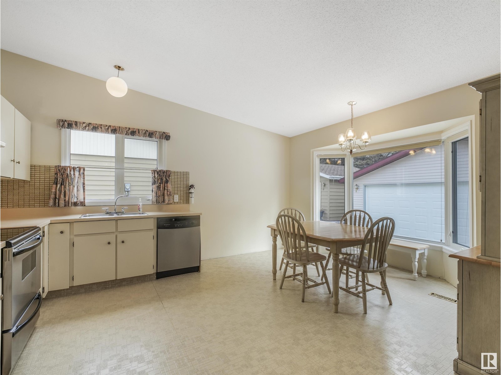 This well kept bungalow offers a spacious layout with three bedrooms upstairs and two downstairs, ideal for a growing family or multi-generational living. Featuring 1.5 bathrooms, this well-maintained home boasts newer triple pane windows, updated shingles, ensuring modern comfort. The heart of the home lies in its large, bright country kitchen with a family-sized dining area, complemented by vaulted ceilings in both the kitchen and living room, creating an airy and inviting ambiance. Outside, the property is beautifully landscaped, providing privacy and tranquility. Additional highlights include an oversized double garage and a finished basement with separate back entrance, adding versatility and convenience to this desirable residence. Don't miss the opportunity to call this your home in sought-after St. Albert. (id:22211)