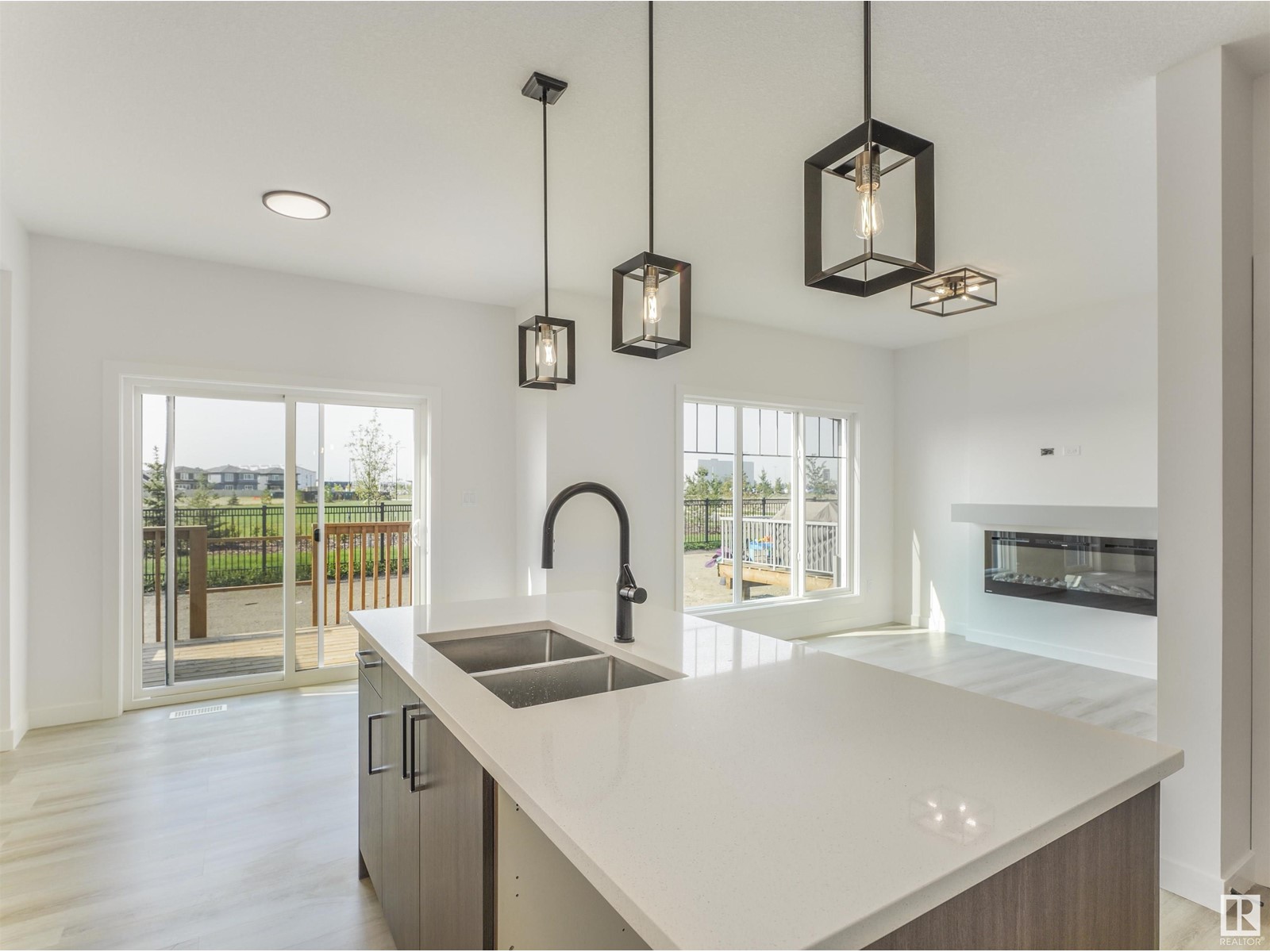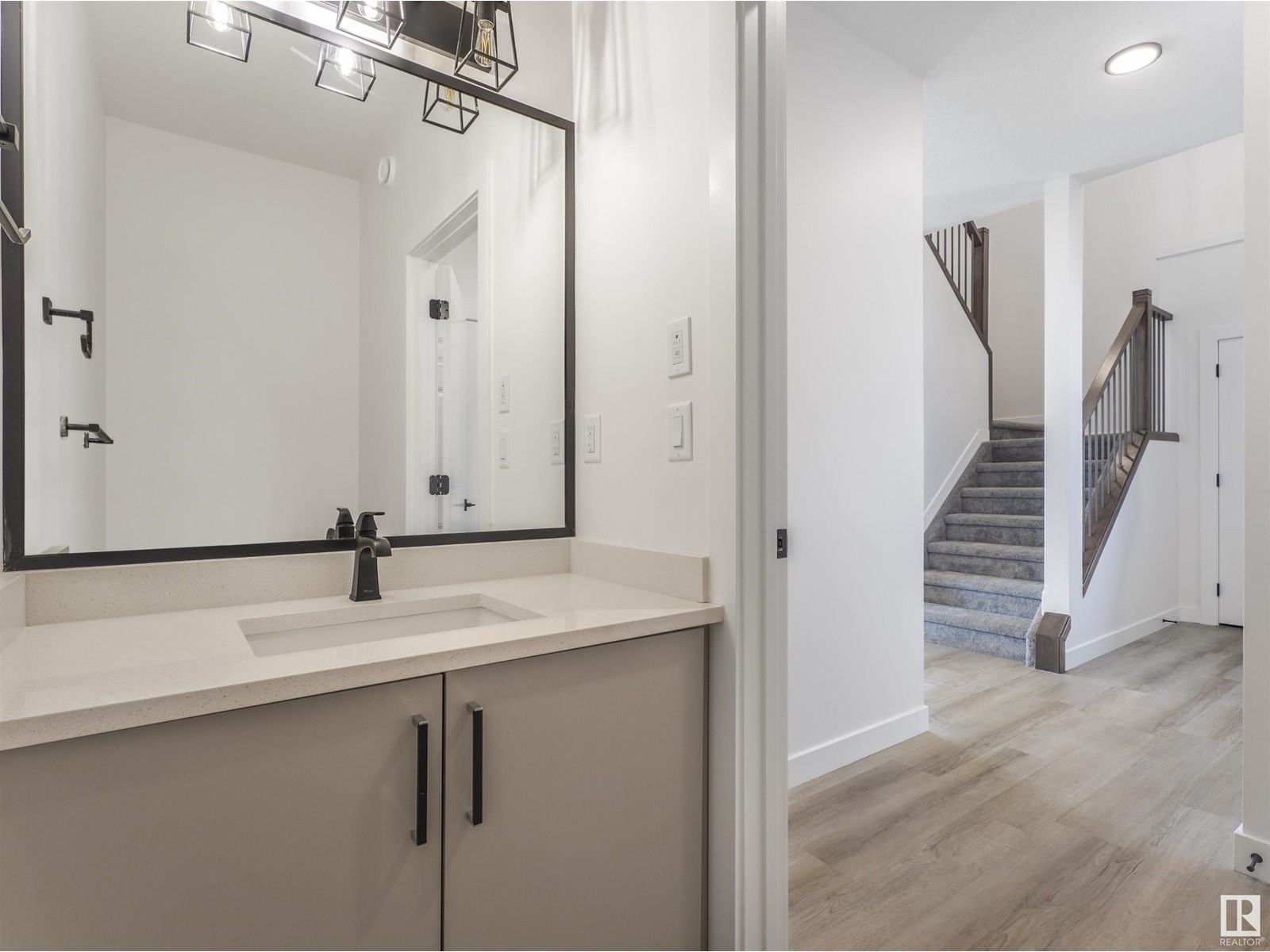 Quick Possession: Drywall complete (December 11). End of January Possession. Welcome to this brand new built 1494sq. ft. duplex in the community of Erin Ridge North, St. Albert. This unit backs onto a greenspace with a south facing backyard! This double attached garage, 2 storey half duplex has great access to all amenities such as Costco, home depot, movie theatre, and schools. Features in this professionally designed home includes double attached garage, 9 feet ceiling, luxury vinyl plans and more! Main floor features 9ft ceilings, modern kitchen cabinets right to the ceiling and large windows. Upstairs you will find 3 large bedrooms, 2nd floor laundry room and a Full bathroom, master bedroom has walk in closet and full ensuite bathroom with a large vanity. Pictures shown are a representation of potential finishing and upgrades available, homes may vary to clients needs and budget. Please visit showhome at 25 Elko Bend for more information. All professionally designed! (id:22211)