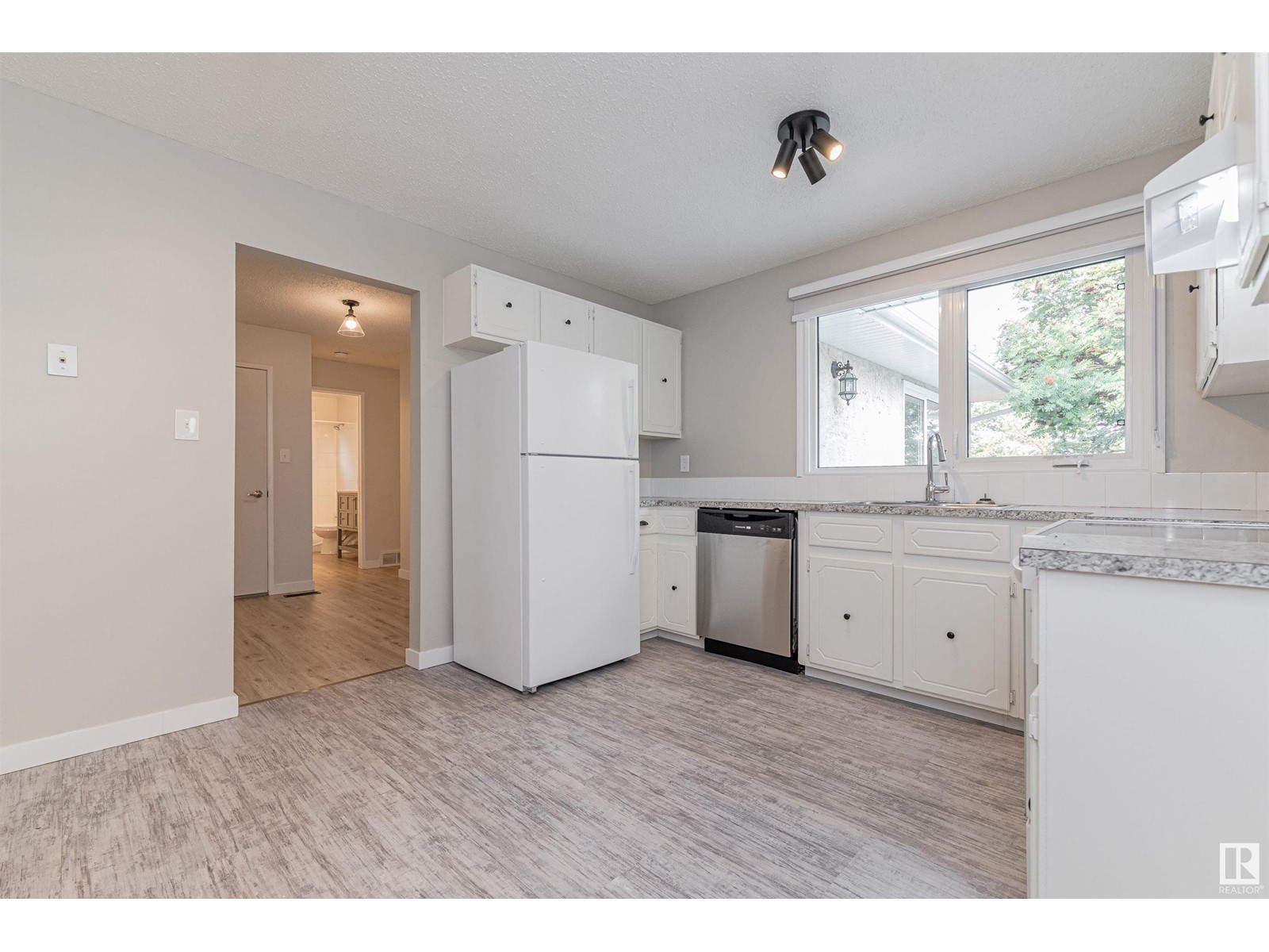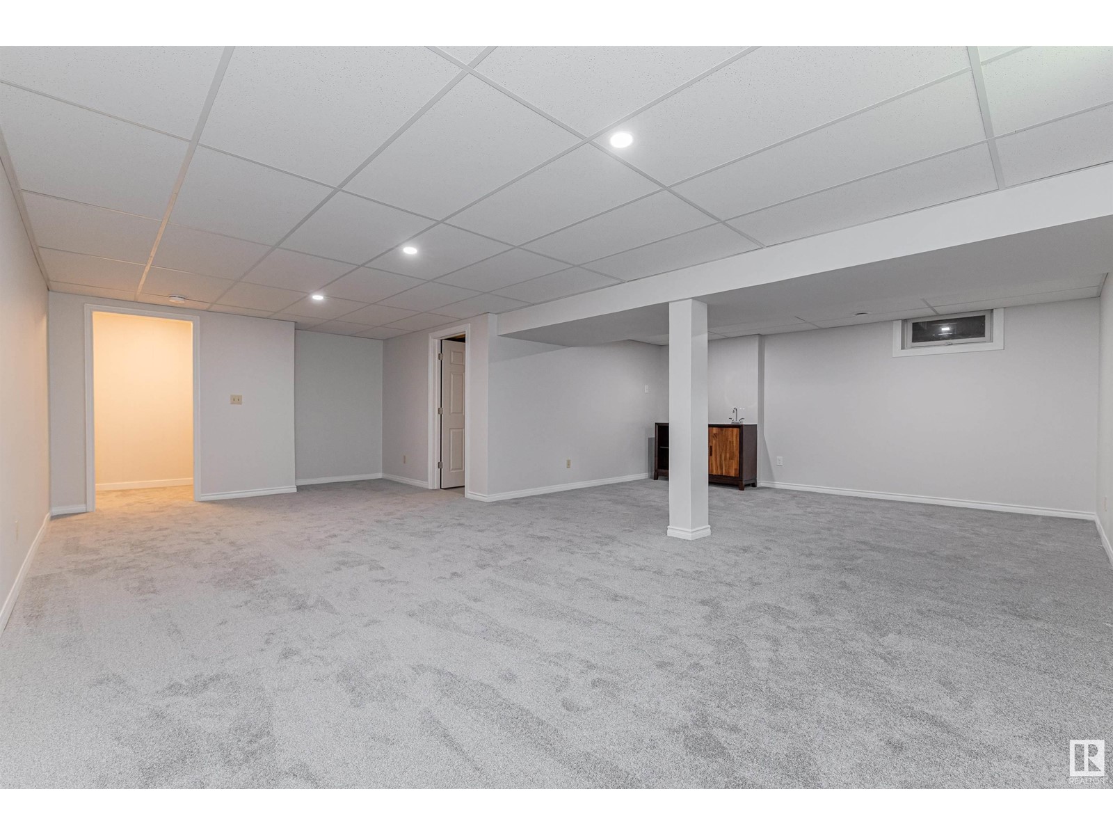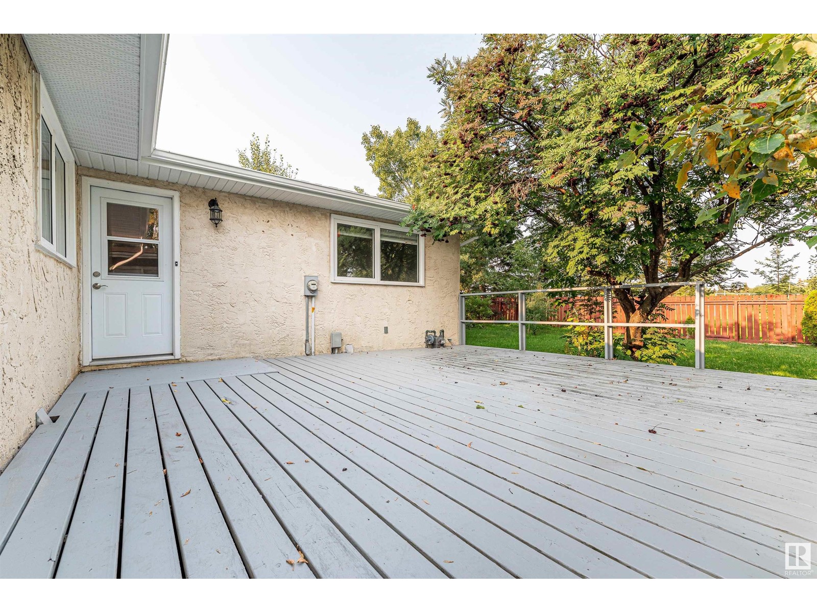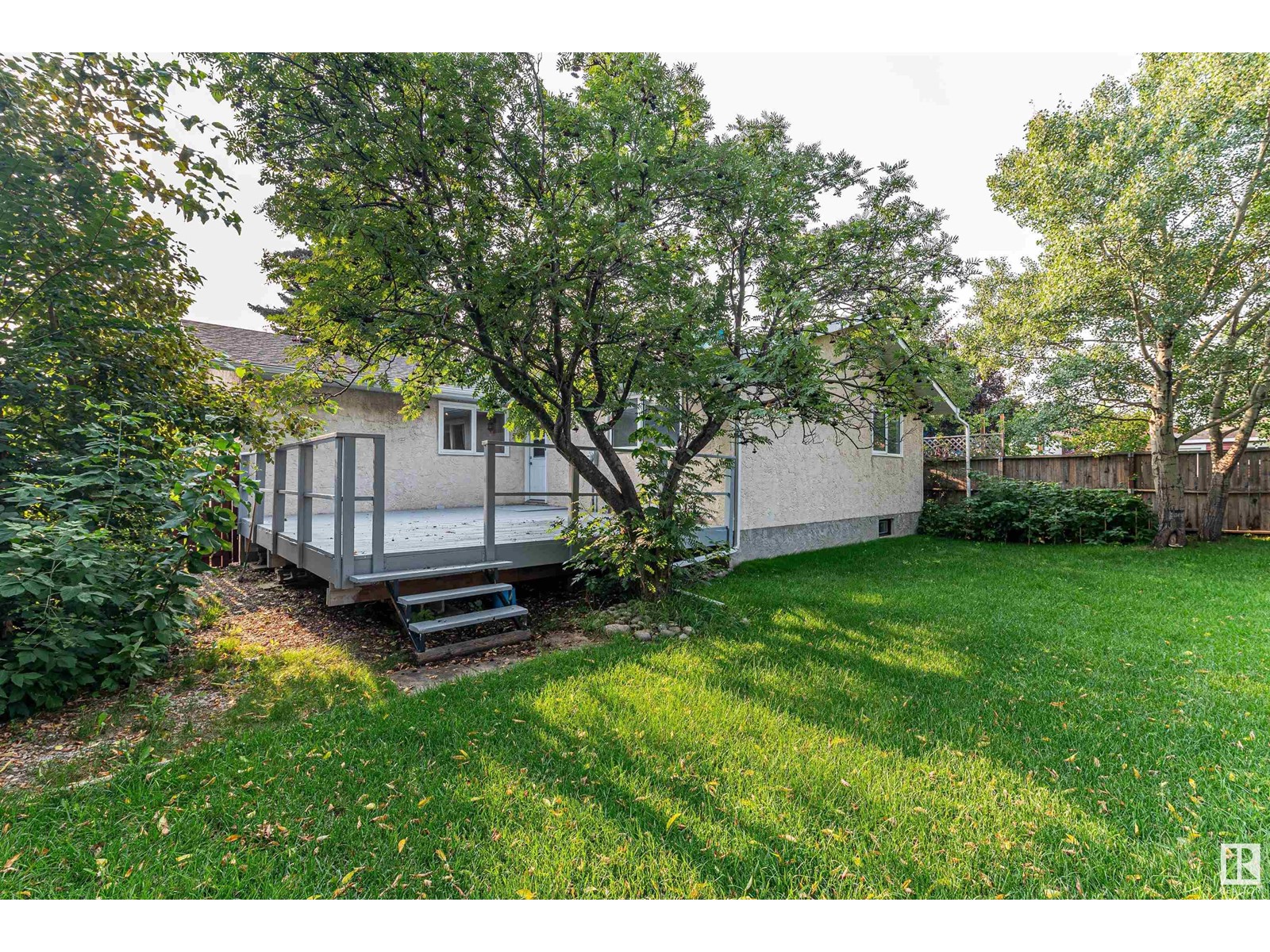 Spacious and freshly updated bungalow backing the Elmer Gish school field in Akinsdale! Brand new flooring throughout, paint, soffits, fascia, eavestroughs, vanities, window coverings, etc. This community is located a short distance to the Anthony Henday and is a quick drive to Servus Place recreation centre, as well as many other local attractions. Featuring a primary bedroom with a 3-piece ensuite and 2 additional bedrooms on the main floor along with a 4-piece main bath. Spacious living room and dining area with plenty of natural light. The kitchen window overlooks the large back yard and deck. Downstairs you will find a large family room with a wet bar, as well as the laundry area with plenty of storage and has rough-ins for a basement bathroom. Single attached garage and newer shingles and windows. Nothing left to do but move in and enjoy! (id:22211)