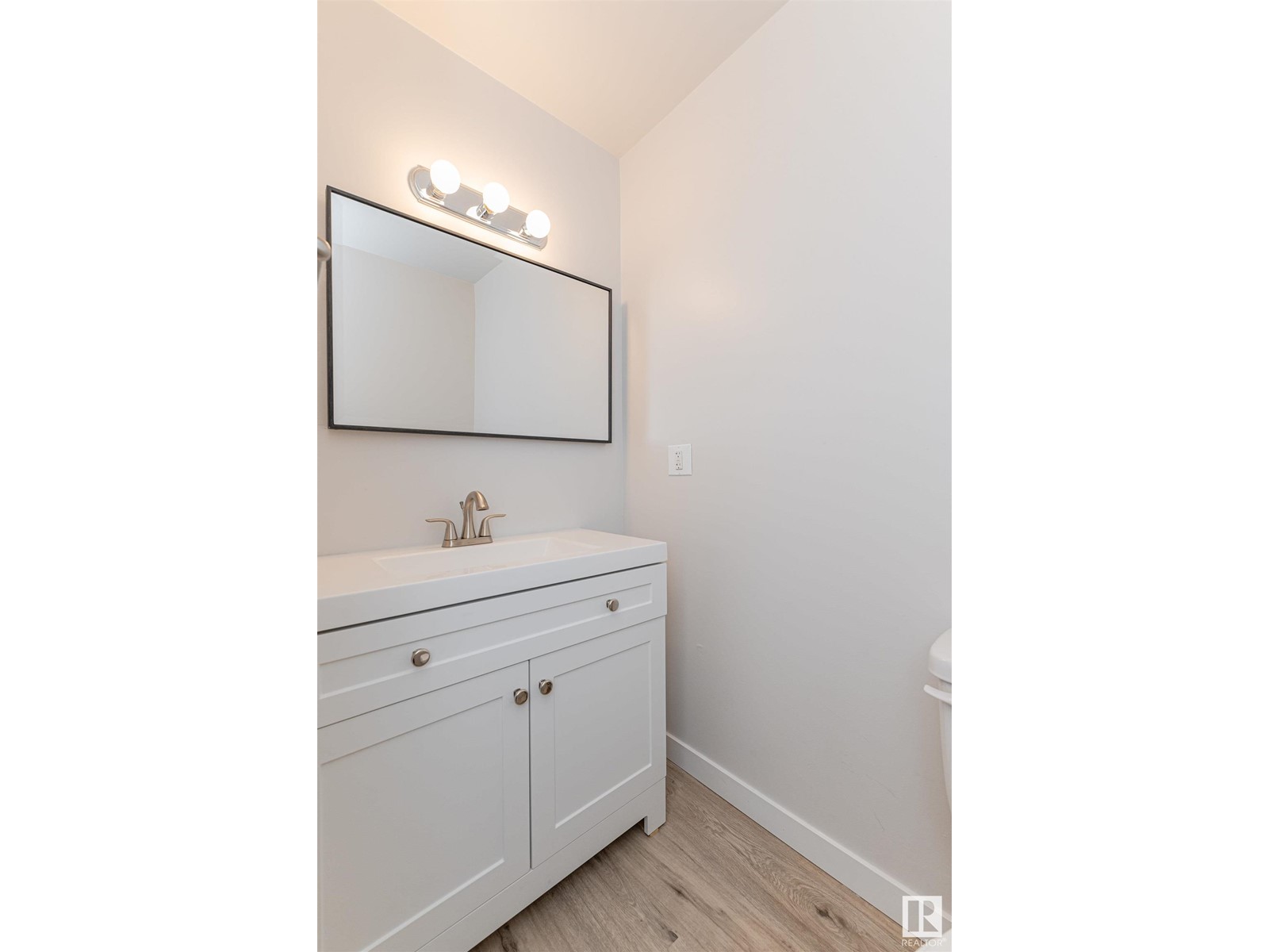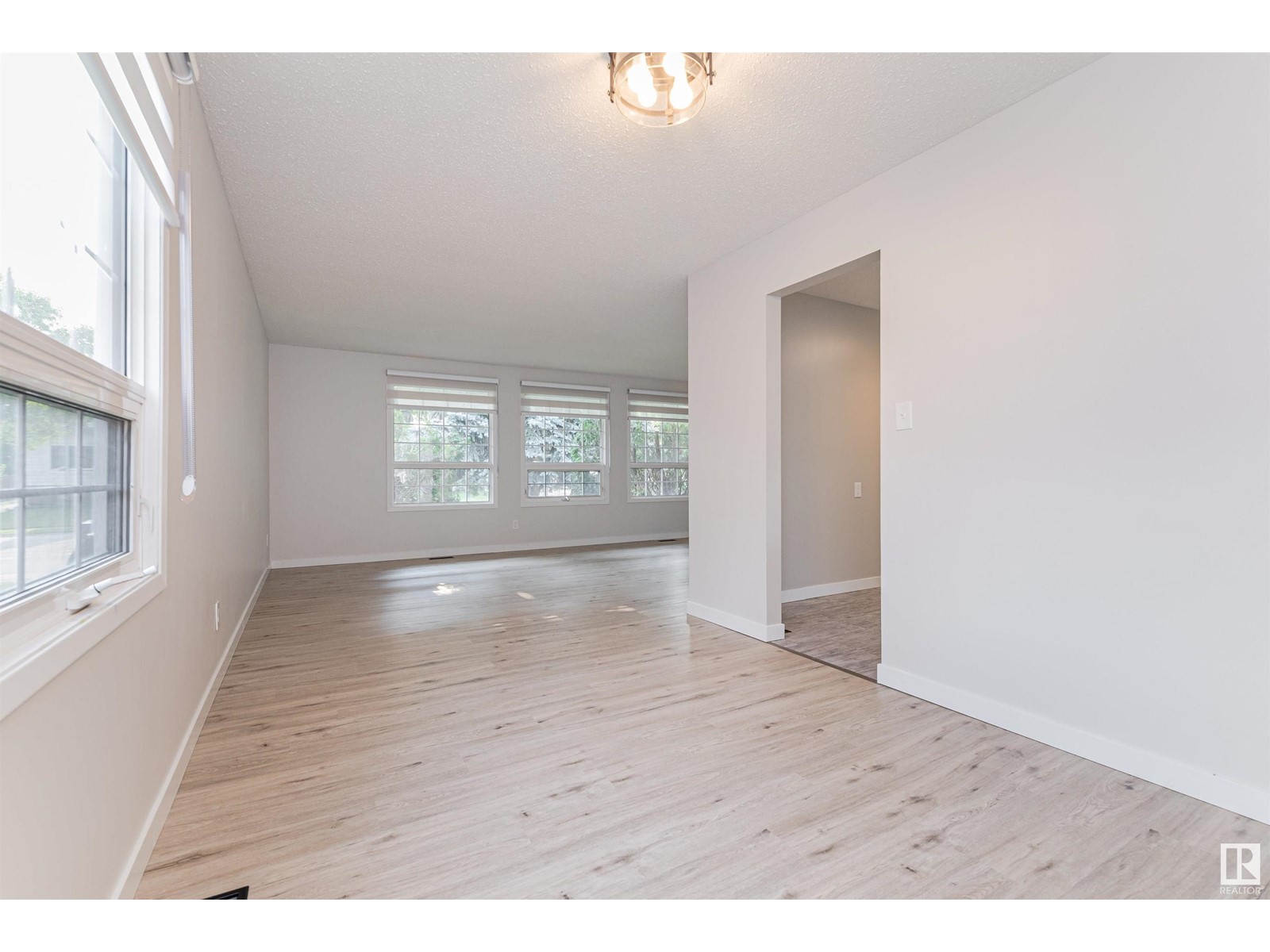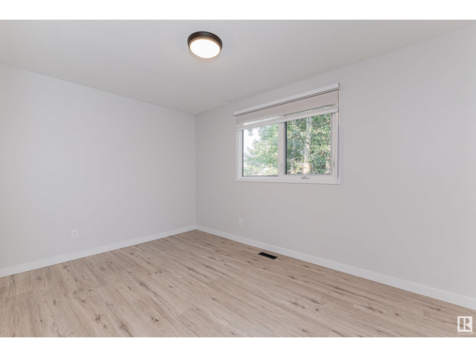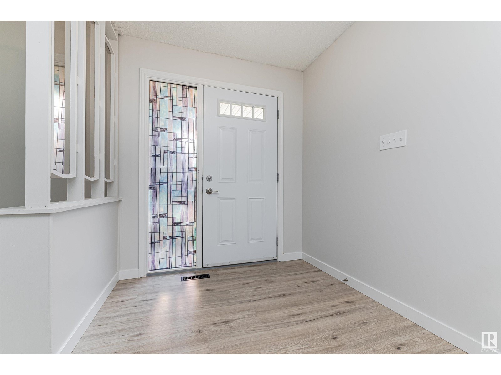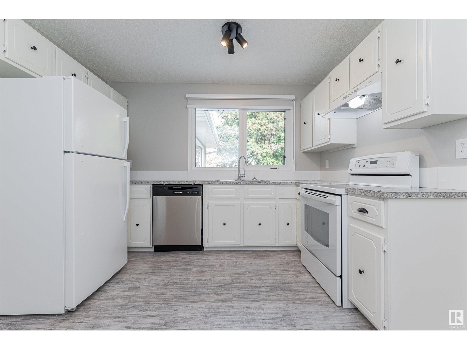 Spacious and freshly updated bungalow backing the Elmer Gish school field in Akinsdale! Brand new flooring throughout, paint, soffits, fascia, eavestroughs, vanities, window coverings, etc. This community is located a short distance to the Anthony Henday and is a quick drive to Servus Place recreation centre, as well as many other local attractions. Featuring a primary bedroom with a 3-piece ensuite and 2 additional bedrooms on the main floor along with a 4-piece main bath. Spacious living room and dining area with plenty of natural light. The kitchen window overlooks the large back yard and deck. Downstairs you will find a large family room with a wet bar, as well as the laundry area with plenty of storage and has rough-ins for a basement bathroom. Single attached garage and newer shingles and windows. Nothing left to do but move in and enjoy! (id:22211)