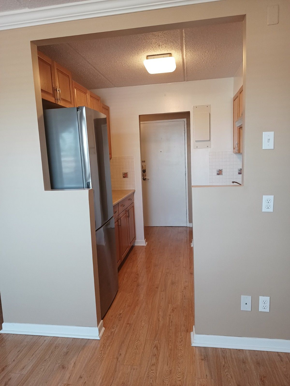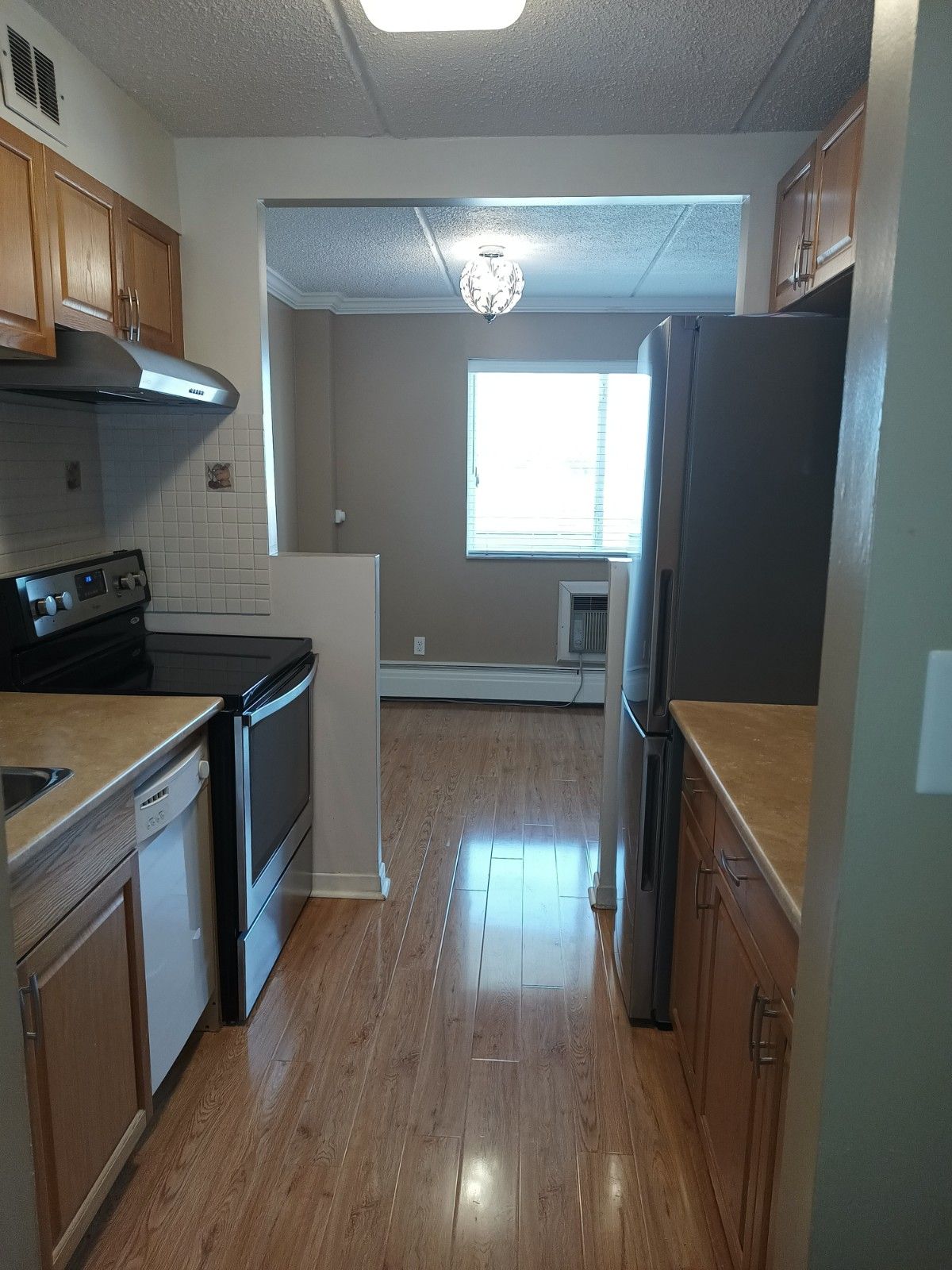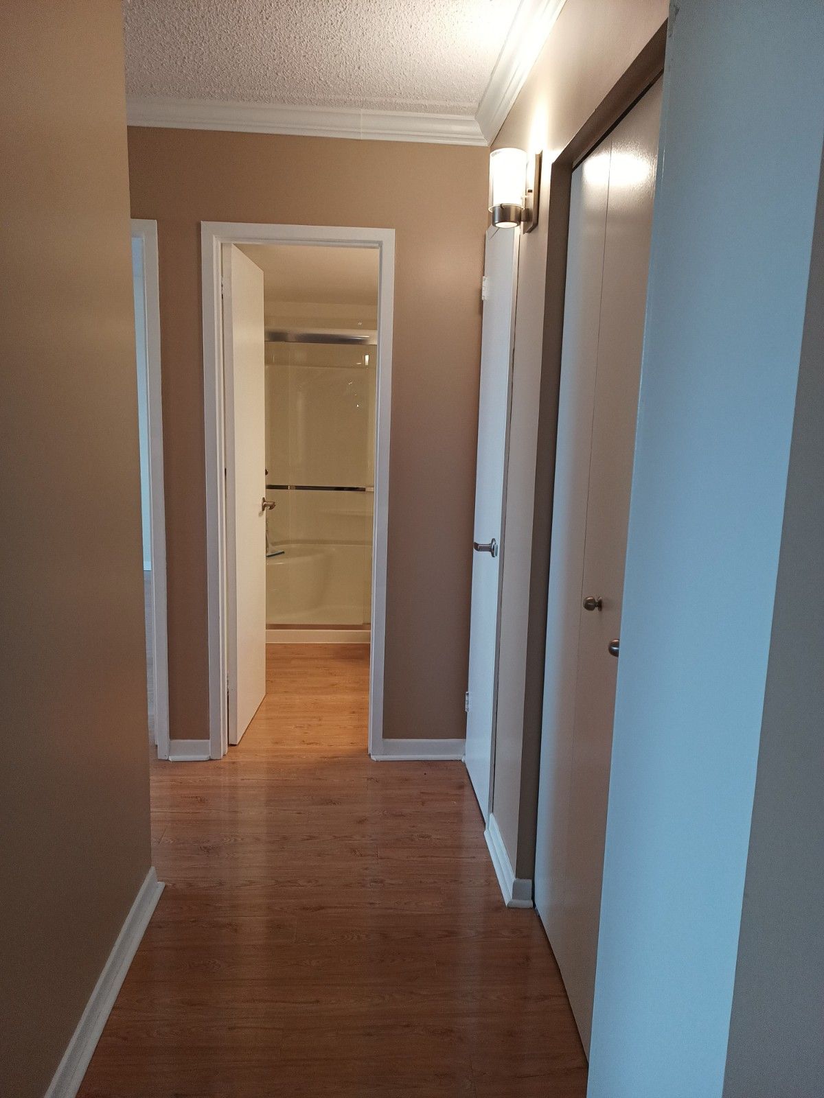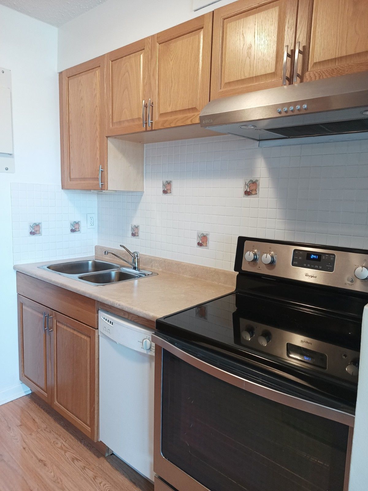 Beautiful renovated unit in a prime location close to the QEW Hwy. Amenties include hardwood floor, modern thermostat, 2 ceiling fans, newer bathroom. The building has acces to saltwater pool, excersice room, locker and new carpet and hardware on each floor.Stainless steel stove, fridge, rangehood. Also comes with a dishwasher, electric light fixtures, blinds and 2 ceiling fans.