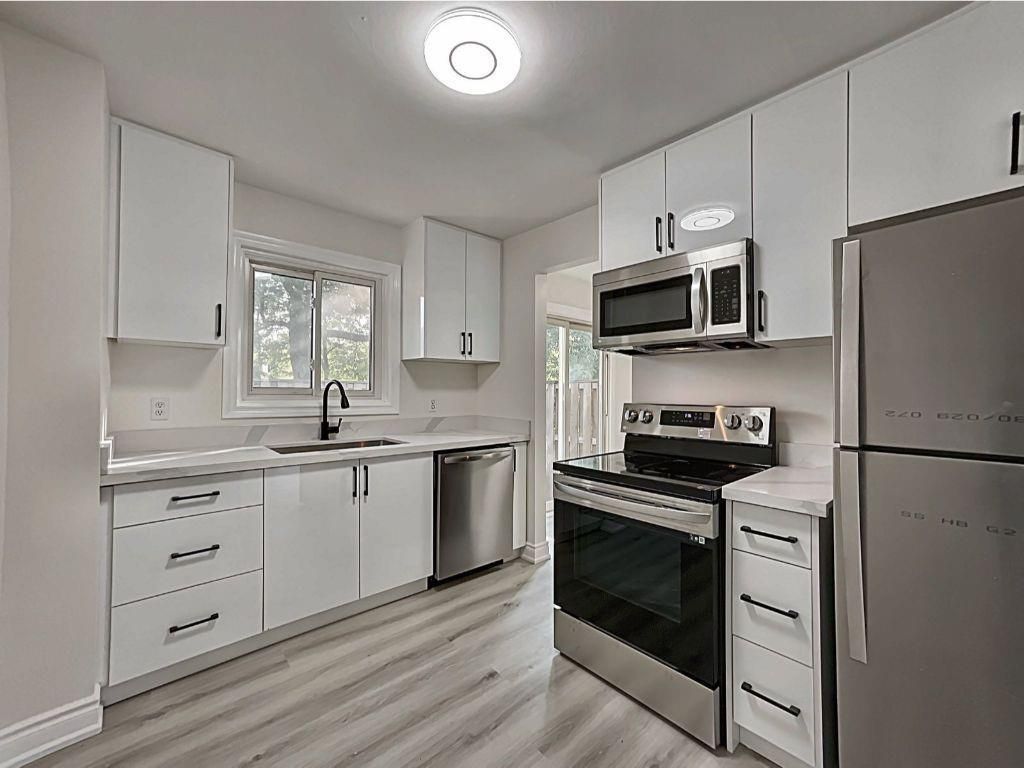 Beautifully updated end unit condo townhouse backing onto serene park. Featuring new kitchen 2022 with SS appliances and quartz countertops. Upper level with 3 bright bedrooms and 4pc bath with illuminated mirror and quartz countertops. Basement with rec room and additional 2pc bath. Updated flooring throughout. North end location close to parks, schools, shopping and the Welland Canal Trail.