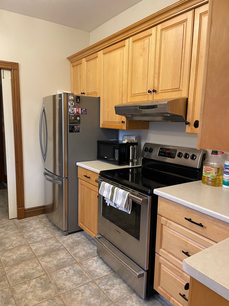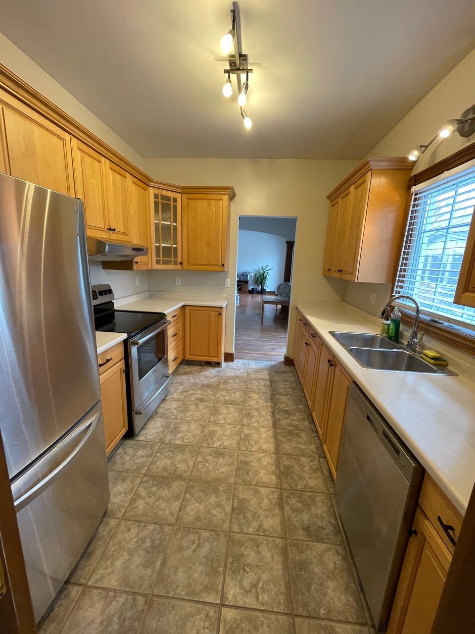Stainless Steel Appl Tile Floor Galley Kitchen