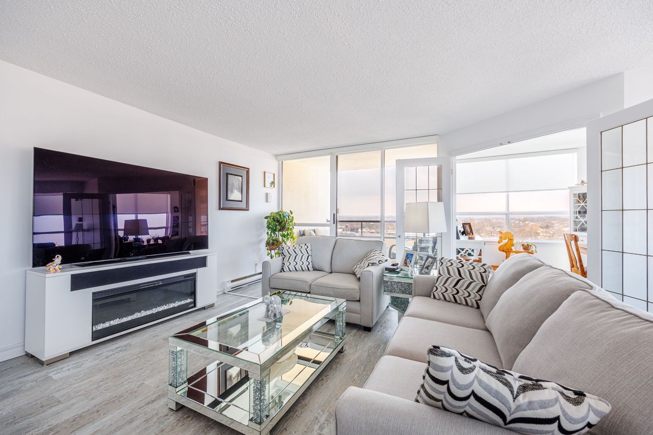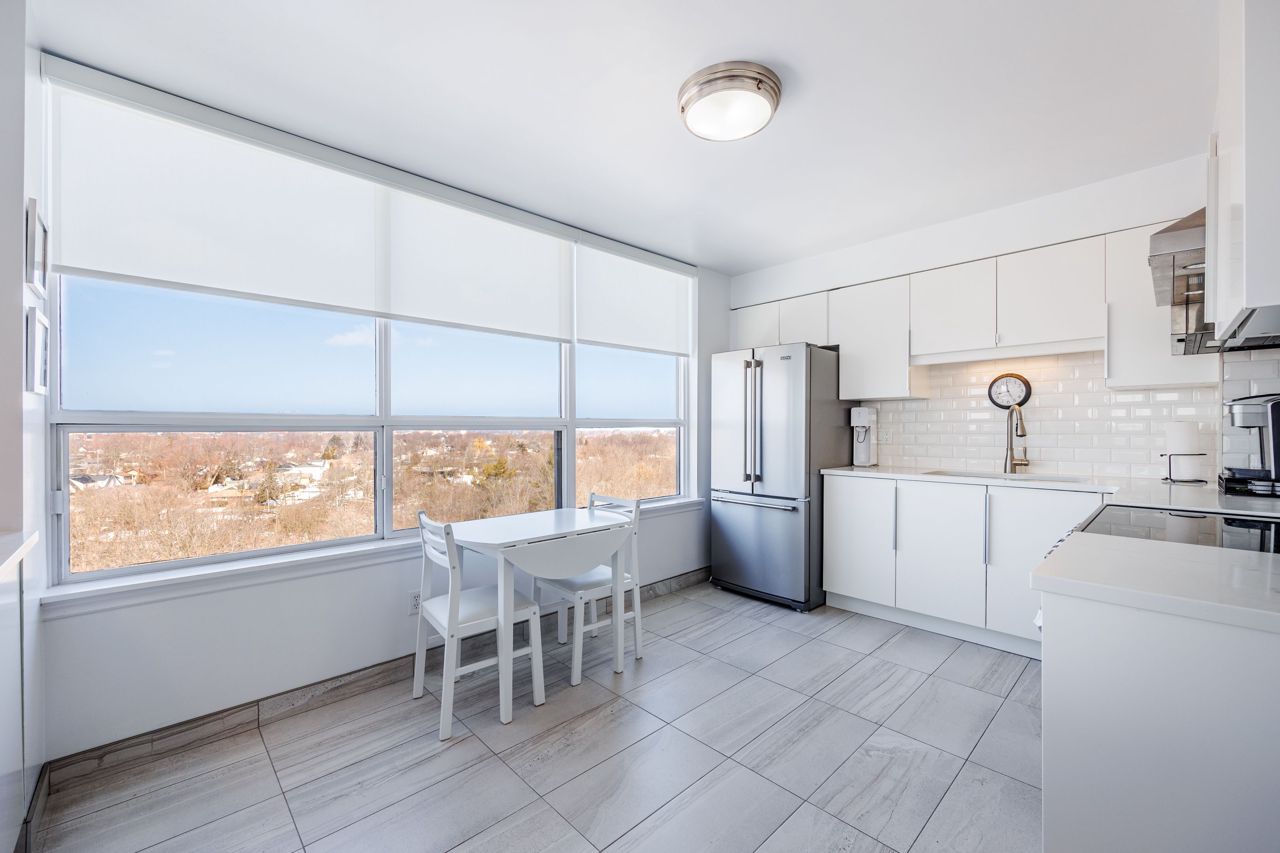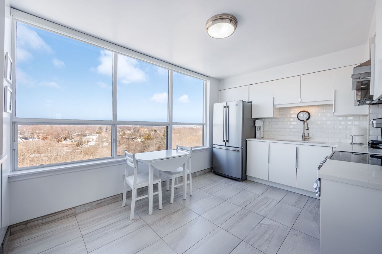 Elegantly appointed corner unit with northern exposure. Recently updated kitchen , flooring and bathrooms. Kitchen has new chef series appliances with quartz counter tops. Open plan from kitchen dining room to living room, good flow for entertaining and to enjoy the view. Large bedrooms, primary bedroom with 4 piece ensuite, ample storage, central air and central vacuum plus 2 storage units. This complex features, pool, sauna, billiard room, gym, part room and library. Close to shopping, restaurants and public transit.Building Insurance, Building Maintenance, C.A.M., Cable TV, Common Elements, Ground Maintenance/Landscaping, Heat, Hydro, Other, Parking, Snow Removal, Utilities, Water