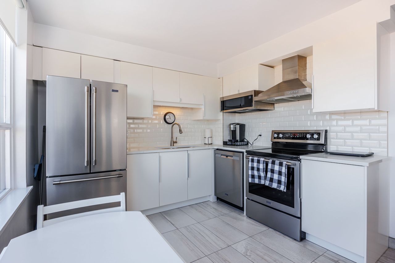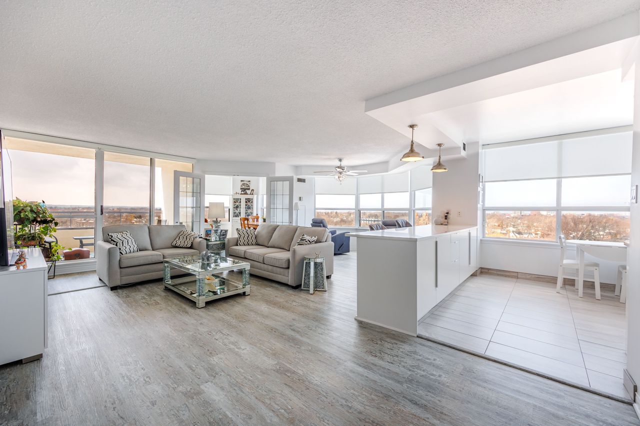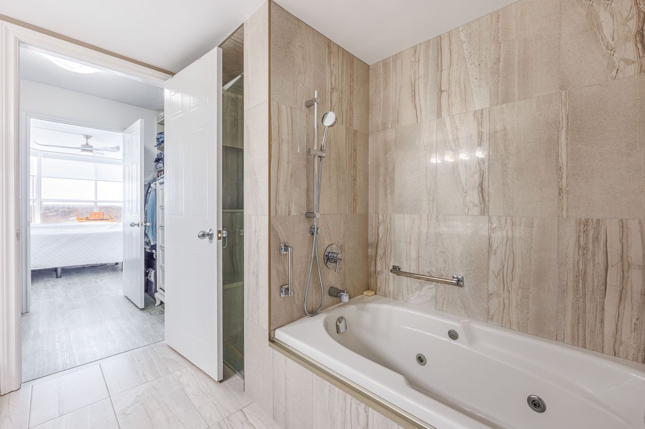 Elegantly appointed corner unit with northern exposure. Recently updated kitchen , flooring and bathrooms. Kitchen has new chef series appliances with quartz counter tops. Open plan from kitchen dining room to living room, good flow for entertaining and to enjoy the view. Large bedrooms, primary bedroom with 4 piece ensuite, ample storage, central air and central vacuum plus 2 storage units. This complex features, pool, sauna, billiard room, gym, part room and library. Close to shopping, restaurants and public transit.Building Insurance, Building Maintenance, C.A.M., Cable TV, Common Elements, Ground Maintenance/Landscaping, Heat, Hydro, Other, Parking, Snow Removal, Utilities, Water
