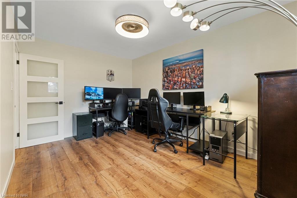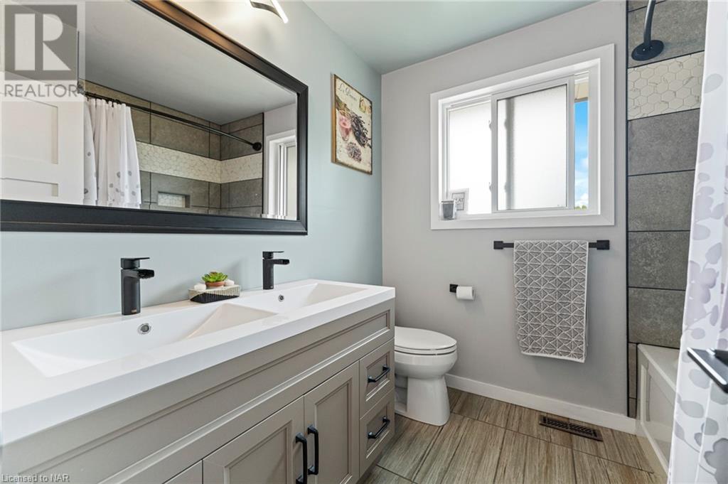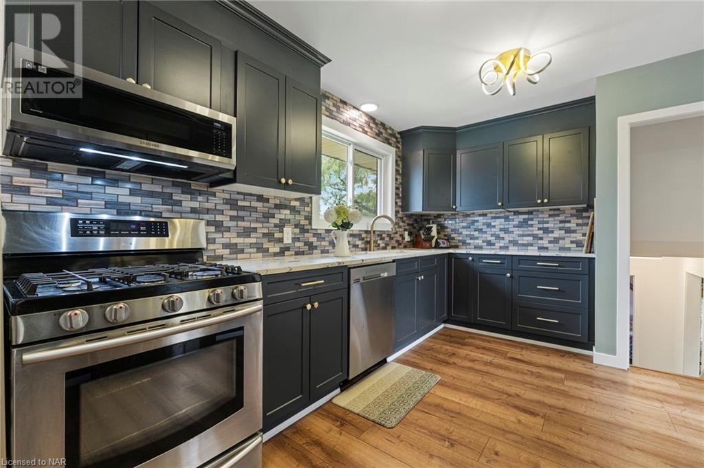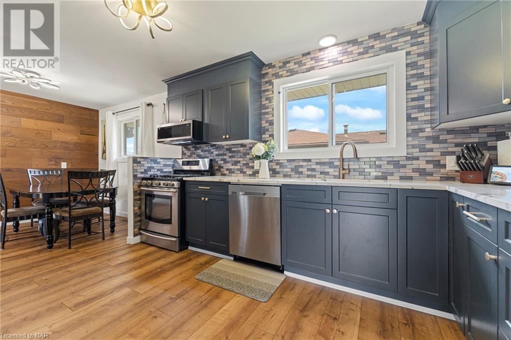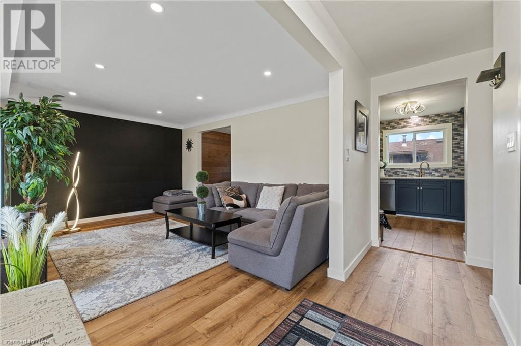 Experience modern living at its finest in this stunning property located at 4 Treeview Place, nestled on a desirable corner lot in the heart of St. Catharines. Meticulously renovated, this residence presents a harmonious blend of contemporary design and comfort. Step inside to discover a freshly painted interior adorned with new light fixtures, creating a warm and welcoming ambiance throughout. The thoughtfully updated closet doors add a touch of sophistication to the space. The living room boasts an abundance of natural light streaming in through a large window, illuminating the open layout. Entertain in style within the dining room, featuring a captivating wooden concept wall that adds a unique touch of elegance to your gatherings. The navy blue kitchen cupboards exude a sense of modern chic, perfectly complemented by the marble countertops that add an element of luxury to your culinary experiences. The property boasts updated bathrooms that reflect a contemporary aesthetic, offering a rejuvenating retreat for relaxation. With three generously sized bedrooms, there is ample space for your personal sanctuary or family needs. Venture downstairs to discover the fully finished basement, where an additional bedroom and bathroom provide versatility and convenience. The finished space in the lower level is currently used as a primary bedroom, complete with a 3-piece bathroom for added comfort. The rec room is an inviting space, complete with a cozy fireplace that sets the perfect ambiance for cozy evenings spent indoors. Have peace of mind knowing the entire home is equipped with plank vinyl flooring, which is waterproof. Embrace the serene surroundings and impeccable design of this remarkable property – a true embodiment of modern living. Don't miss the opportunity to call this corner lot gem your new home. (id:22211)