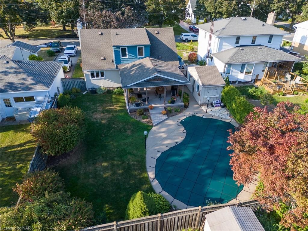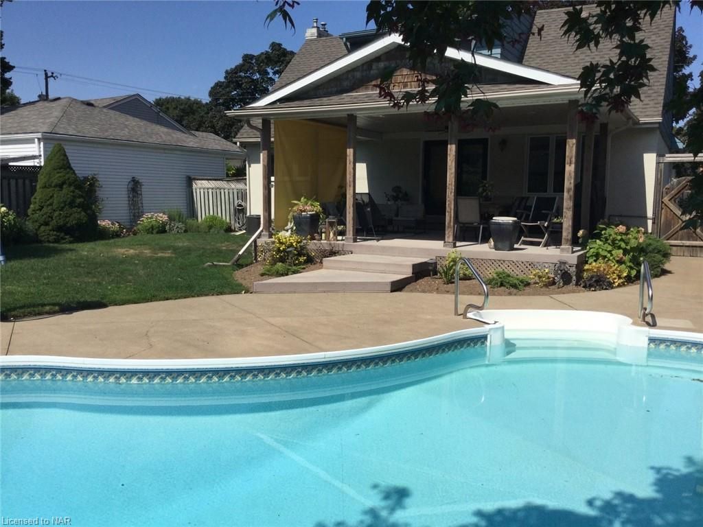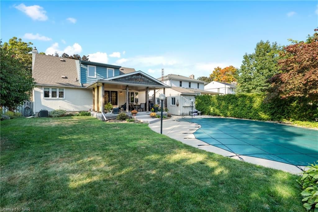 Beautiful 1600 sq. ft., 3 bedroom, 2 bath home located in sought after “Sunnyside Estates”. Welcoming foyer, a formal living room with gas fireplace and built in's. Choose the formal dining room or more Casual in the oversized eat in kitchen w/beautiful appliances, plenty of cupboards, a coffee/drink station w/wet bar and pantry. Main floor bedroom presently being used as a den. Upstairs you will find a second bathroom, a bedroom w/built in's and a cozy fireplace, and the third bedroom w/walk-in closet. The finished basement offers a wet bar, electric fireplace, an office, large laundry room and utility room. The back property is an oasis! wonderful in ground heated pool, covered patio, oversized shed all surrounded by beautifully landscaped gardens. All amenities are close by, along with beaches, walking trails, world renowned wineries, restaurants and breweries. You will LOVE where you LIVE!