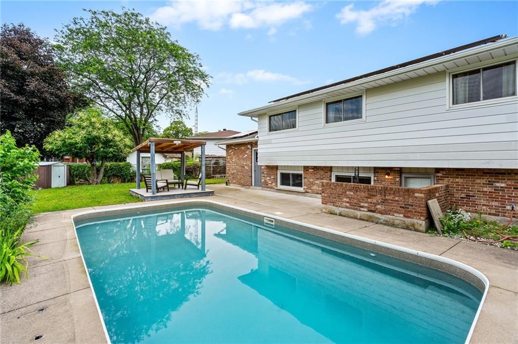 Welcome to 9 Bullocks Corners! This charming raised bungalow located in the highly sought-after North End in a quiet neighbourhood. With a convenient layout, this well-maintained home offers a comfortable & inviting living space. Situated on a large, pie shaped lot, this bungalow boasts 1,085 sq ft, 3+1 beds, & 2 full baths. As you enter the home, you'll be greeted by a bright & spacious living room w/ large windows allowing natural light to fill the space. Main floor also features open concept dining/kitchen, 3 generous beds, & full 4pc bath. Fully finished basement w/ W/O adds versatility to the property. Offering a spacious living room w/ wood burning fireplace, additional bed, 4pc bath, & ample storage, perfect for providing a guest suite or converting to an in-law suite. Heading outside to the fully fenced backyard w/ a large inground pool. The highly sought-after North End location w/ easy access to amenities, schools, parks, shopping & restaurants.UPDATES INCLUDE: Roof (5yrs), Front Door (4yrs), Pool Pump (1yr), Pool Filter (2yrs), Pool liner (6 yrs), Windows (3yrs), Furnace (2yrs), A/C (1yr)