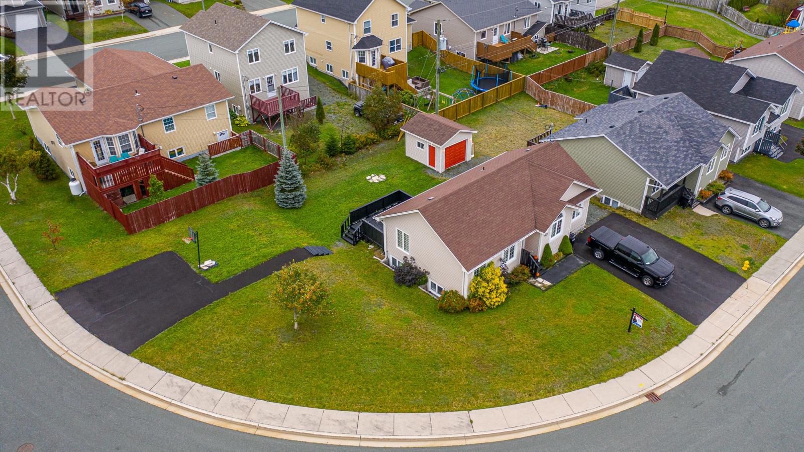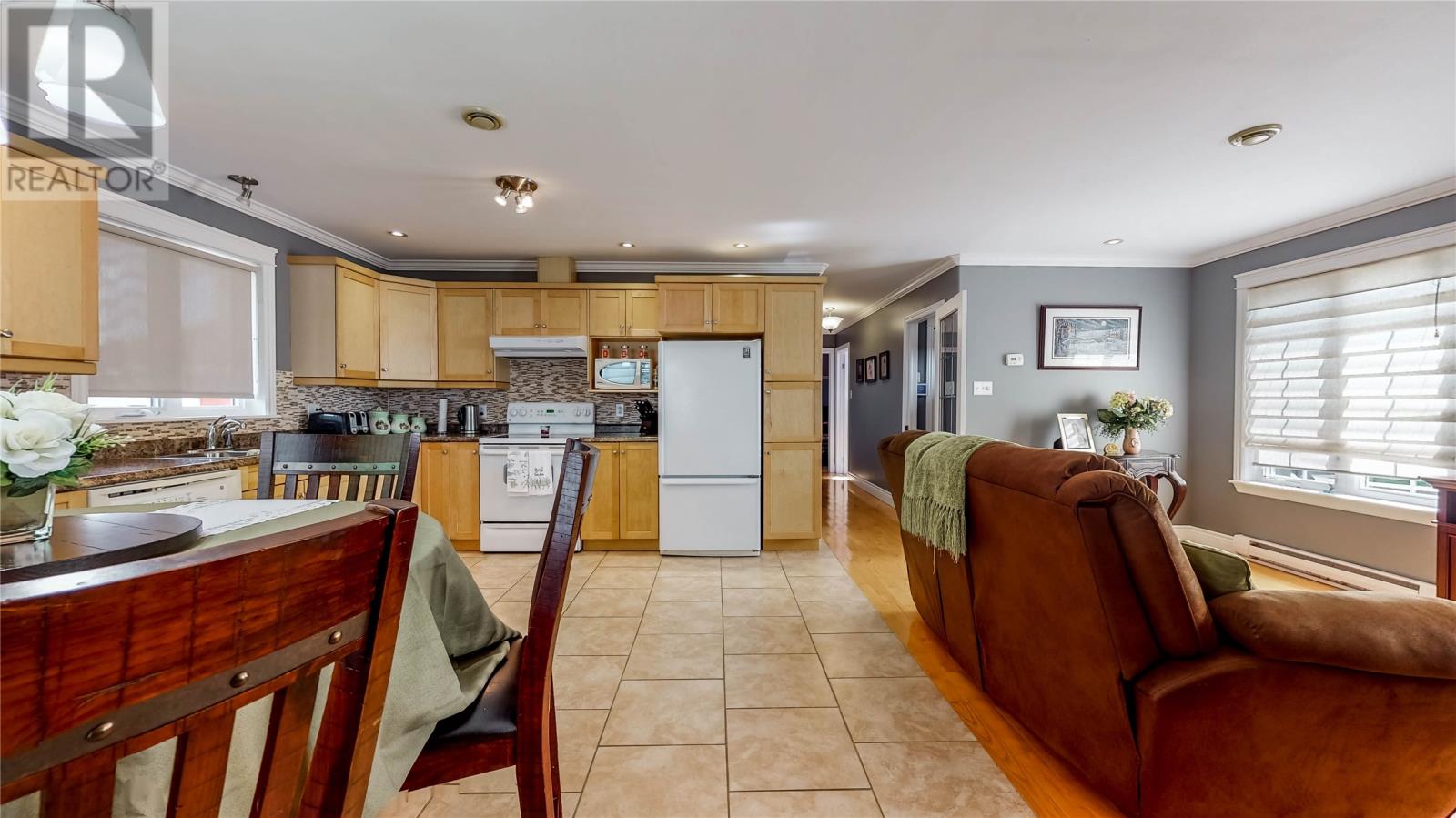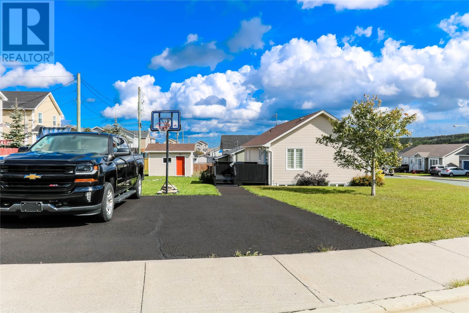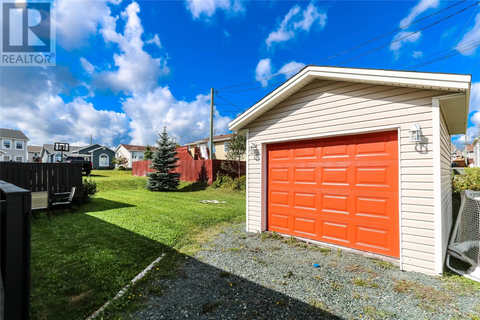 Are you looking for something a little smaller and easy to clean? Having almost 2 lots with plenty of parking and would fit the budget? How about the luxury of heated flooring in the kitchen and both bathrooms? If that has not grabbed your attention, book your showing and have a look at this one in person. This bungalow is located in one of the most sought after subdivisions, Kenmount Terrace. Boasting 3 Bedrooms, 1 and 1 half bathrooms, using the den as a bedroom currently. Freshly painted throughout, new hot water tank, open concept kitchen dining and living area. Huge Rec room, look at the trim work, that's right its not wall paper its an actual built in accent wall. Check out the laundry storage area, ample space just waiting for your personal touch. As we head out to the rear yard where you will find southern exposure at its best. Chill out on your patio deck and and enjoy the rays of sunshine. Also located in the backyard, lots of trees and shrubs and a nice sized storage shed/garage for your toys with plenty of shelving and is wired and insulated. Plus you can build the garage of your dreams near the second driveway too. Bring your dreams a reality! (id:22211)
