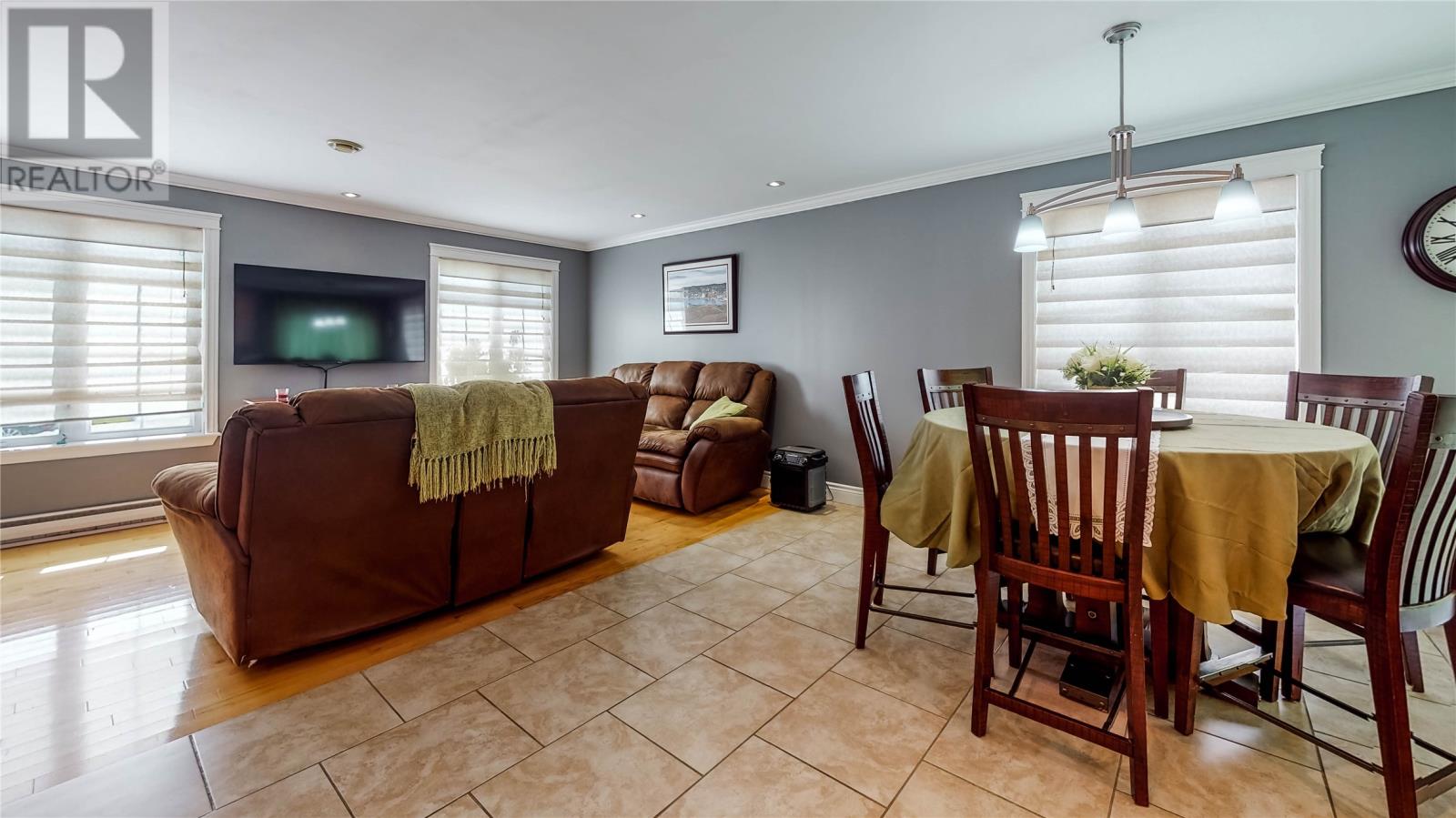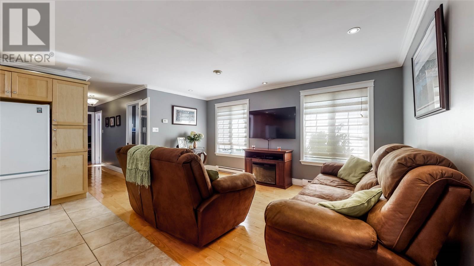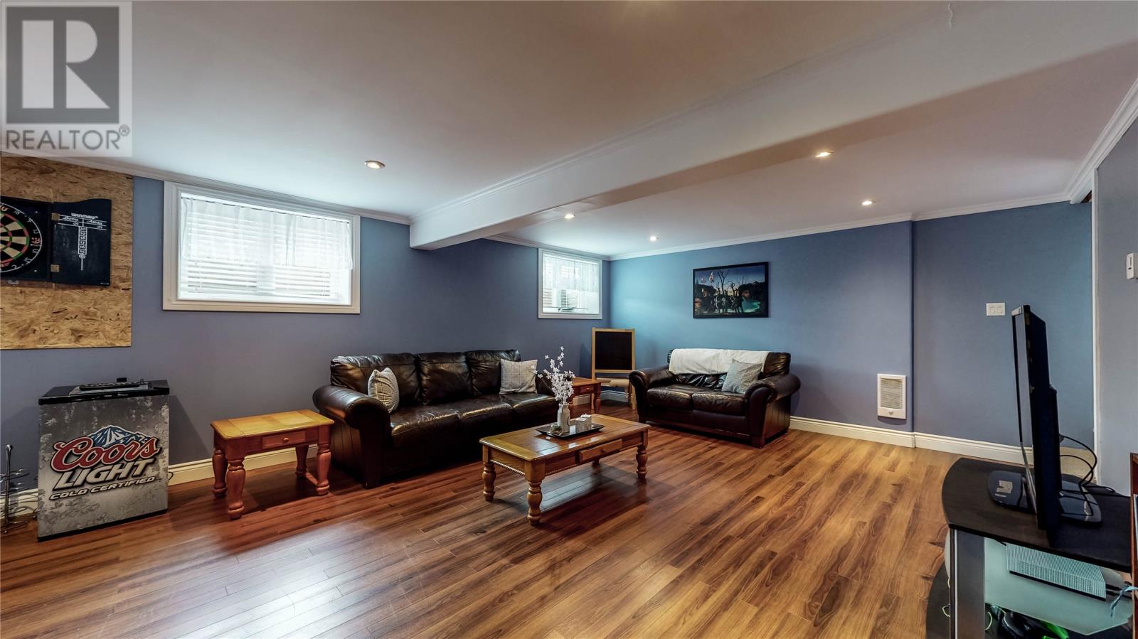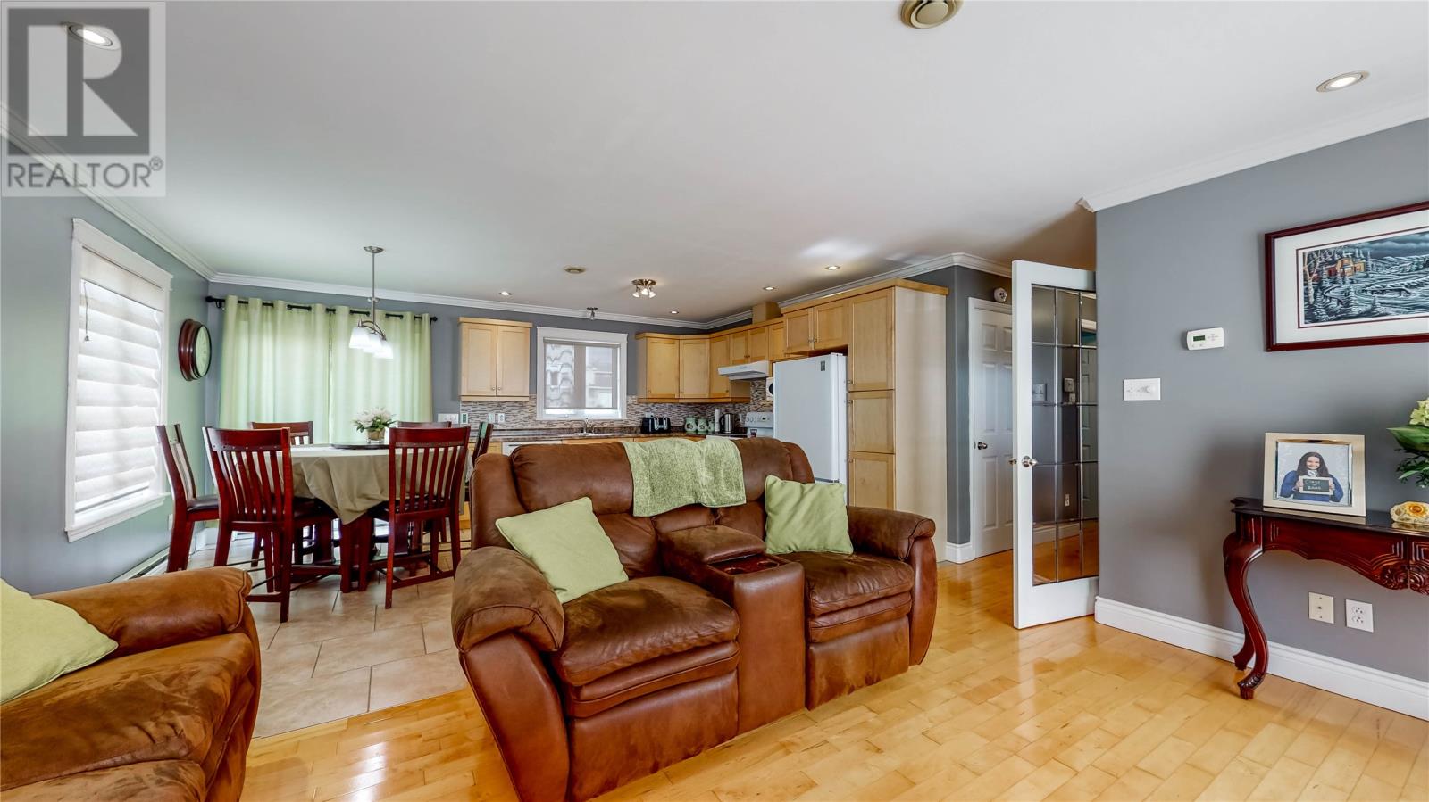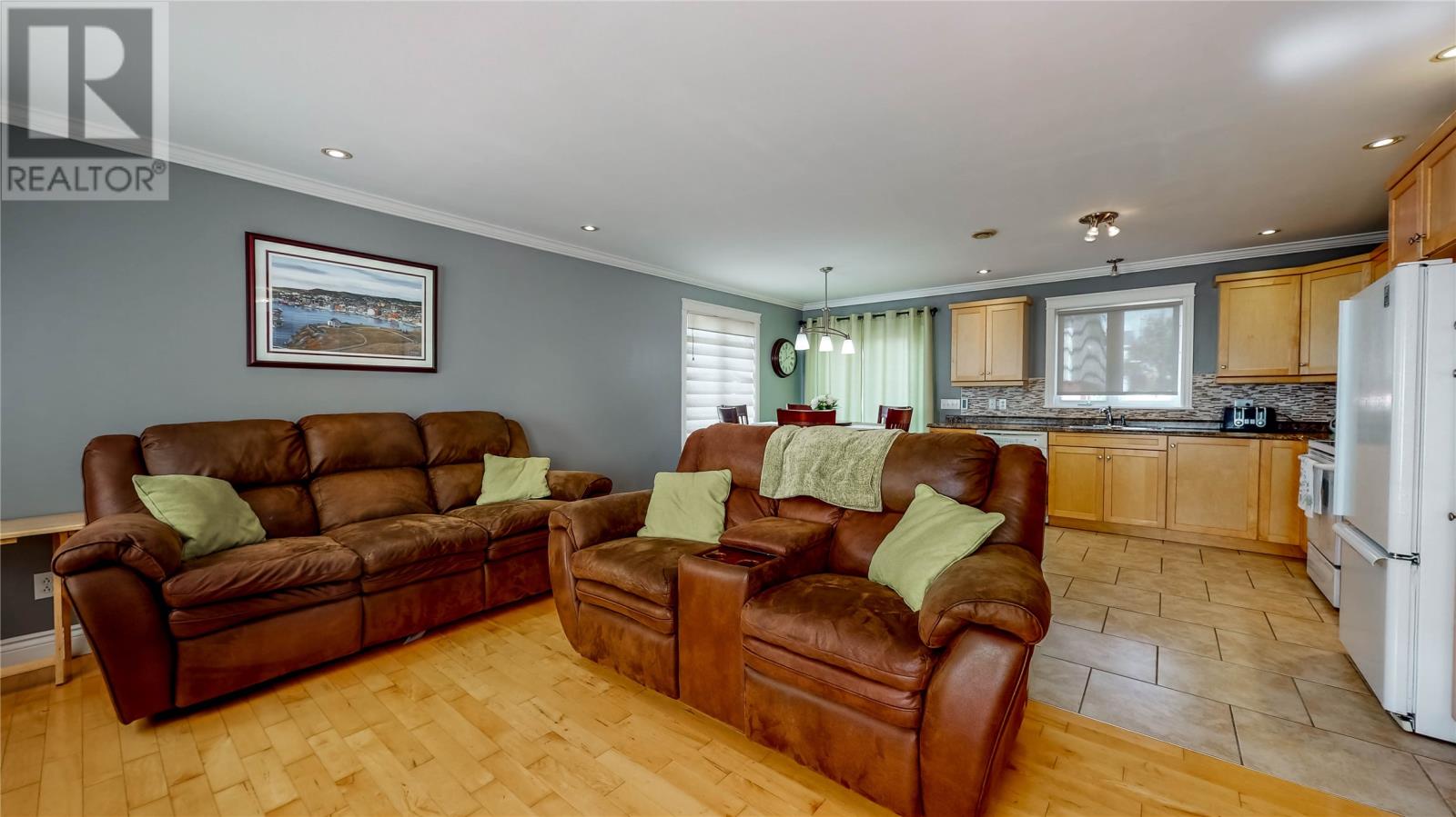 Are you looking for something a little smaller and easy to clean? Having almost 2 lots with plenty of parking and would fit the budget? How about the luxury of heated flooring in the kitchen and both bathrooms? If that has not grabbed your attention, book your showing and have a look at this one in person. This bungalow is located in one of the most sought after subdivisions, Kenmount Terrace. Boasting 3 Bedrooms, 1 and 1 half bathrooms, using the den as a bedroom currently. Freshly painted throughout, new hot water tank, open concept kitchen dining and living area. Huge Rec room, look at the trim work, that's right its not wall paper its an actual built in accent wall. Check out the laundry storage area, ample space just waiting for your personal touch. As we head out to the rear yard where you will find southern exposure at its best. Chill out on your patio deck and and enjoy the rays of sunshine. Also located in the backyard, lots of trees and shrubs and a nice sized storage shed/garage for your toys with plenty of shelving and is wired and insulated. Plus you can build the garage of your dreams near the second driveway too. Bring your dreams a reality! (id:22211)