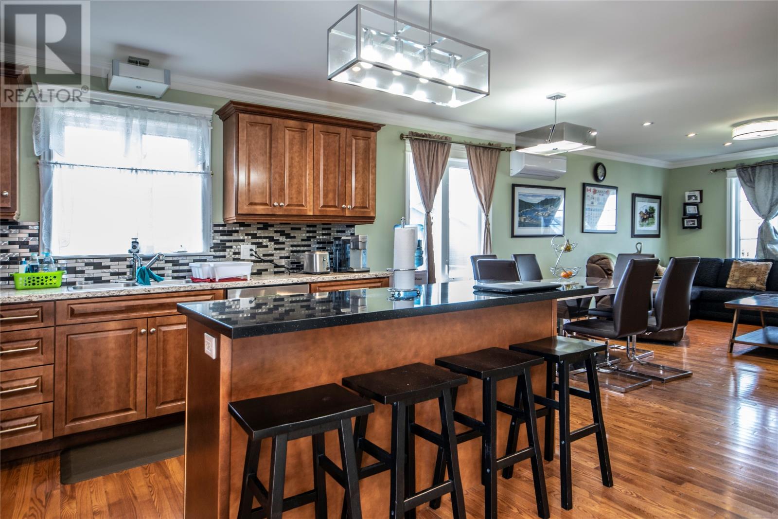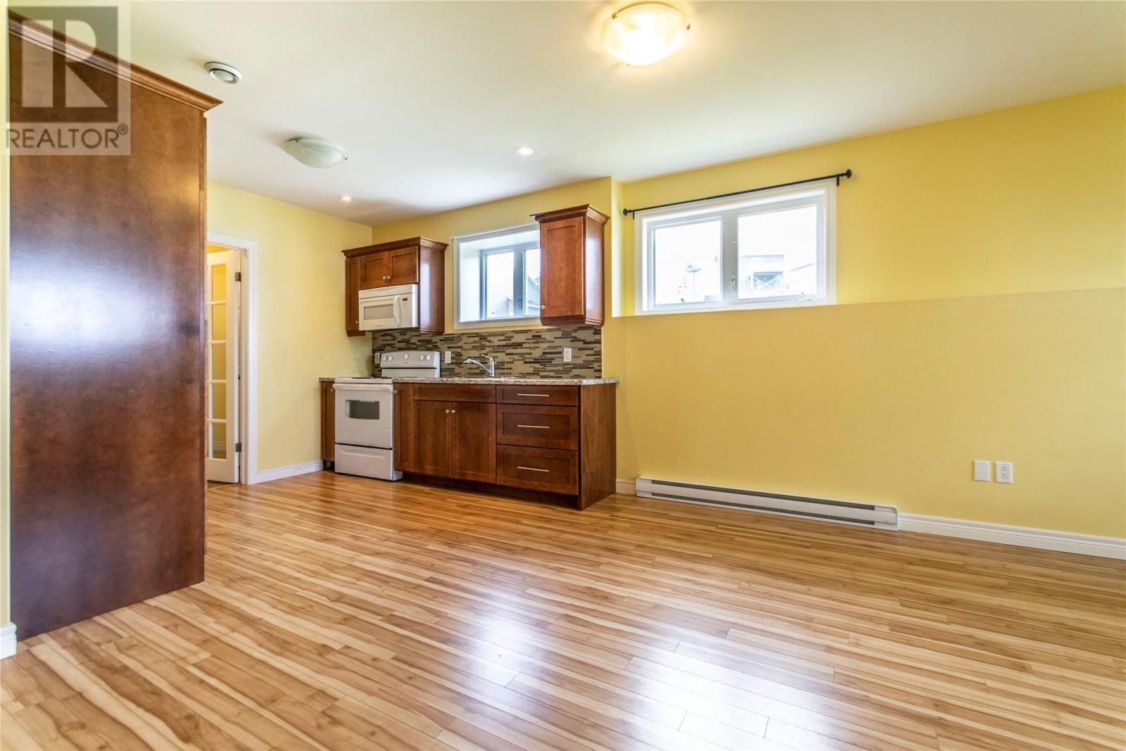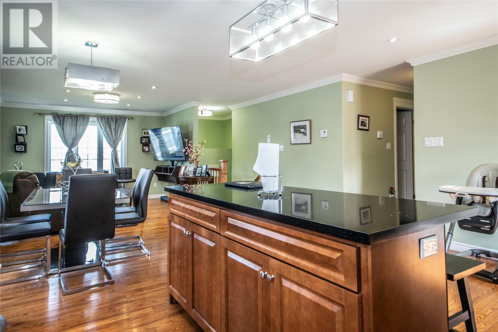 This two apartment is on a corner lot with a garage on a quiet crescent in Kenmount Terrace. This one is just around the corner from the Kelsey Drive shopping area, seconds from the Outer Ring Road, and close to the Kenmount Terrace community centre. The house has an open concept design living room/dining and kitchen. There are three nice sized bedrooms. The master has an ensuite with glass shower and walk-in closet. There is also a huge family room in the basement. The apartment is a very spacious 1 bedroom layout, with its own separate 2 car driveway. The attached garage is spacious with plenty of room to park your car and offers additional storage. (id:22211)