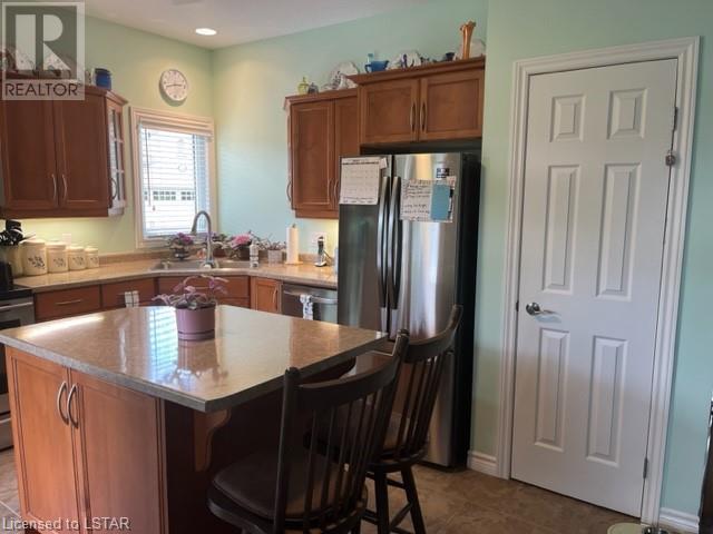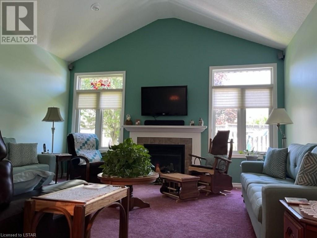 Quiet area, 3+ Bedroom Condo corner unit - covered front and rear porch. Open concept with Kitchen, Dining Area and Great Room with Vaulted Ceilings and Gas Fireplace. Master Bedroom has a Bath Safe Walk In Tub and Shower (Purchase Value $20,000). Lower Level fully finished with Family Room and Fireplace. Current Owner has Quilting shop in Lower Level. Third Bedroom and 4 Pc Bath. Gas BBQ hook up. Great Room has Dark Brown Hardwood under Carpet (east to remove). (id:22211)