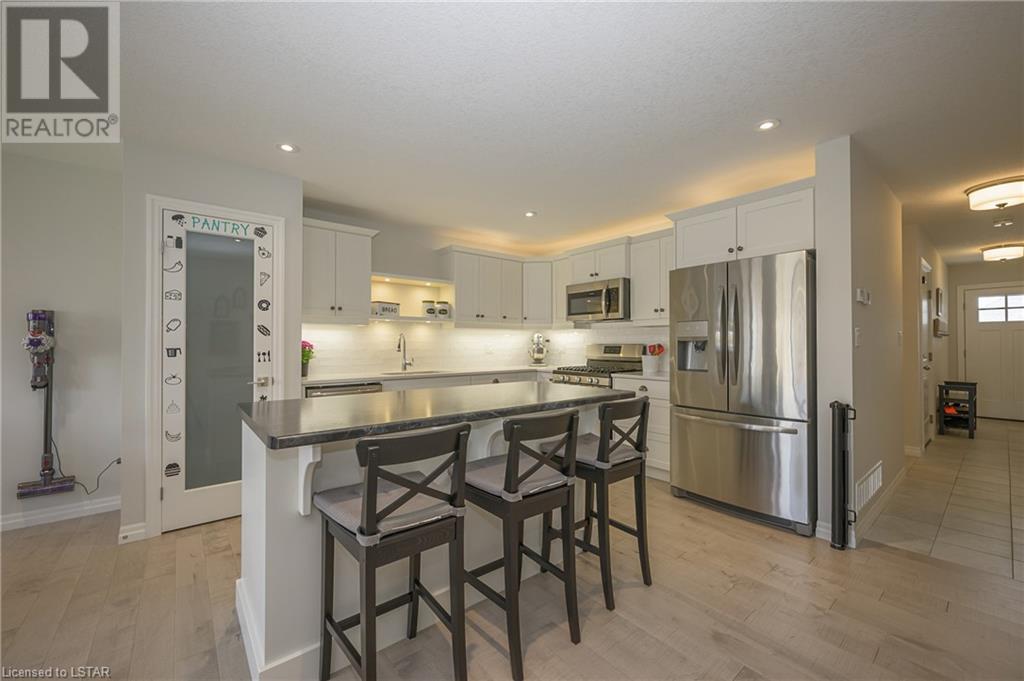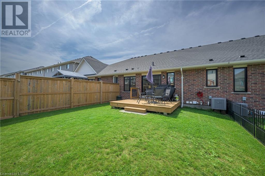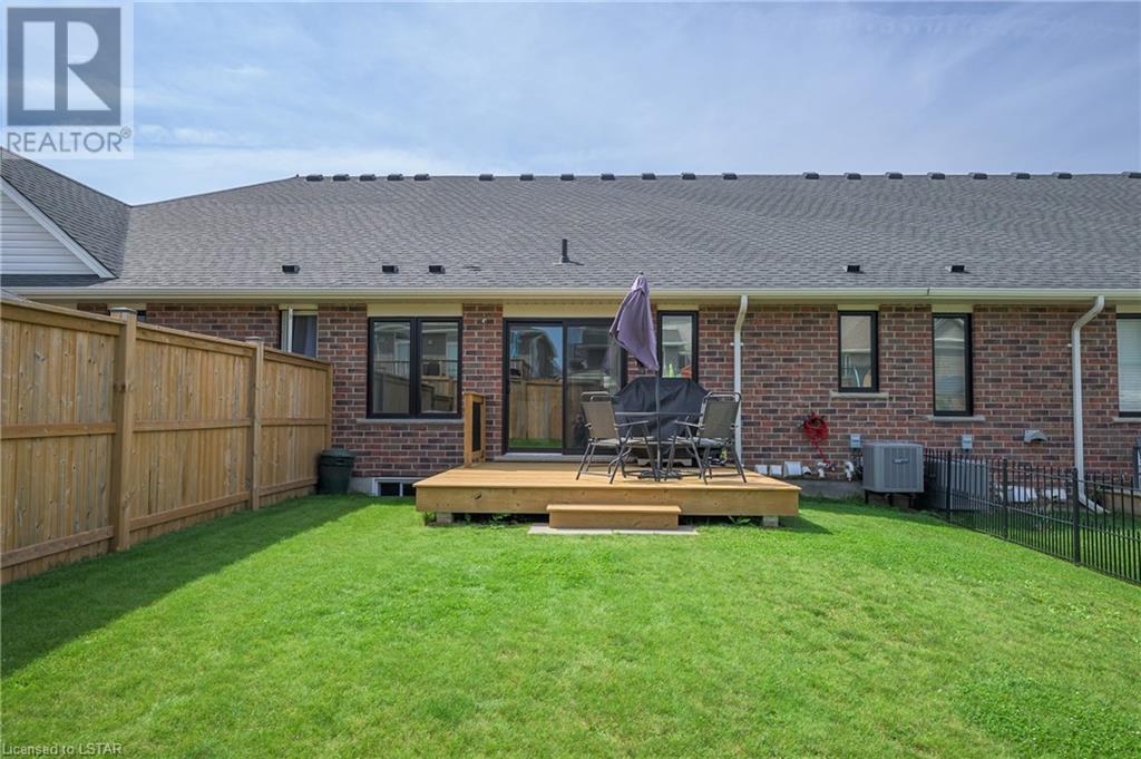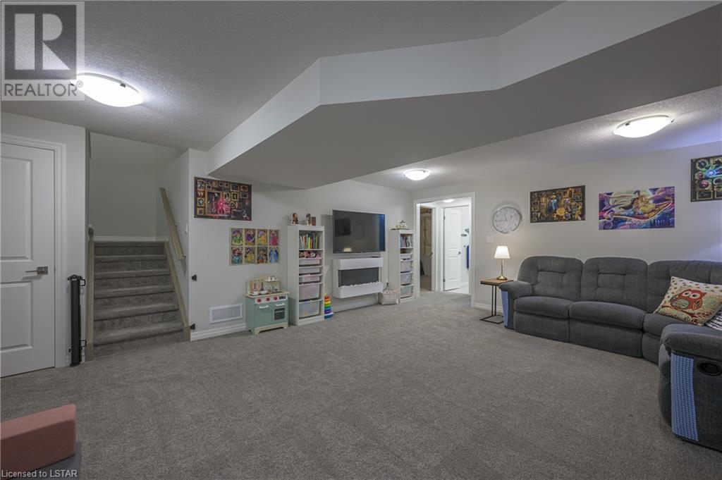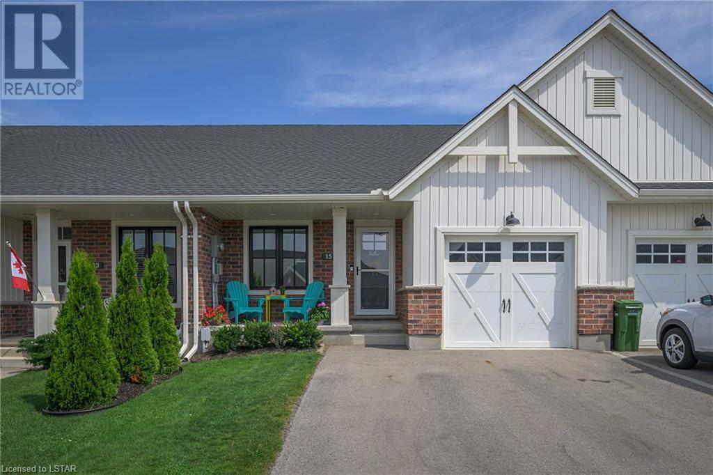 Welcome to 15 Cortland Terrace. This contemporary one storey townhome is built by Hayhoe Homes and located on a quiet street. It is in a desirable location near walking trails and close proximity to Port Stanley and the 401. This gorgeous freehold townhome (no condo fees) features 3 bedrooms (2+1), 3 full bathrooms including a primary en-suite, and has a fully finished lower level. The main level is an open concept plan that includes a spacious eat-in kitchen, great room, 2 bedrooms and 2 full bathrooms. The large primary bedroom has an ensuite and desirable double closets. The great room features pot lights and leads out to a deck that has a BBQ gas line hook-up. There is also inside access to the single car garage and desirable main floor laundry. The lower level is fully finished and features a large family room with electric fireplace, 3rd bedroom, and 4 piece bathroom. Window coverings & Appliances Included - Fridge, Stove, Washer, Dryer, built-in Dishwasher & OTR Microwave. This is a must see! (id:22211)