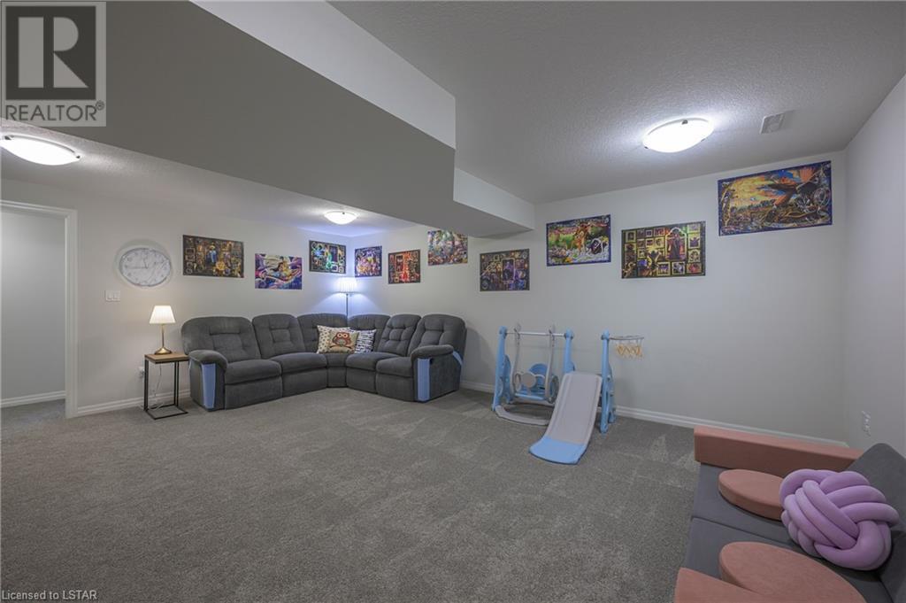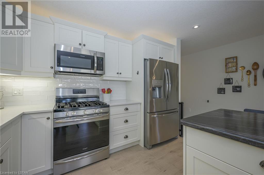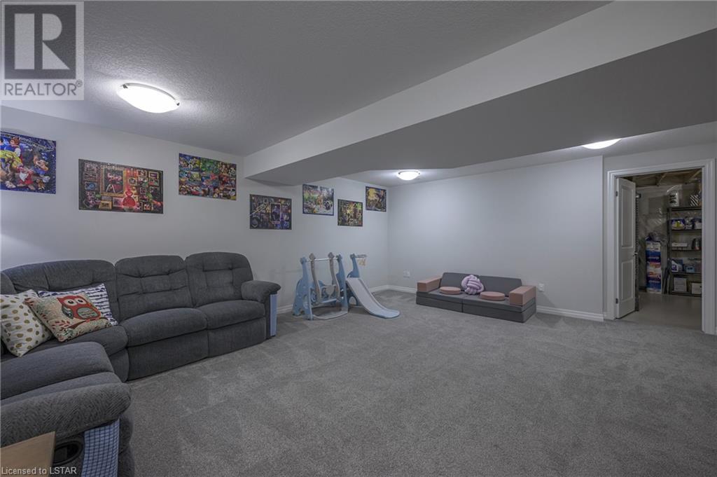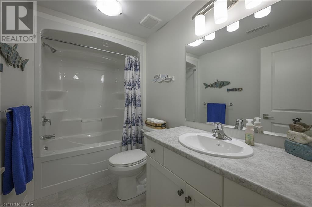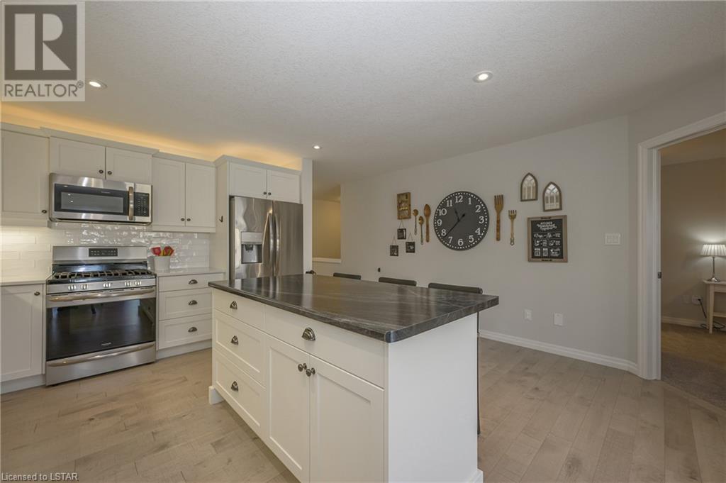 Welcome to 15 Cortland Terrace. This contemporary one storey townhome is built by Hayhoe Homes and located on a quiet street. It is in a desirable location near walking trails and close proximity to Port Stanley and the 401. This gorgeous freehold townhome (no condo fees) features 3 bedrooms (2+1), 3 full bathrooms including a primary en-suite, and has a fully finished lower level. The main level is an open concept plan that includes a spacious eat-in kitchen, great room, 2 bedrooms and 2 full bathrooms. The large primary bedroom has an ensuite and desirable double closets. The great room features pot lights and leads out to a deck that has a BBQ gas line hook-up. There is also inside access to the single car garage and desirable main floor laundry. The lower level is fully finished and features a large family room with electric fireplace, 3rd bedroom, and 4 piece bathroom. Window coverings & Appliances Included - Fridge, Stove, Washer, Dryer, built-in Dishwasher & OTR Microwave. This is a must see! (id:22211)